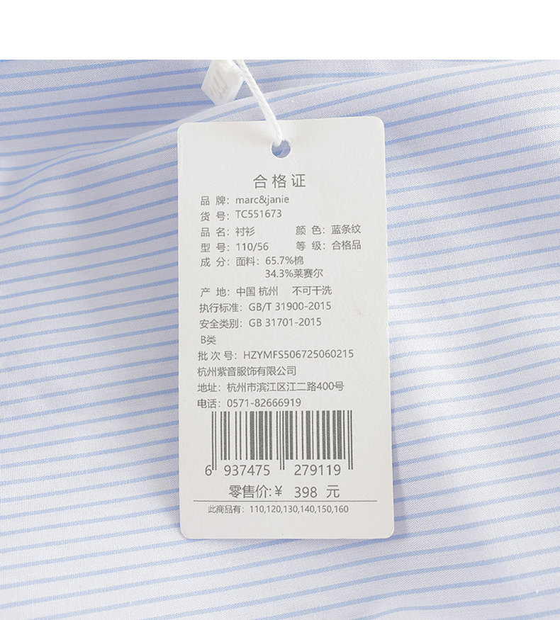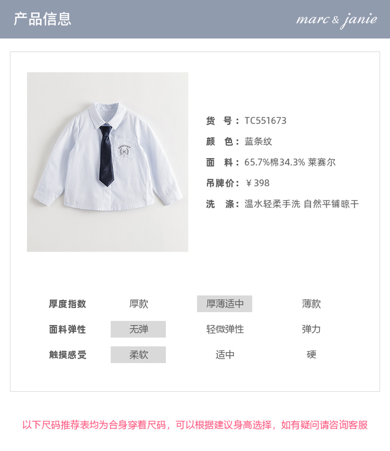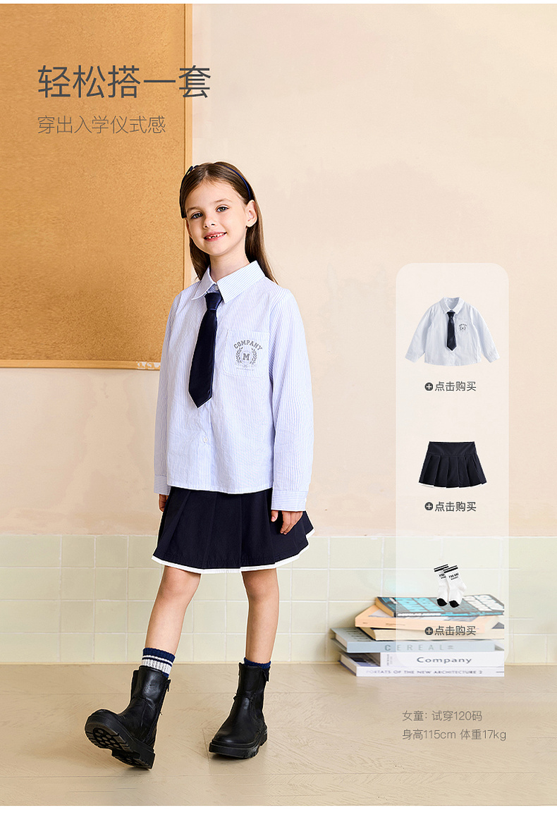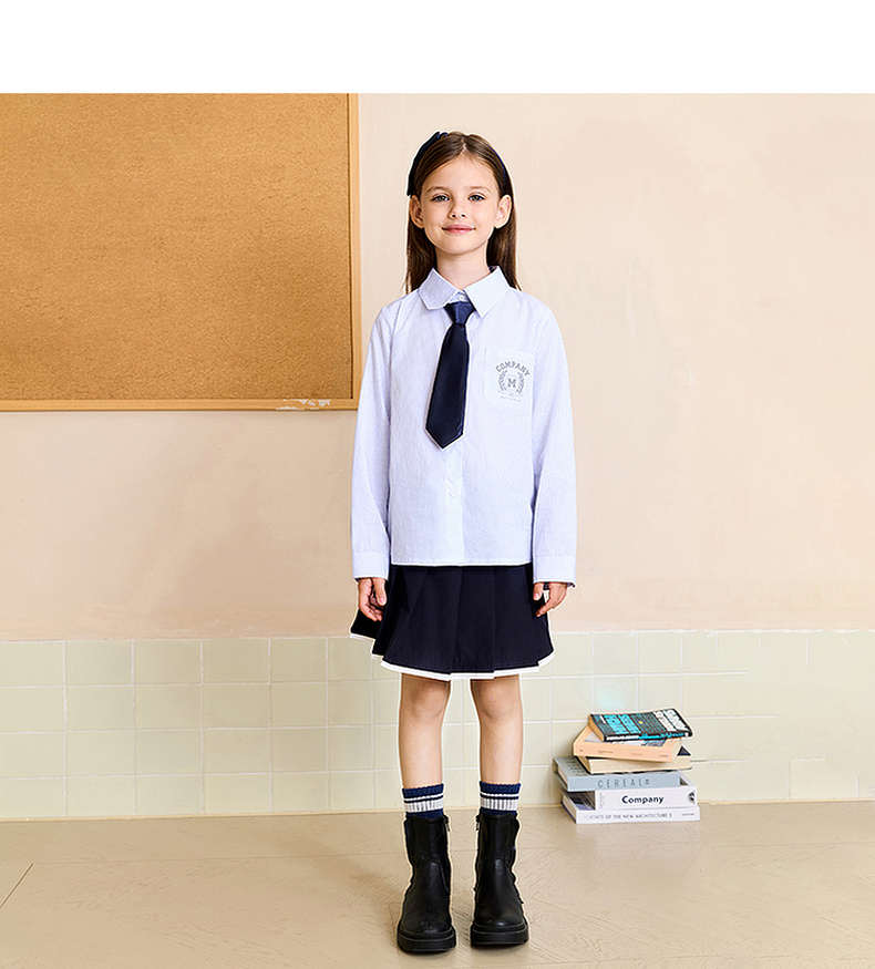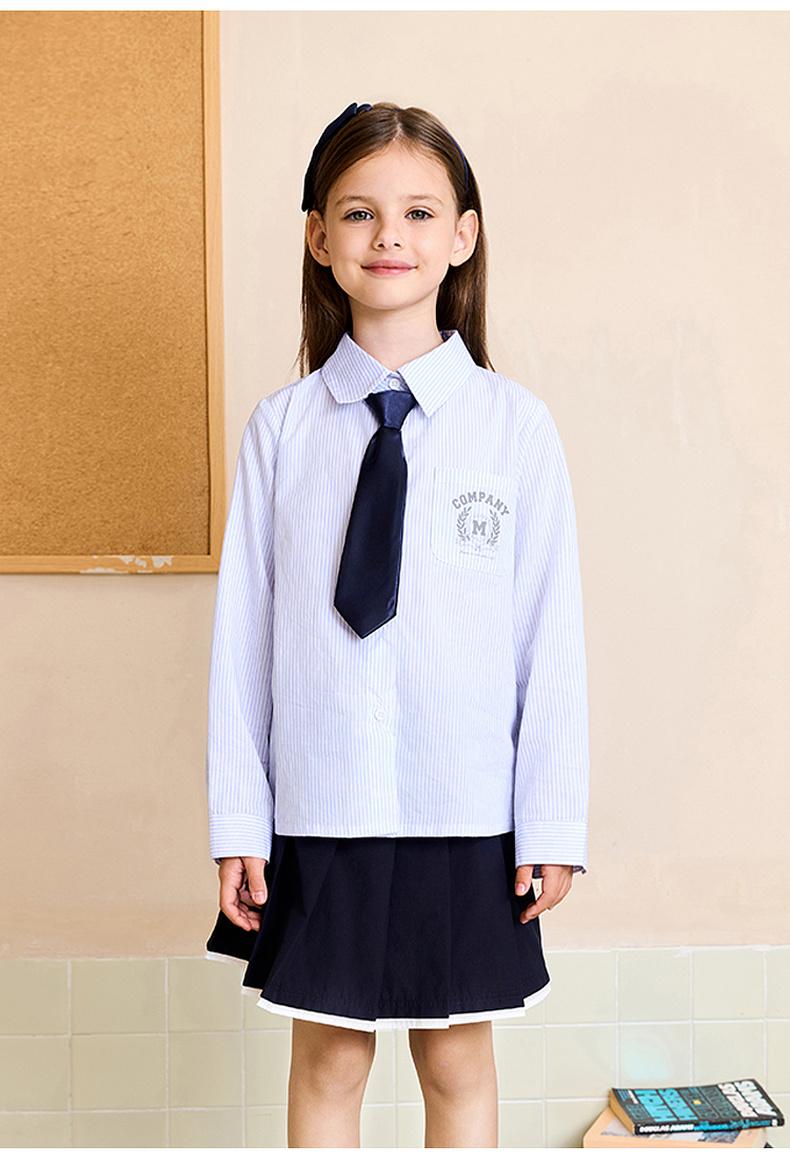 马克珍妮女童青春校园条纹衬衫2025年秋装新款551673