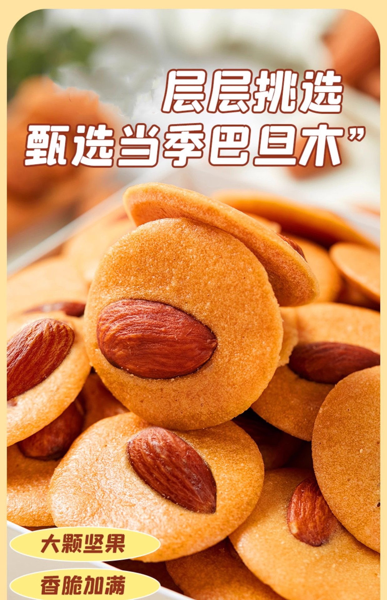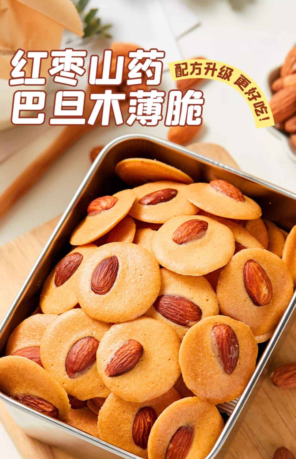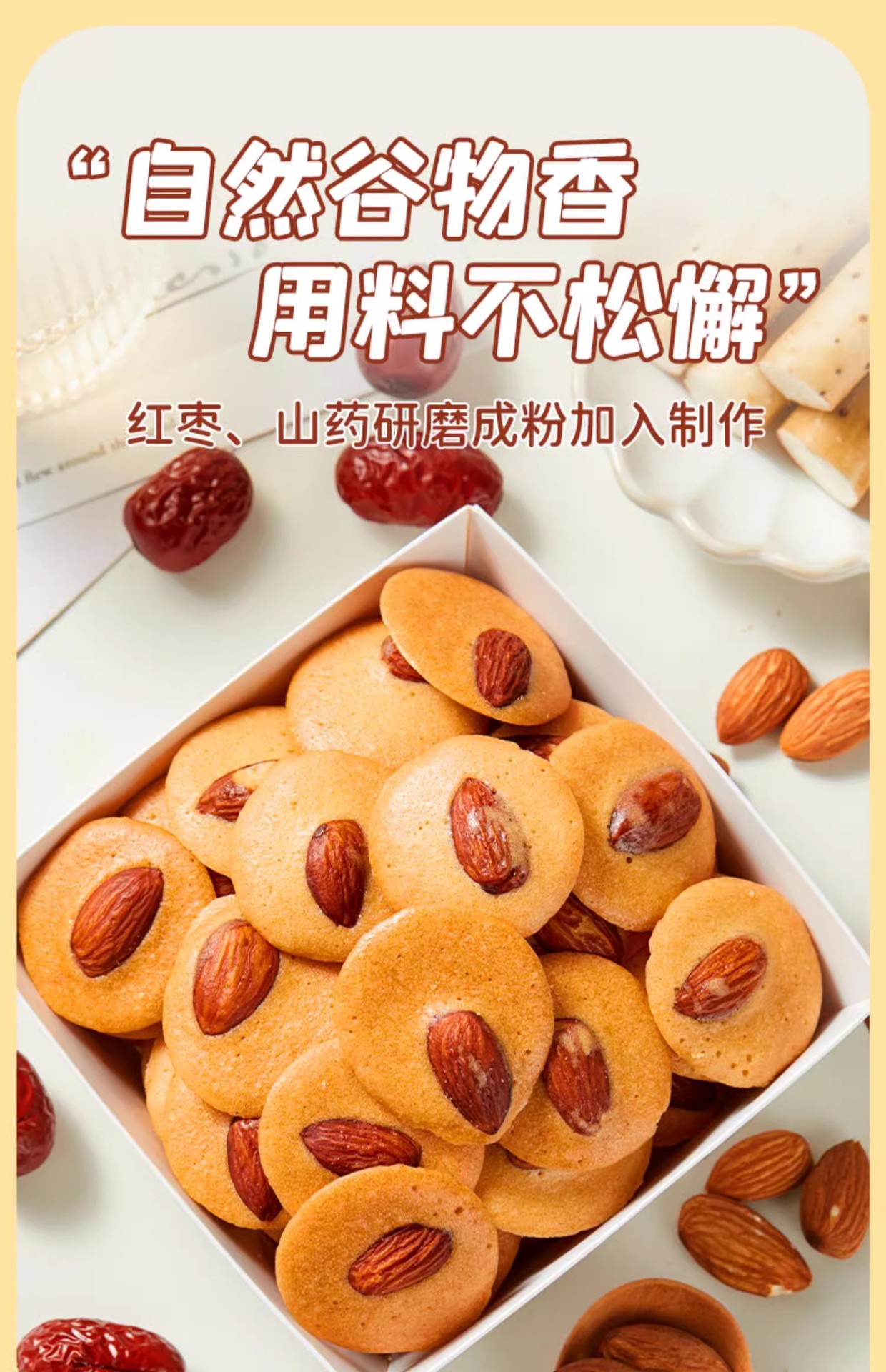 【80包超值!巴旦木红枣山药薄脆】酥脆香甜好吃不腻!山母同款坚果网红曲奇饼干独立包装解馋小零食Y