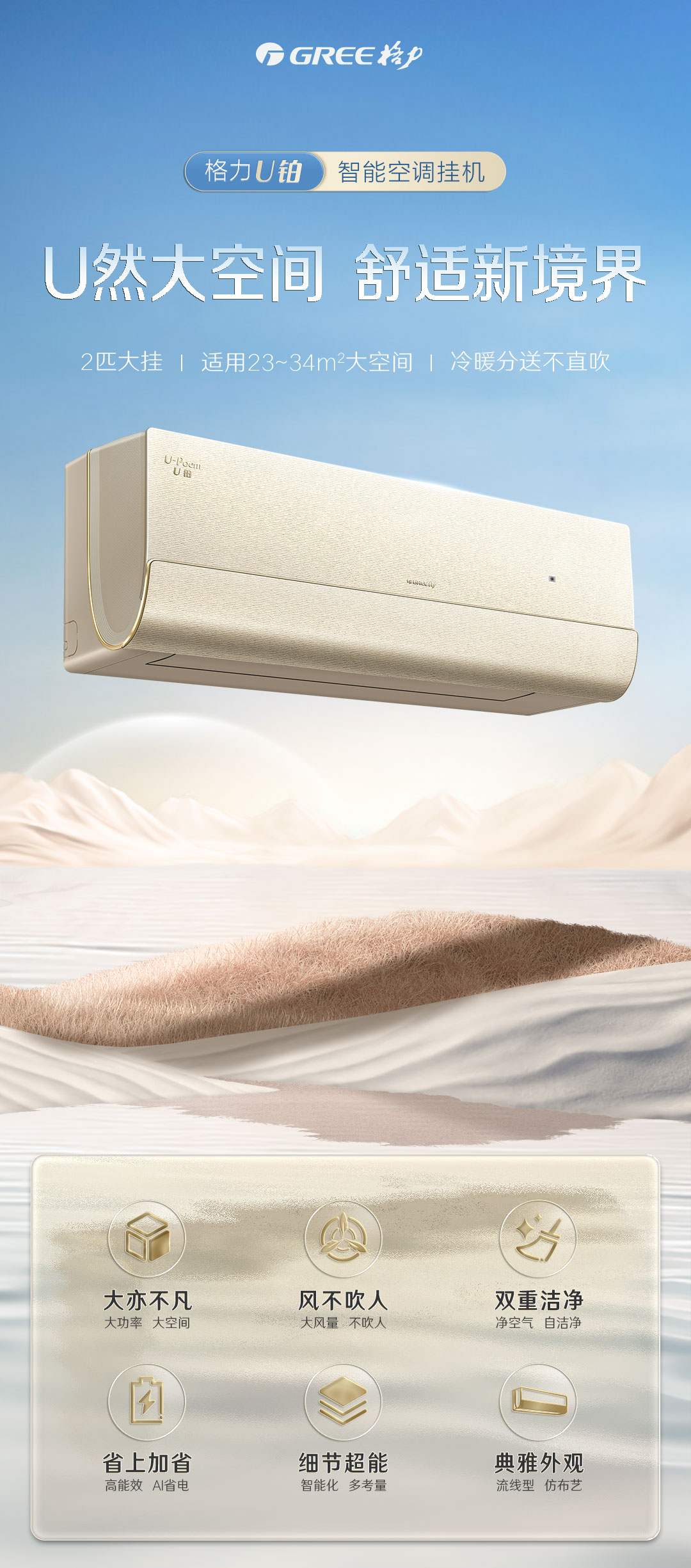 格力·U铂变频冷暖2匹1级能效挂机空调 KFR-50GW/(50526)FNhCa-B1(WIFI)(珊瑚玉)