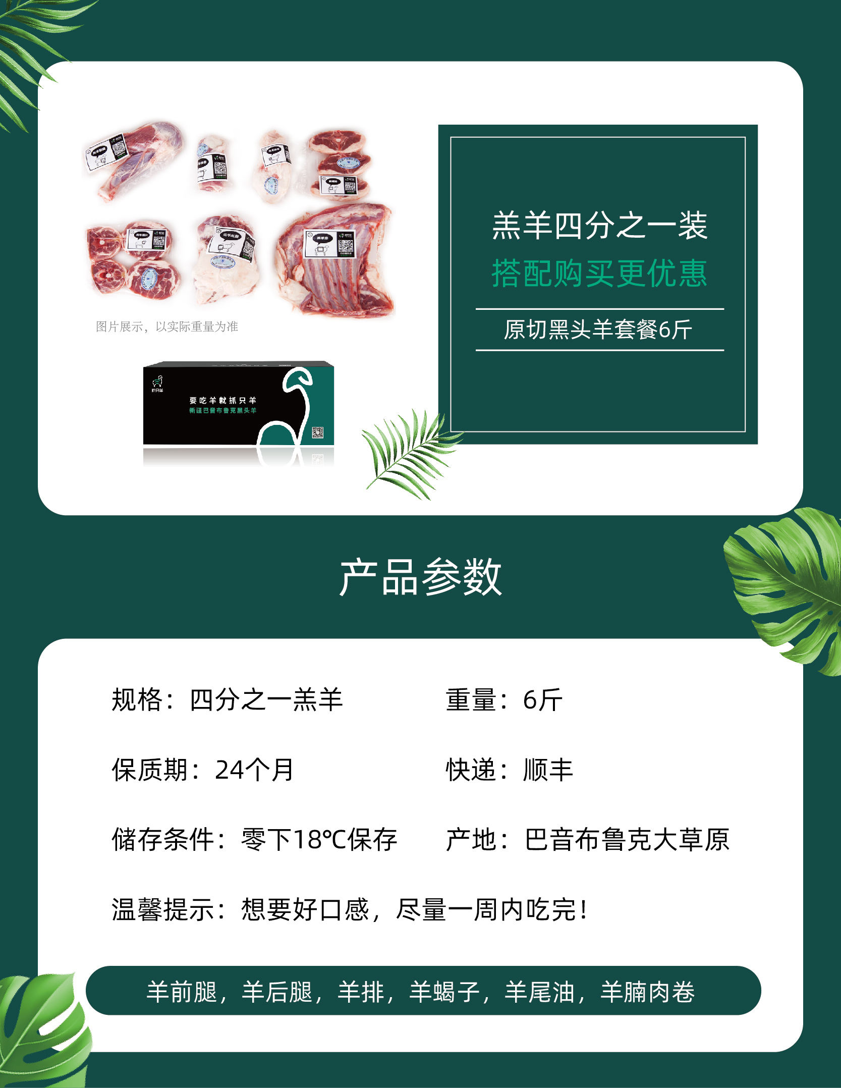 【送礼佳品-精装礼盒】【巴音布鲁克黑头羊四分之一装羔羊6斤】【顺丰空运/冷链 三日到家】