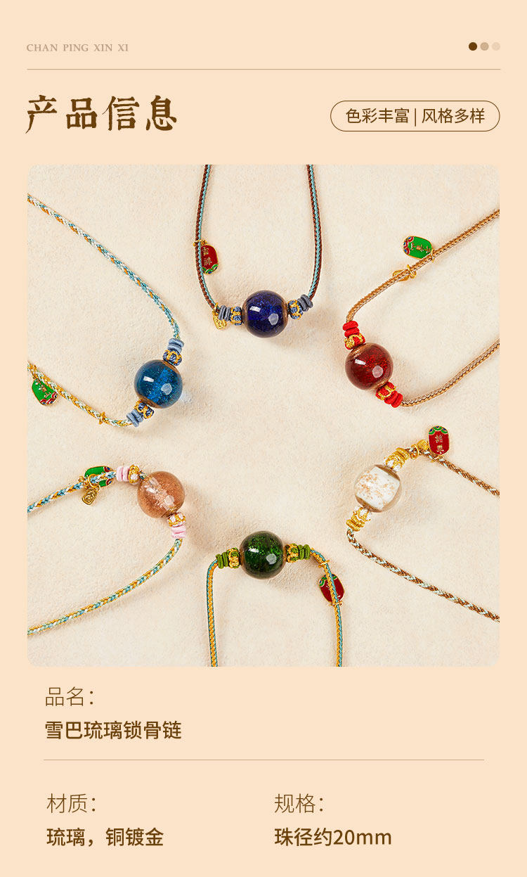 牛首山文创雪巴琉璃锁骨链中国风项链南京纪念品旅游送朋友礼物
