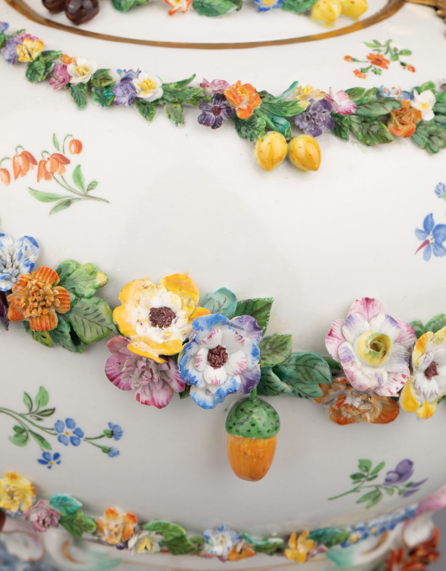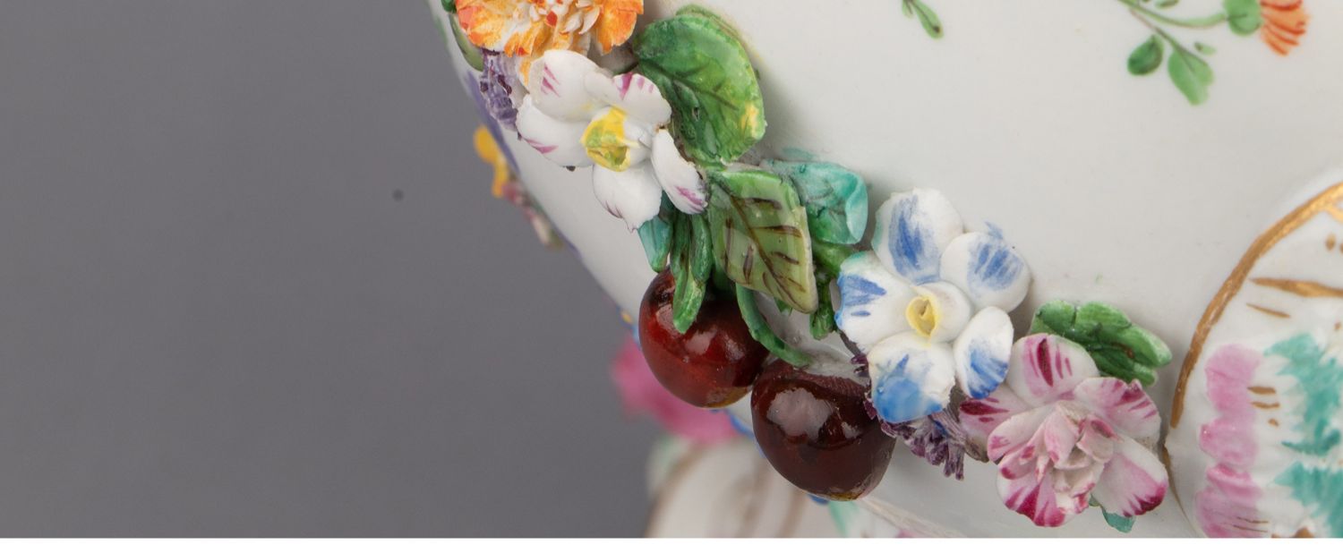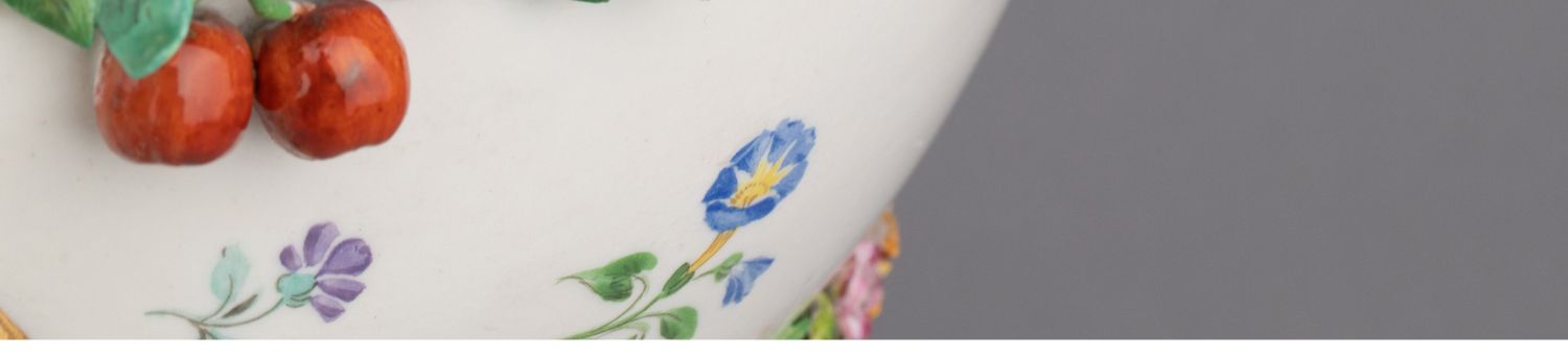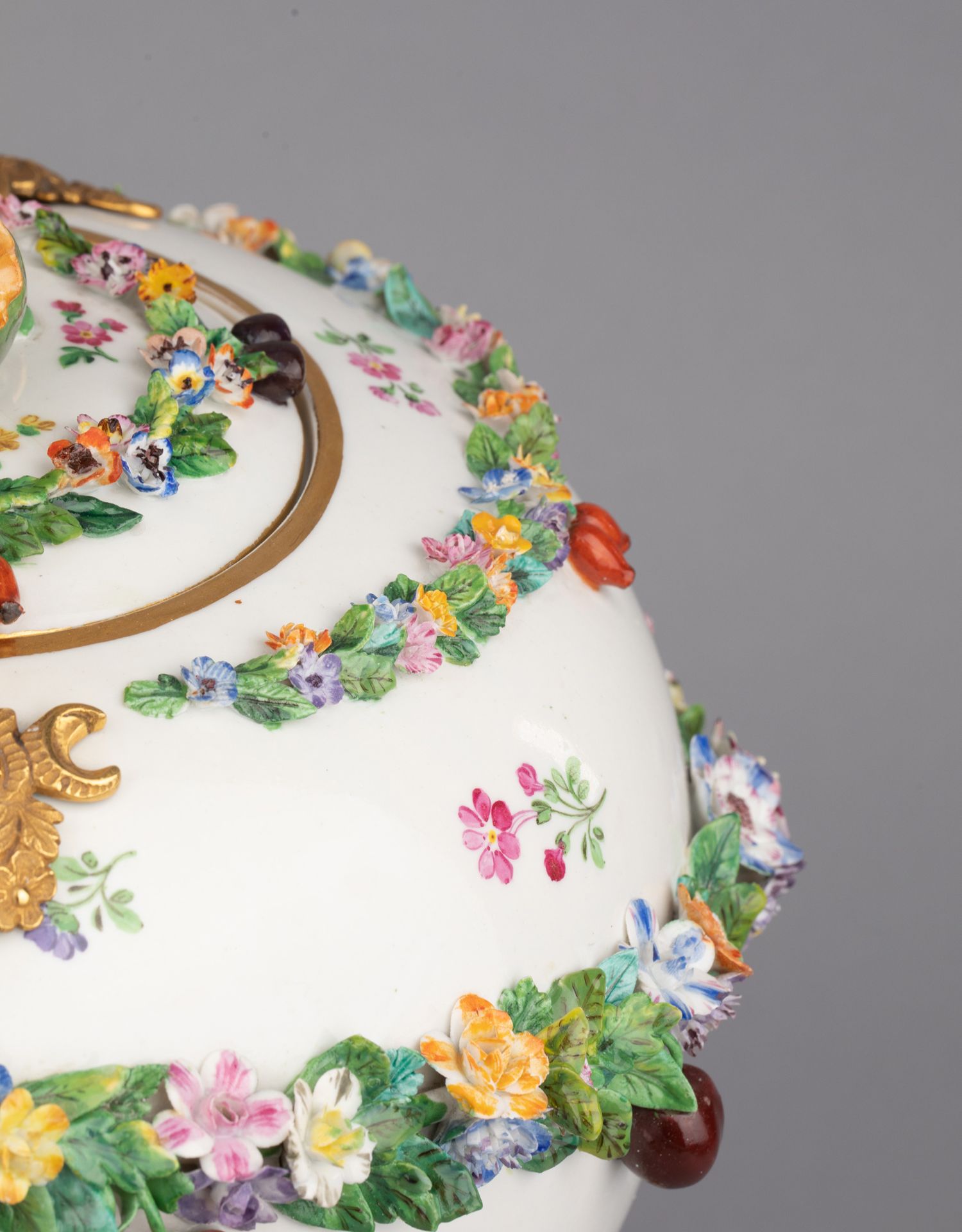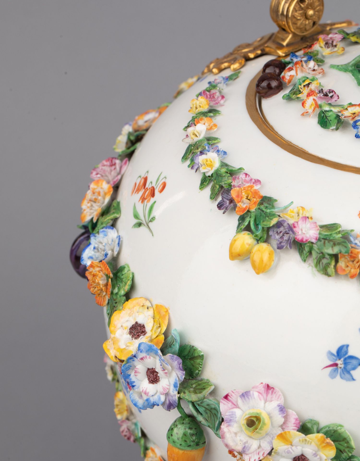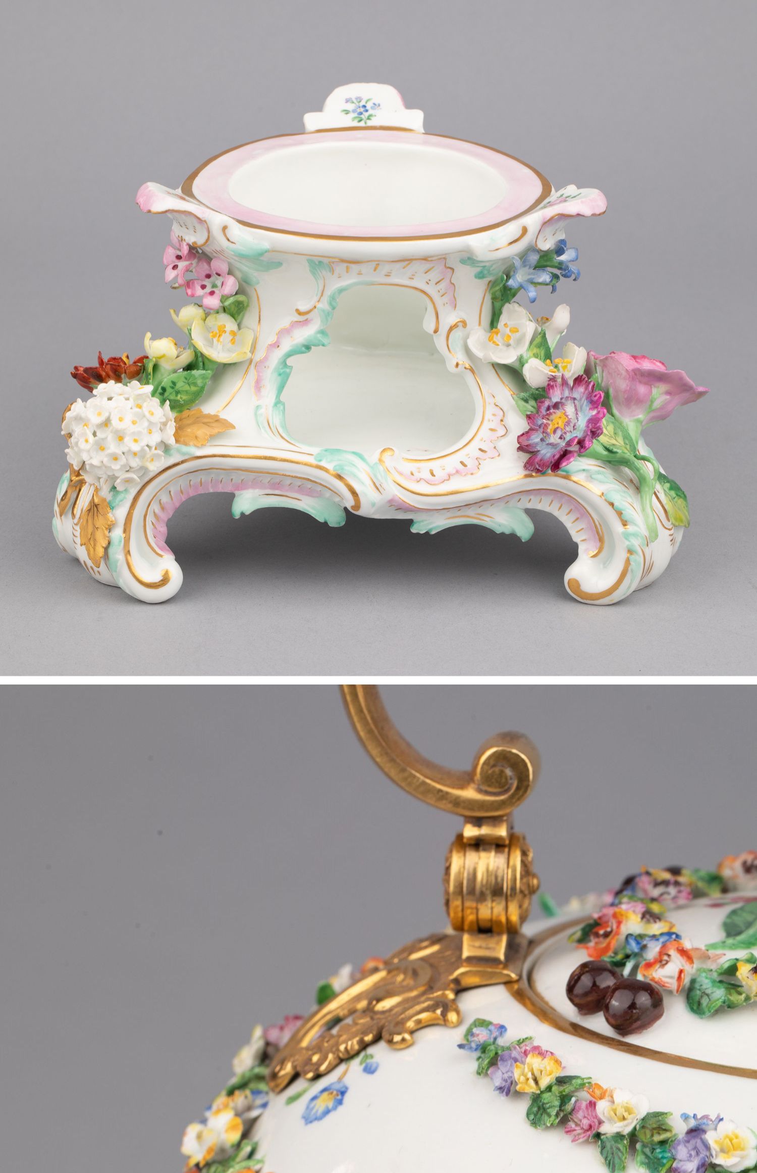 独角鹿西洋古董德国梅森瓷器铜鎏金花果瓷面浮雕彩绘描金温水壶