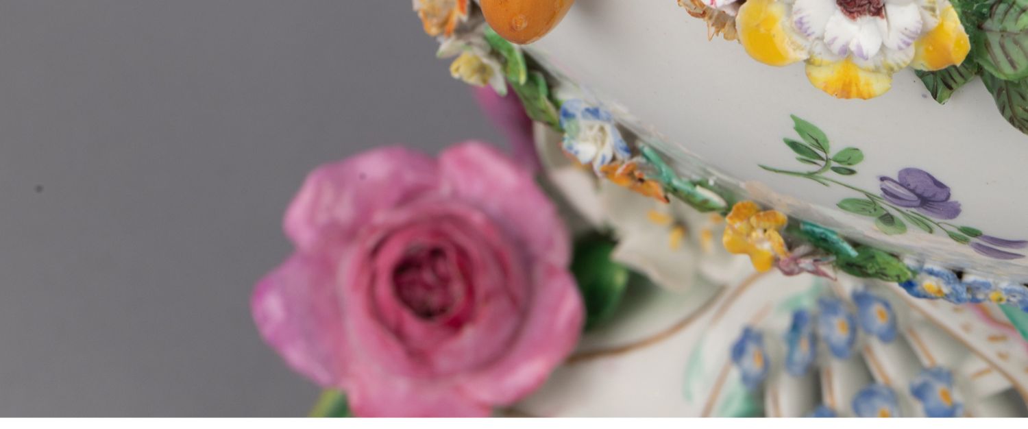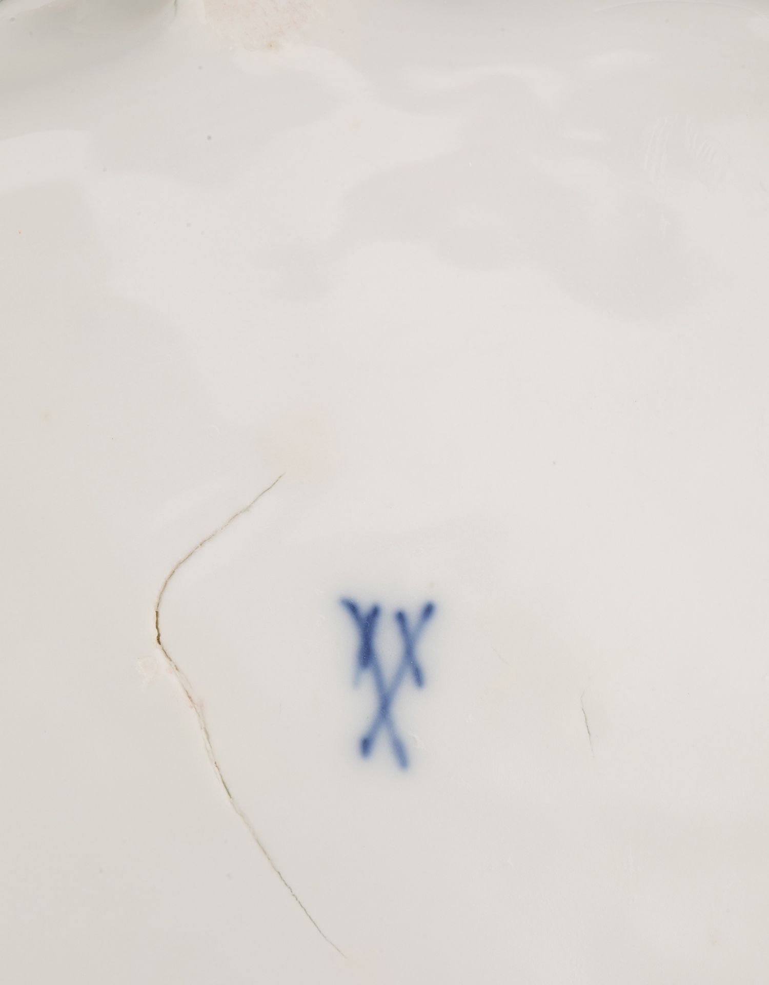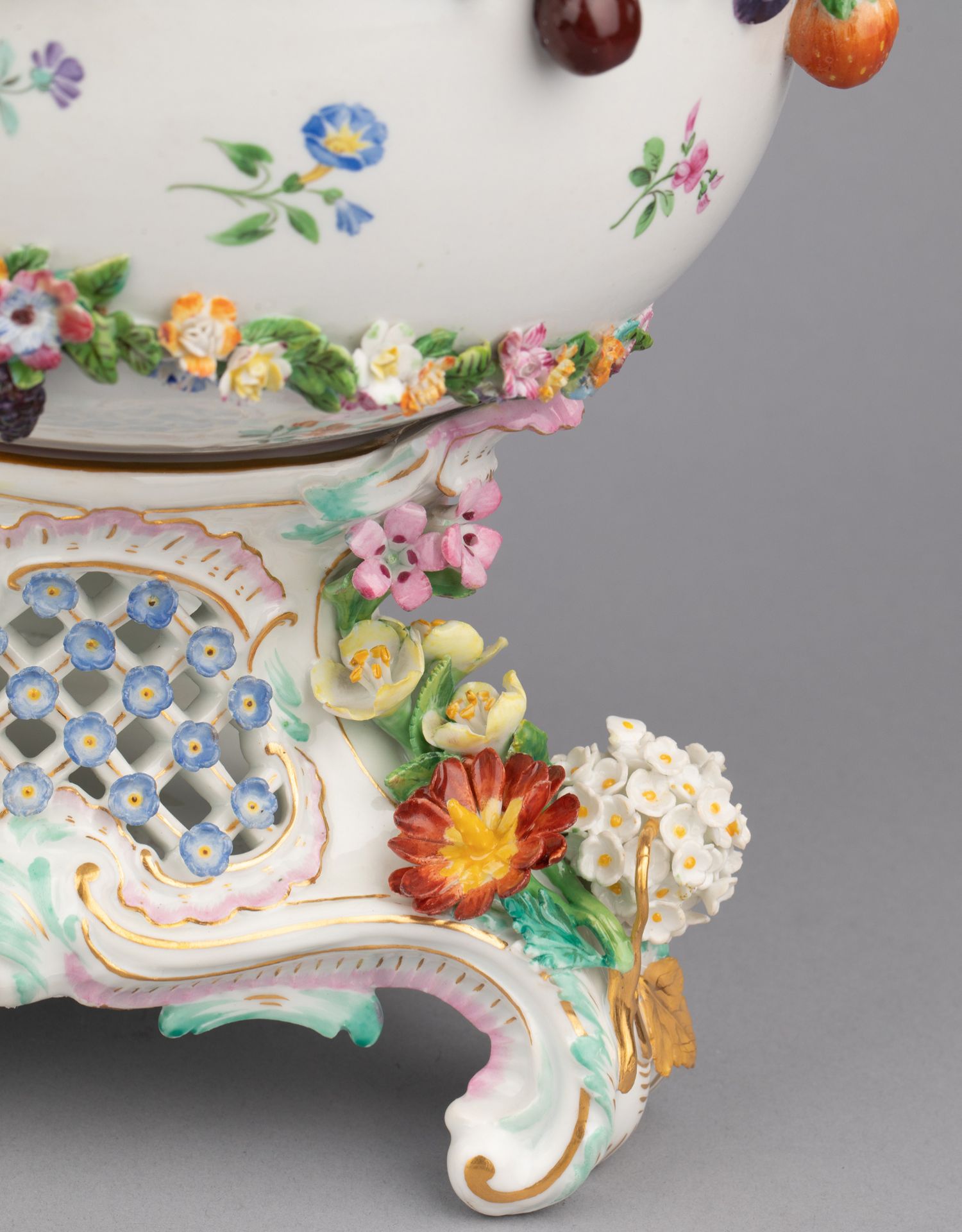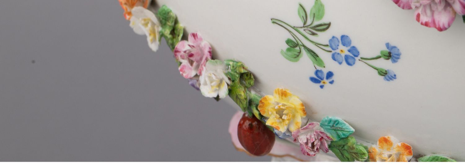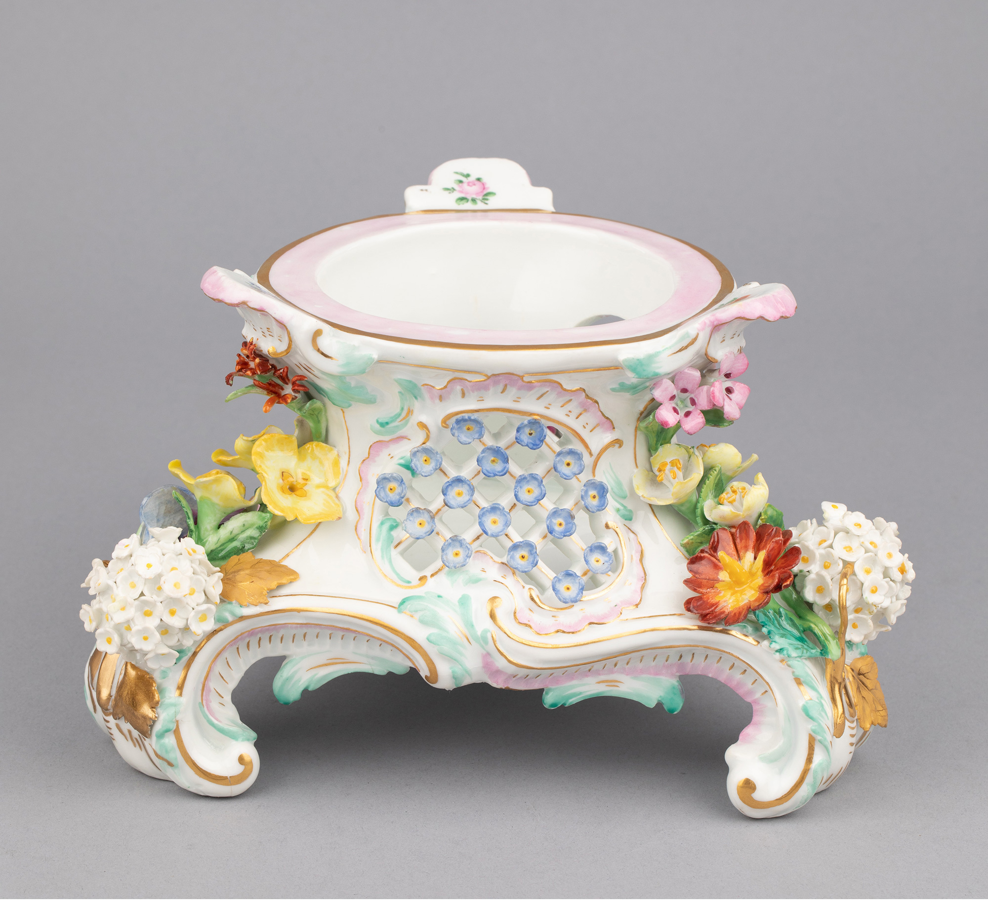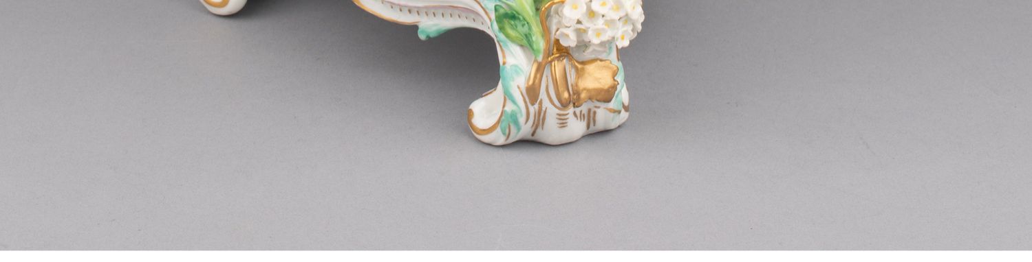 独角鹿西洋古董德国梅森瓷器铜鎏金花果瓷面浮雕彩绘描金温水壶