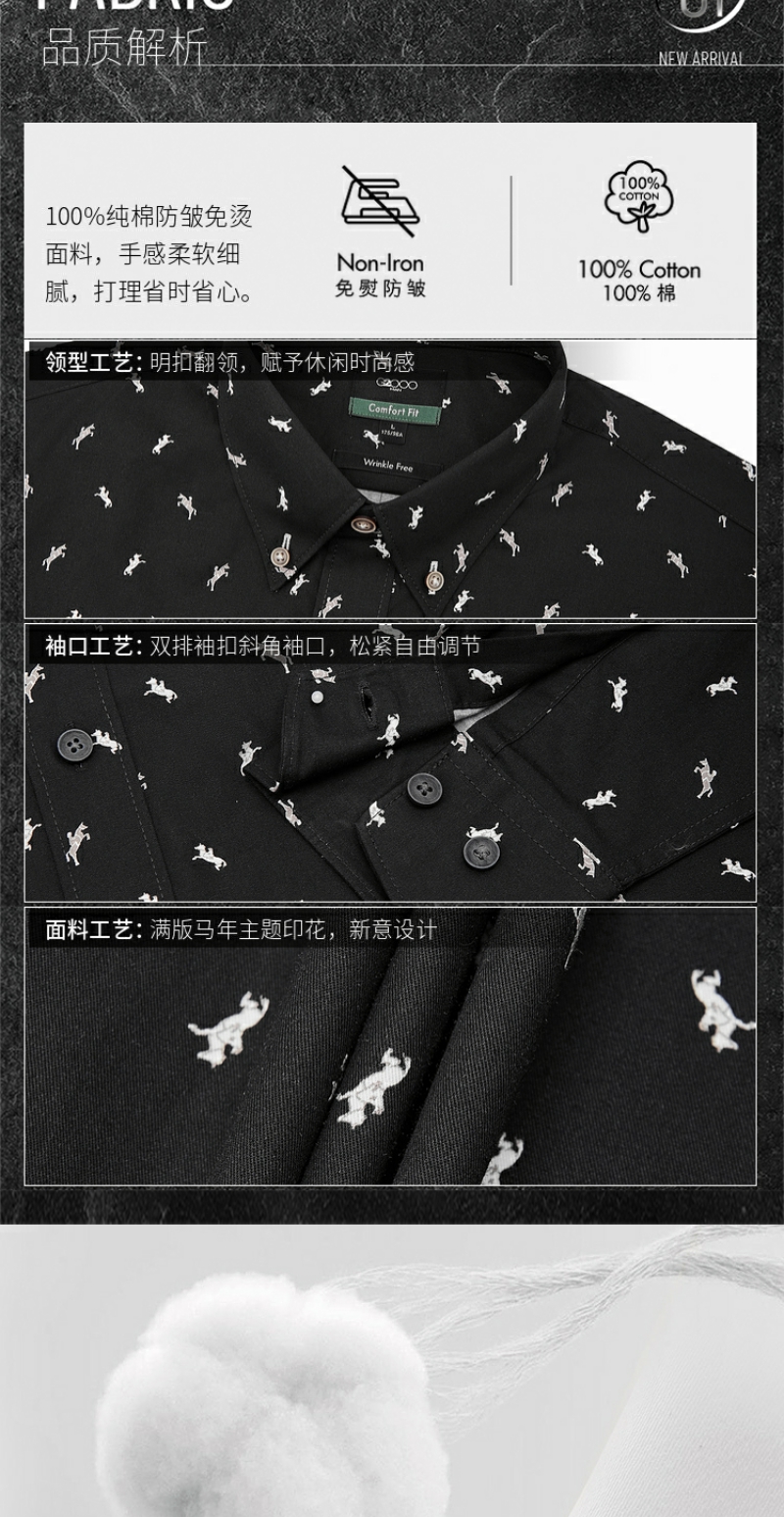 G2000男装FW25【纯棉/抗皱免烫】马年印花长袖休闲衬衫56120858