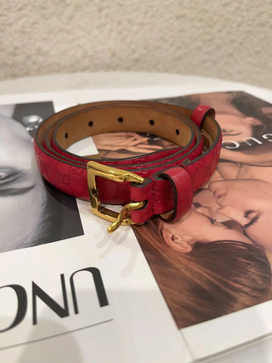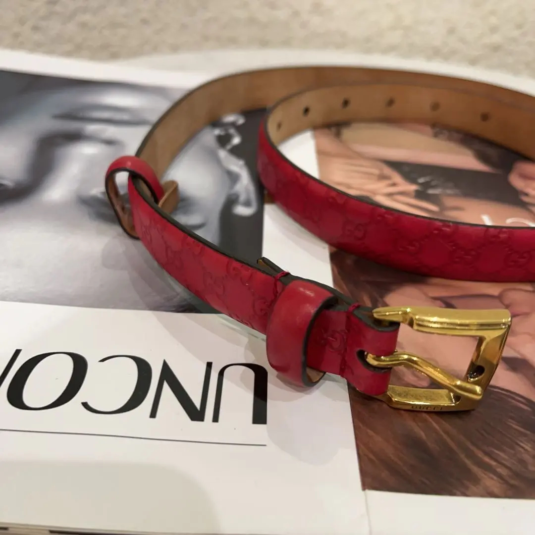 正品二手 GUCCI 牛皮 压纹 红色 皮带👝93新 96cm。内皮正常使用脏。红红火火过新年