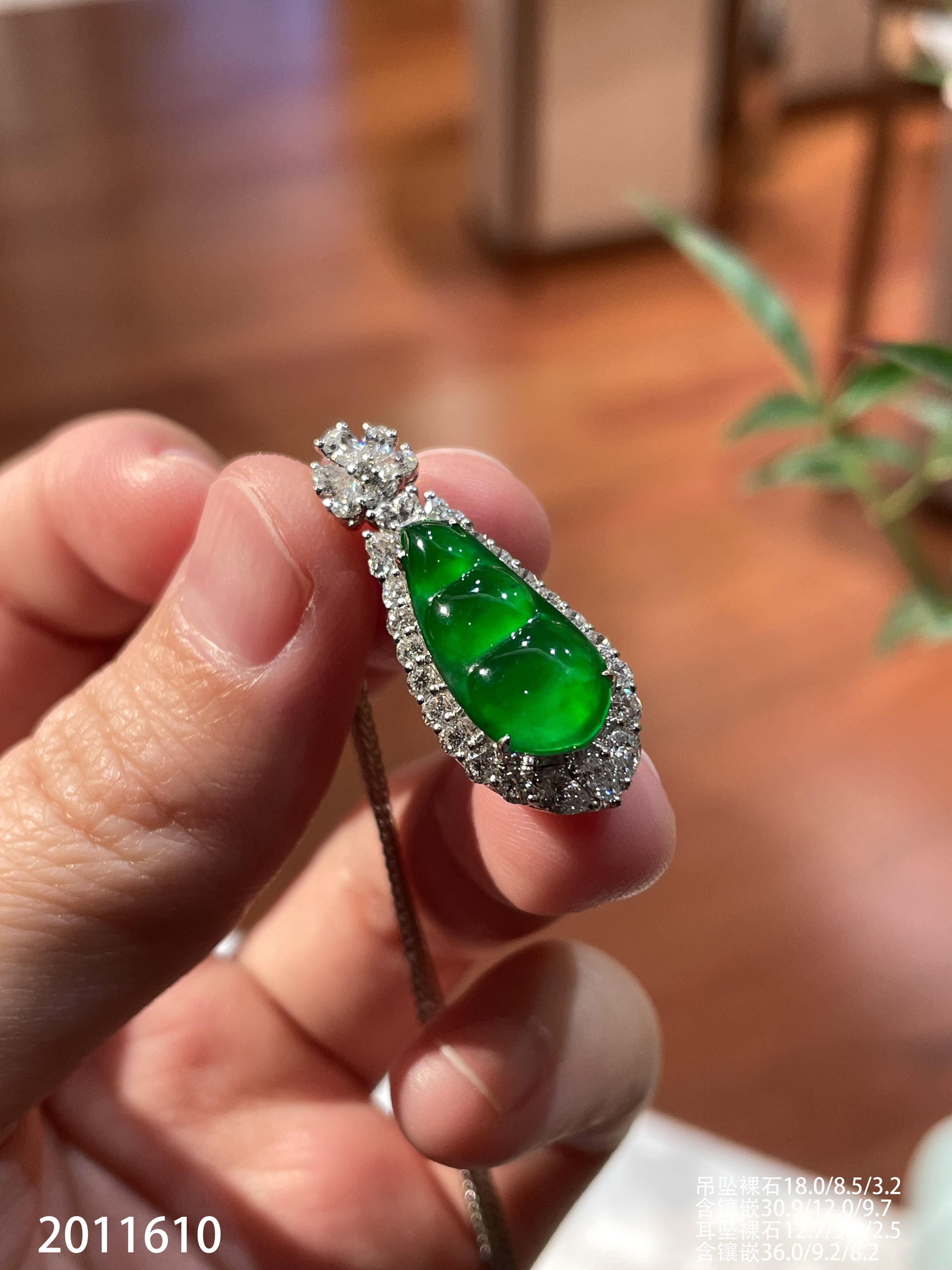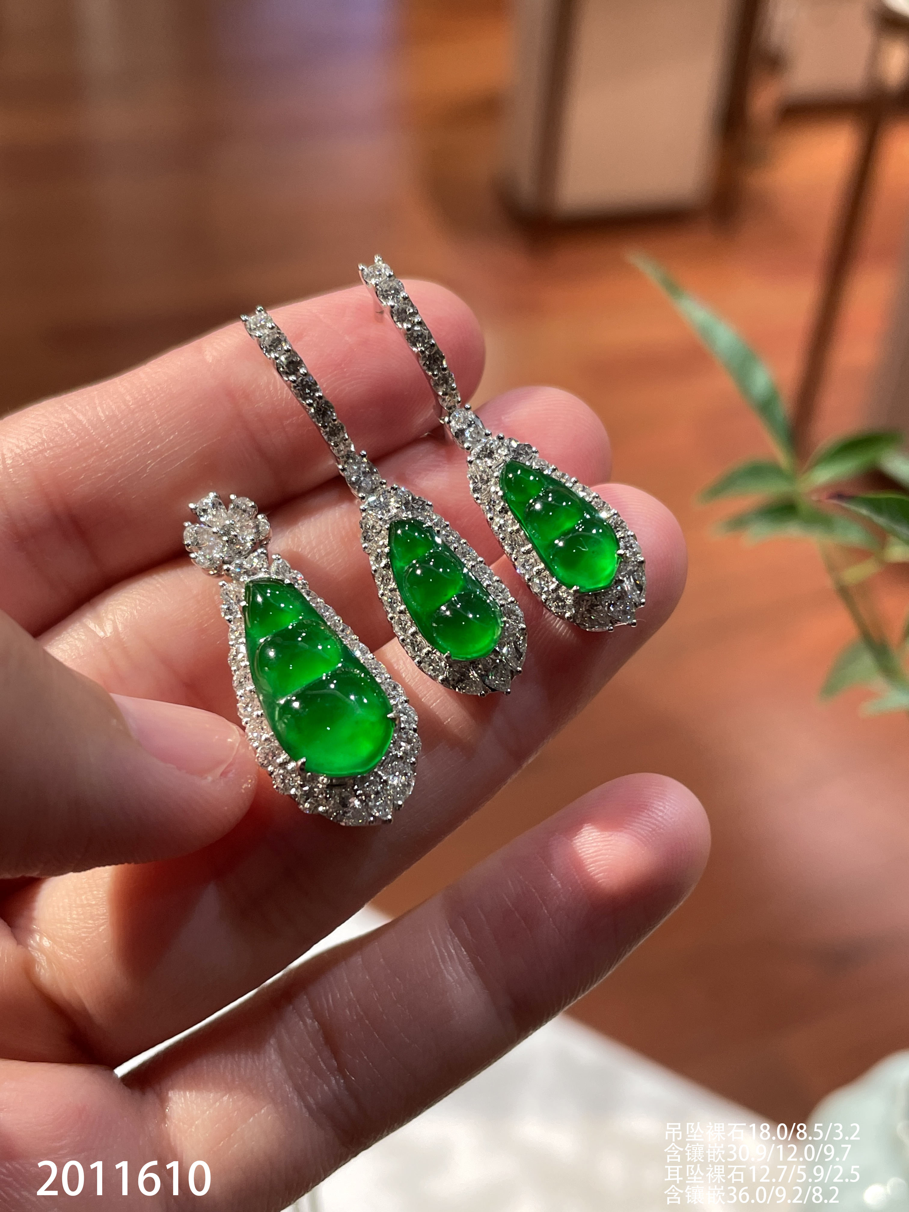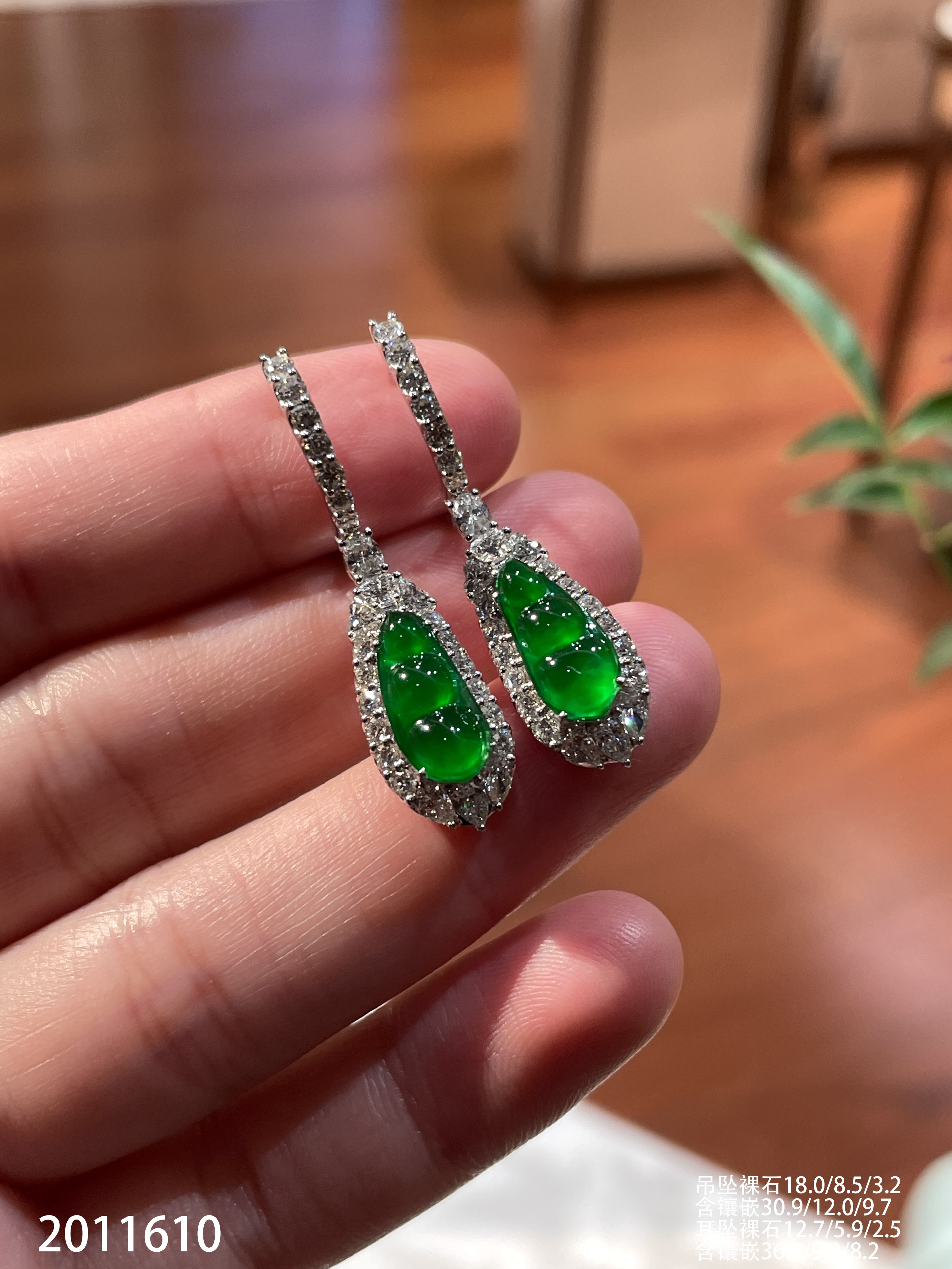 39-1212111,玻璃木那阳艳绿福豆耳钉,8999