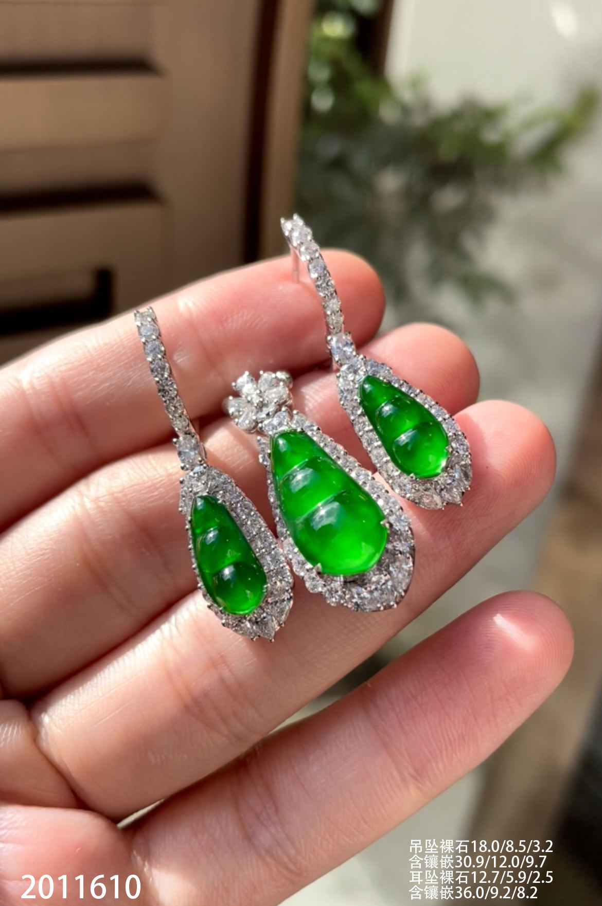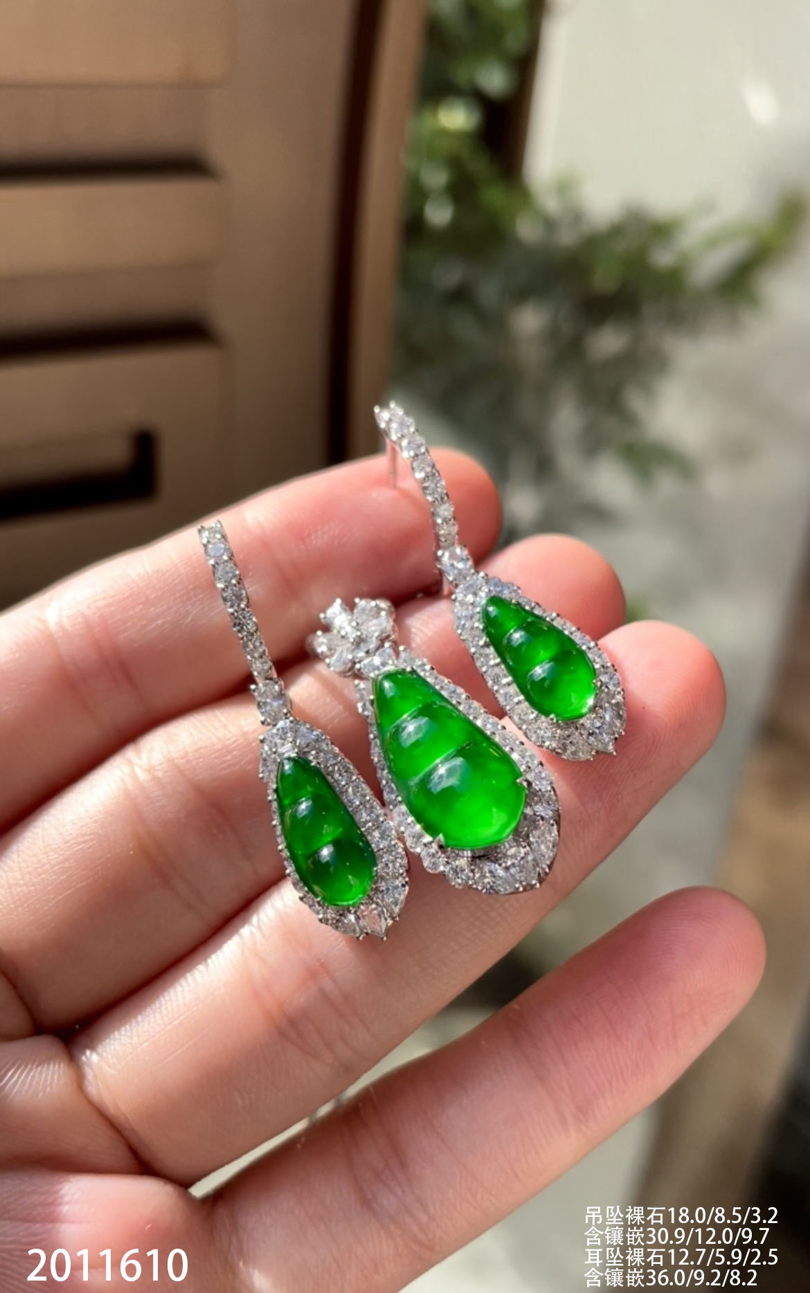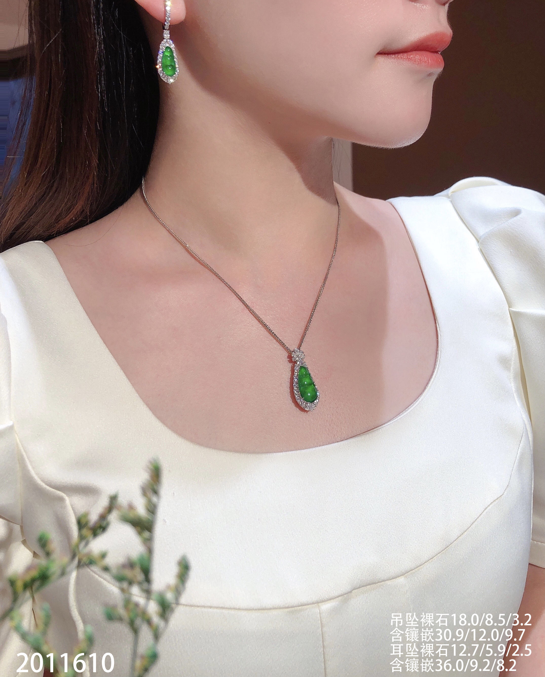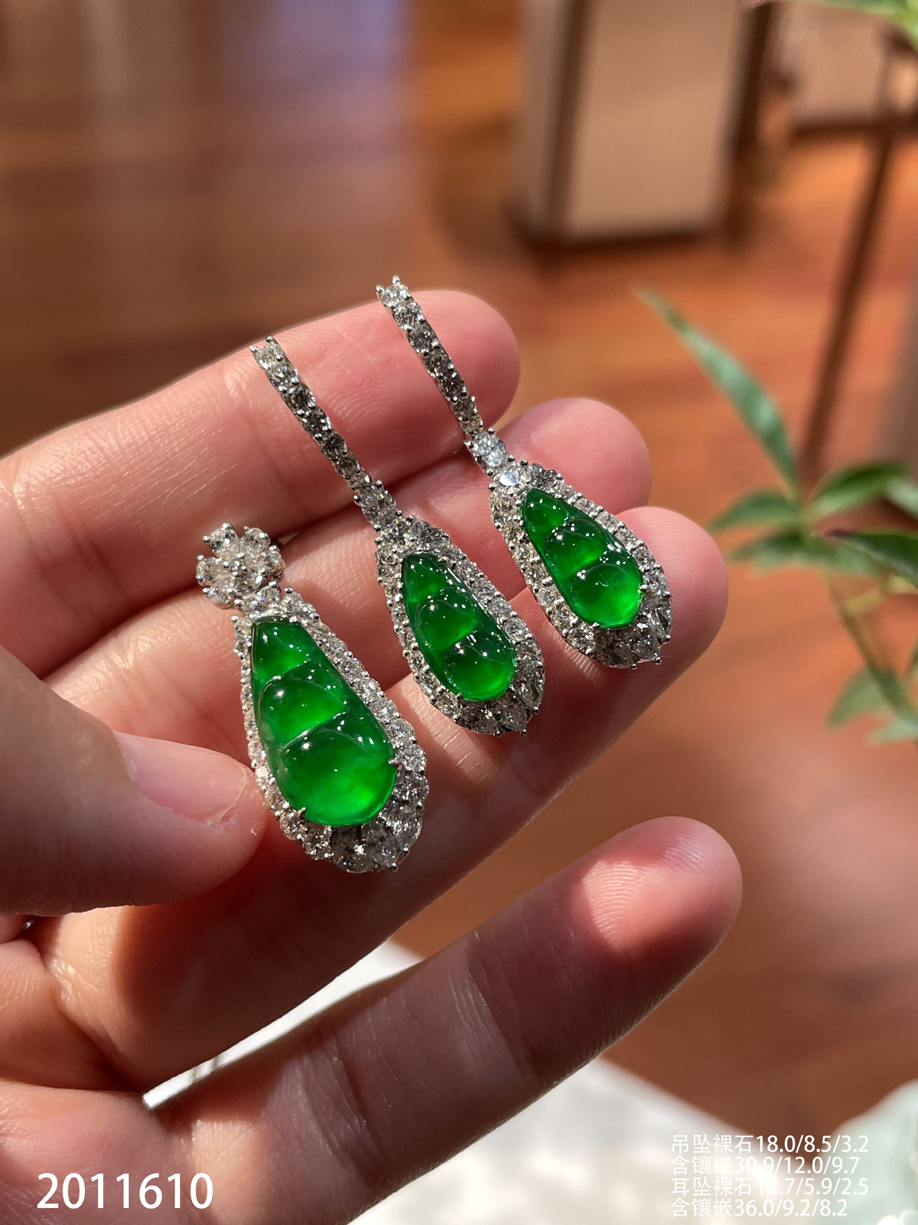 39-1212111,玻璃木那阳艳绿福豆耳钉,8999