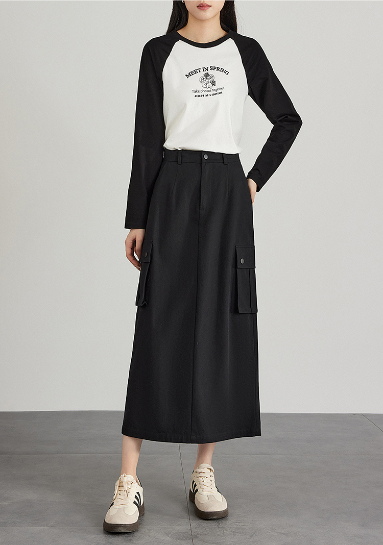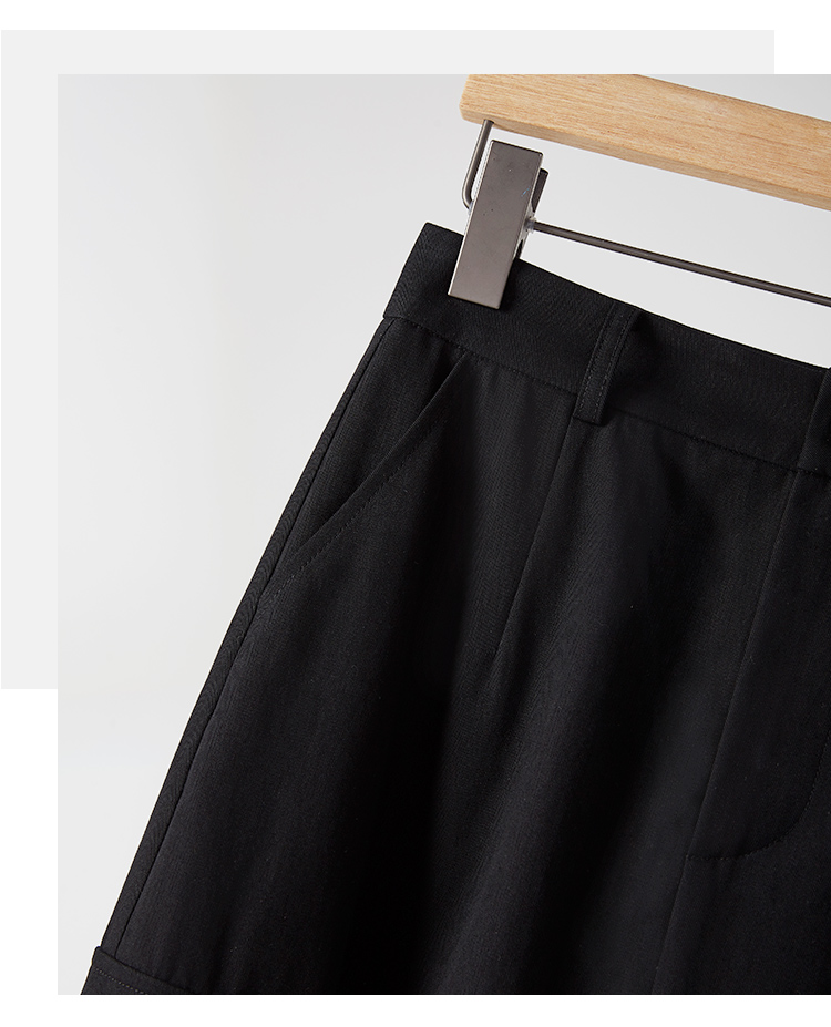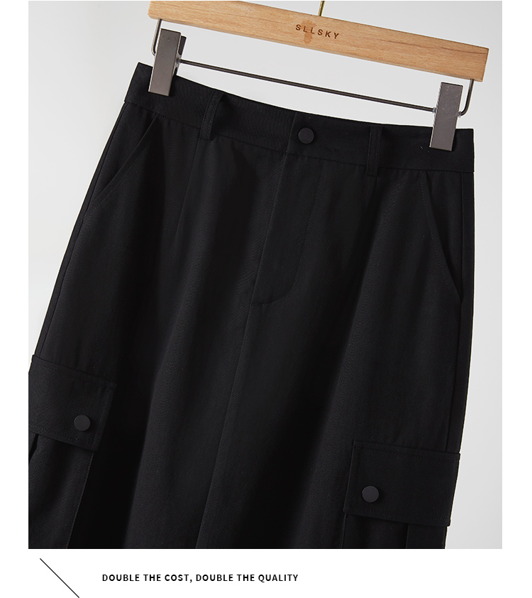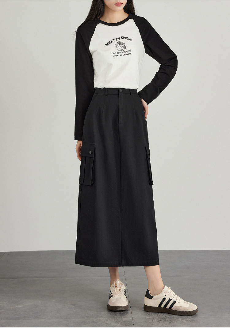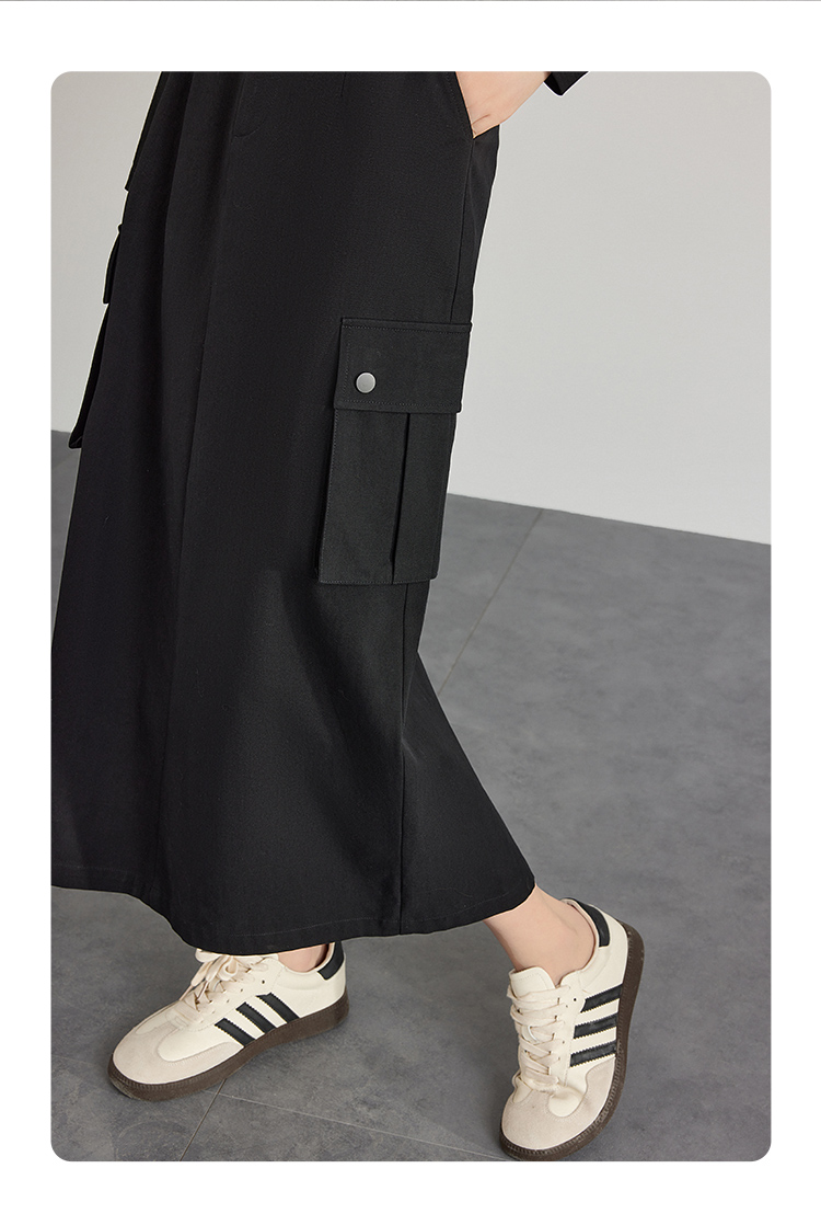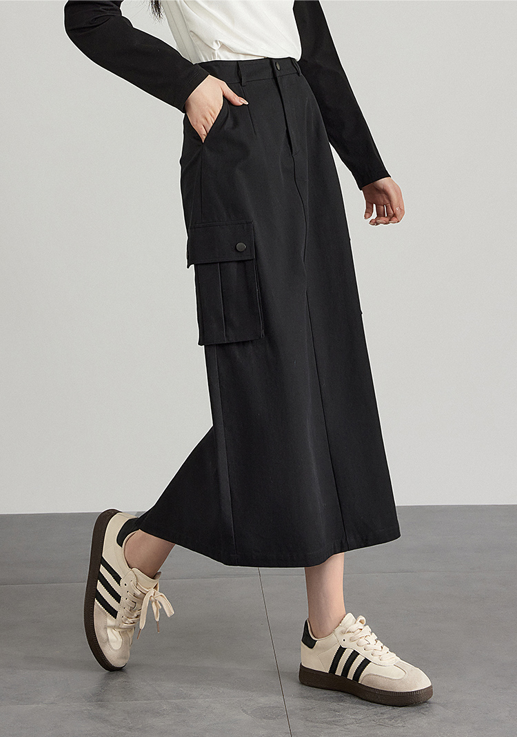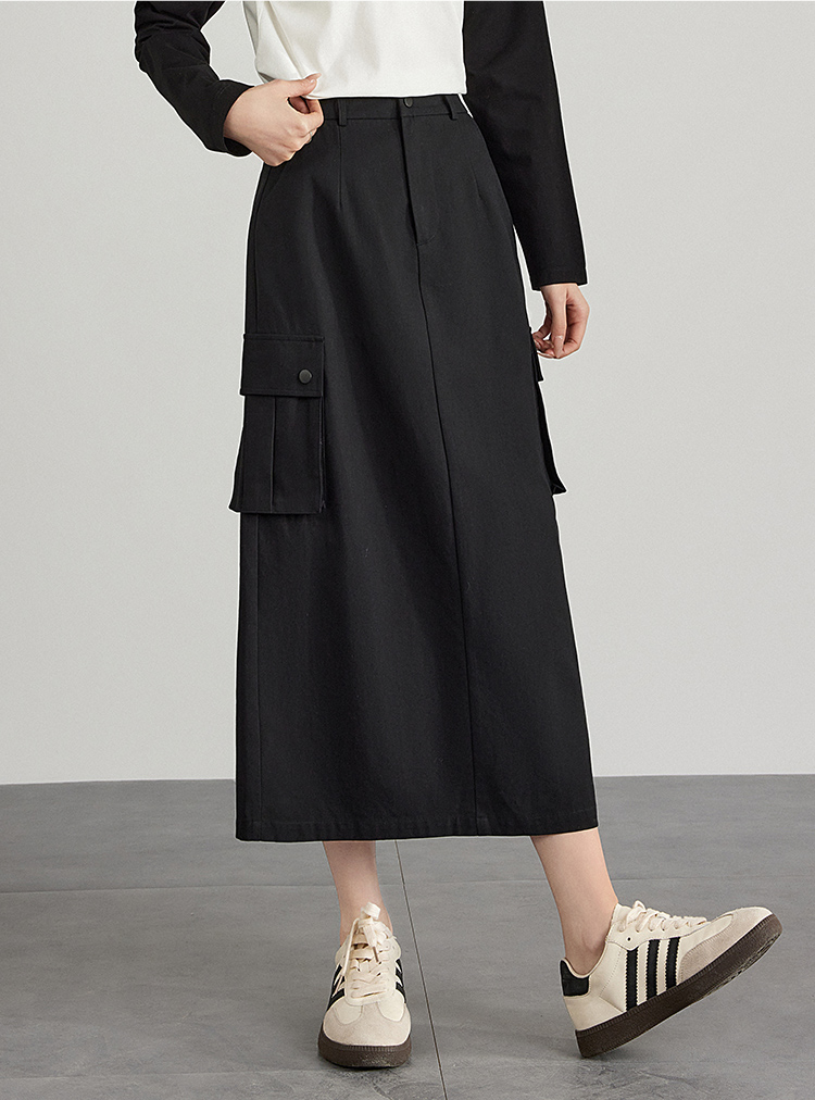 【专属特价】熙世界工装风半身裙2025早秋新款高腰黑色赫本风开叉直筒中长裙