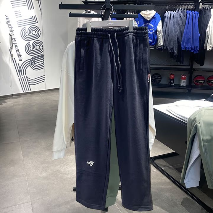 李宁男子冬季加绒保暖直筒卫裤AKLU521-4