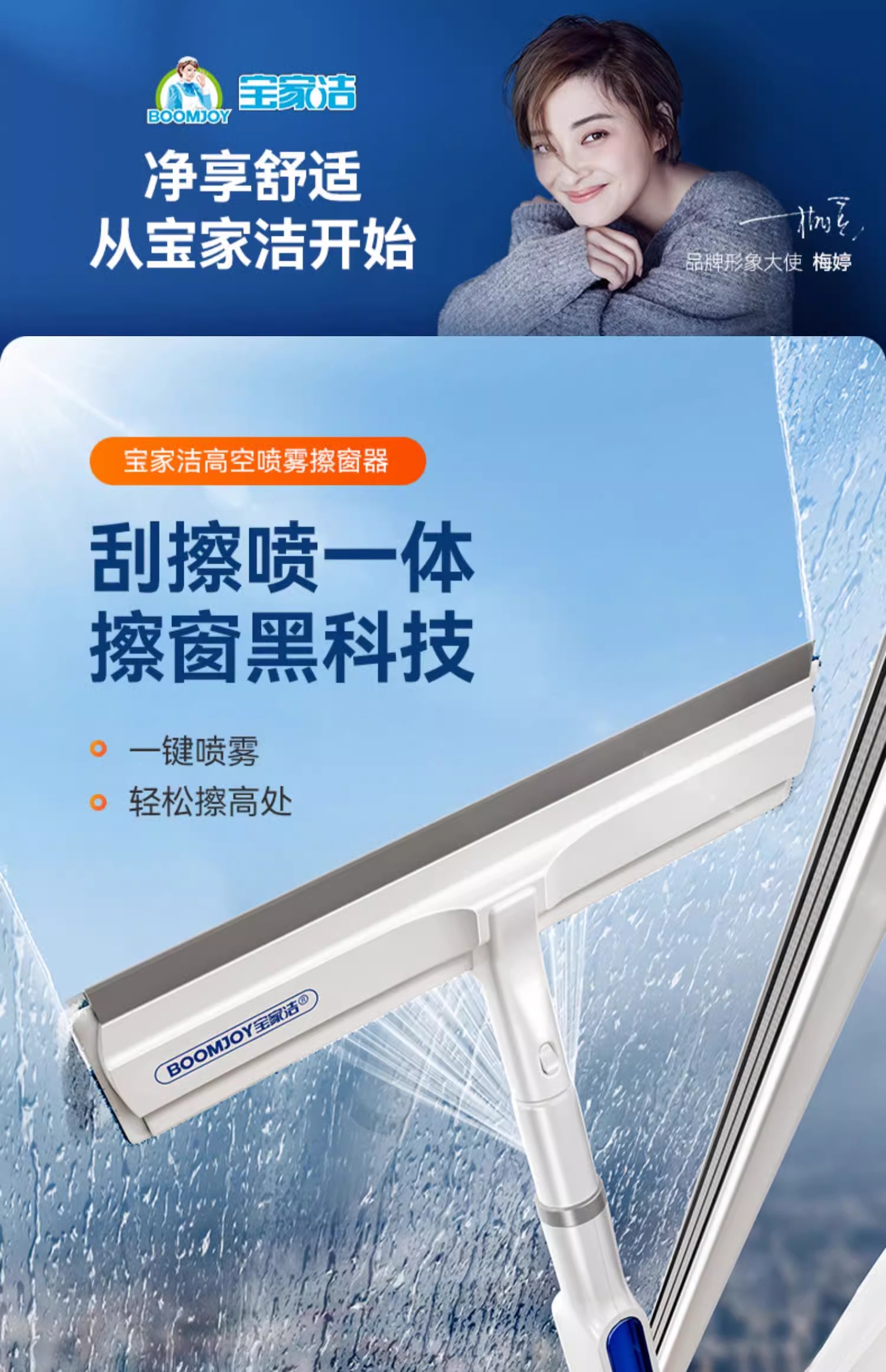 *【宝家洁】C41喷雾擦窗器 自带喷水 刮擦一体; 前后双刮 不易滴水