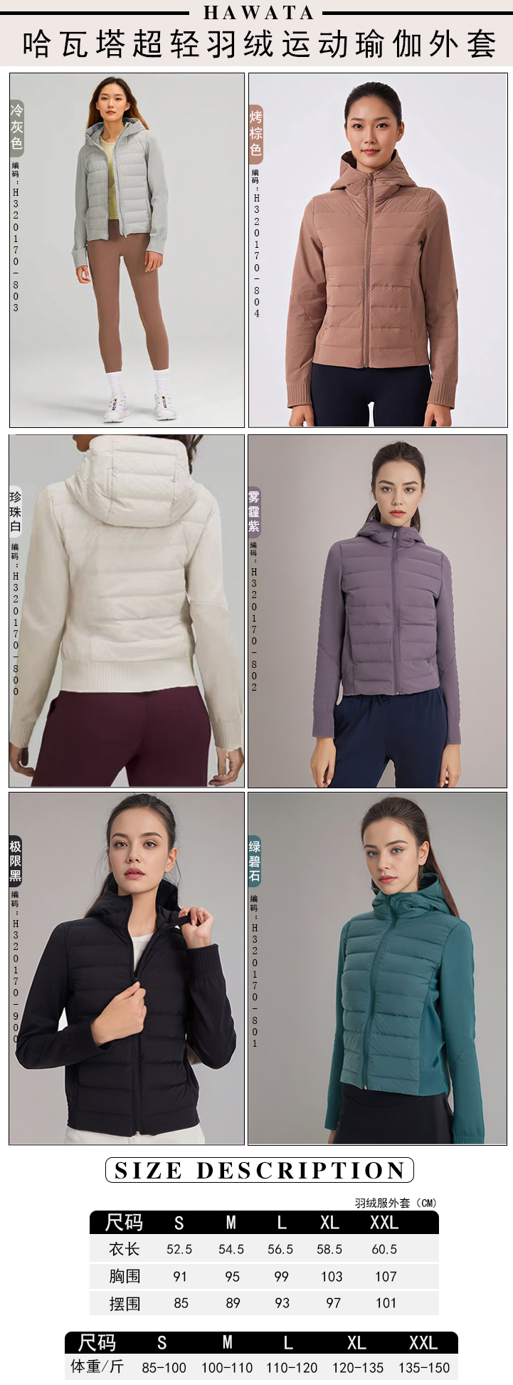 哈瓦塔超轻羽绒运动瑜伽外套H320170