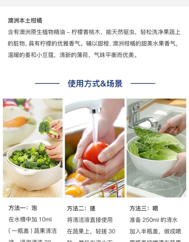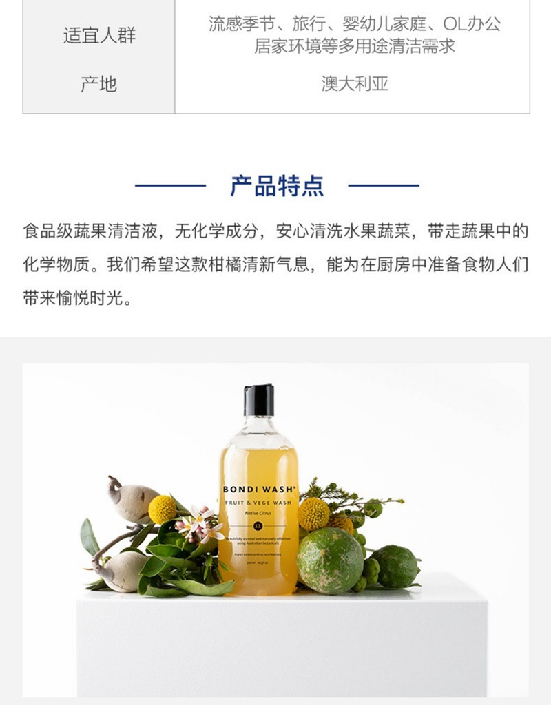 蔬果清洁液 | 澳大利亚Bondi wash 蔬果清洁液安全 孕妇婴儿专用柑橘味精油芬芳水果蔬菜清洗液500ml