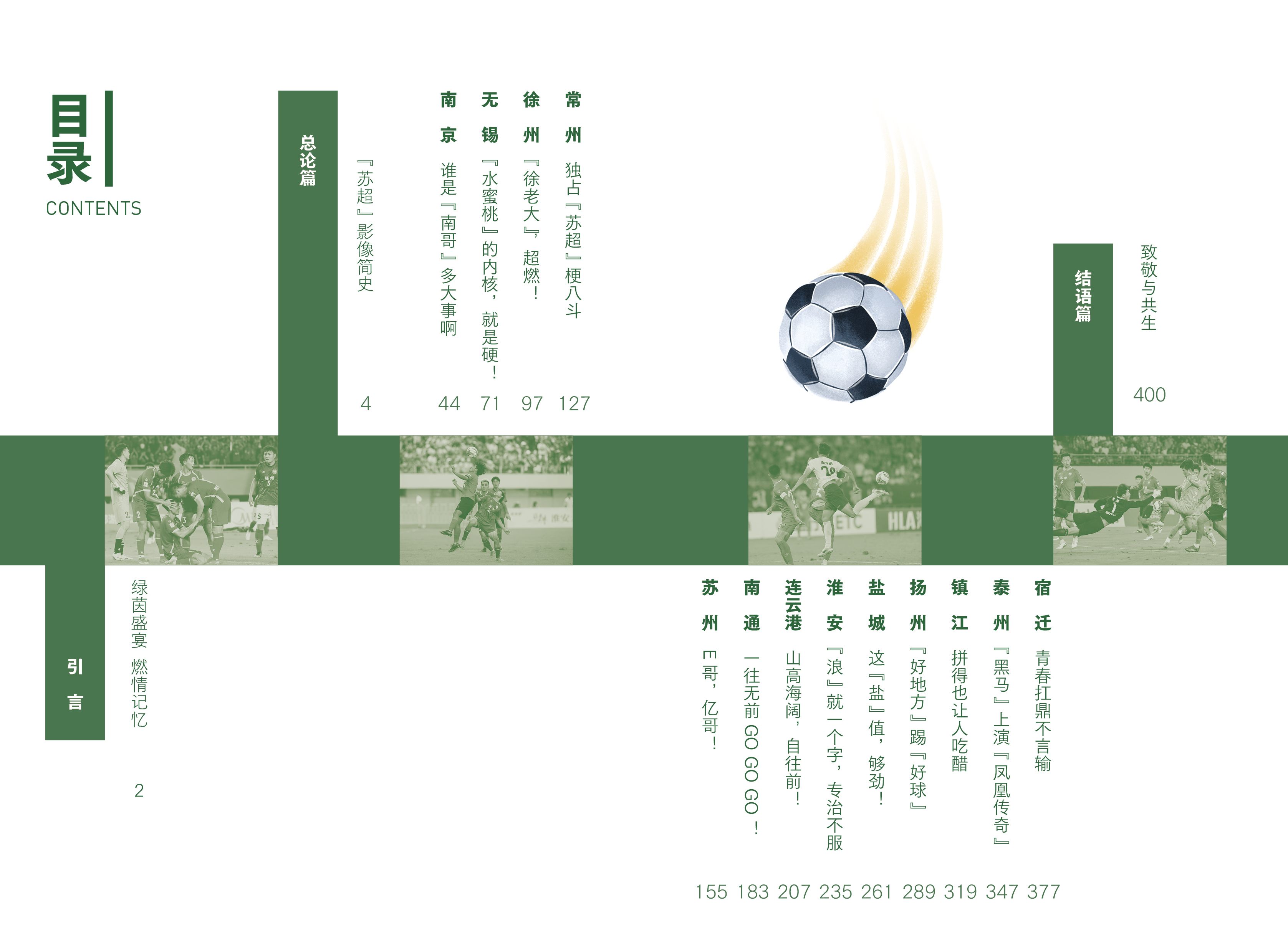 编辑推荐:该书稿选题新颖,以大量精美图片为载体,全面记录“苏超”赛事,生动呈现江苏13城足球文化,特色鲜明。主体篇“十三太保 热血江湖”构思巧妙,以市为单元,配专属导语与标志性场景图片,形式鲜活。既是对赛事的致敬,又诠释了江苏人的体育精神.