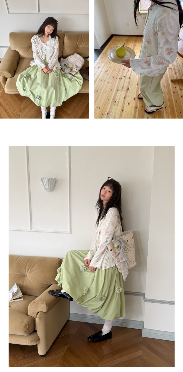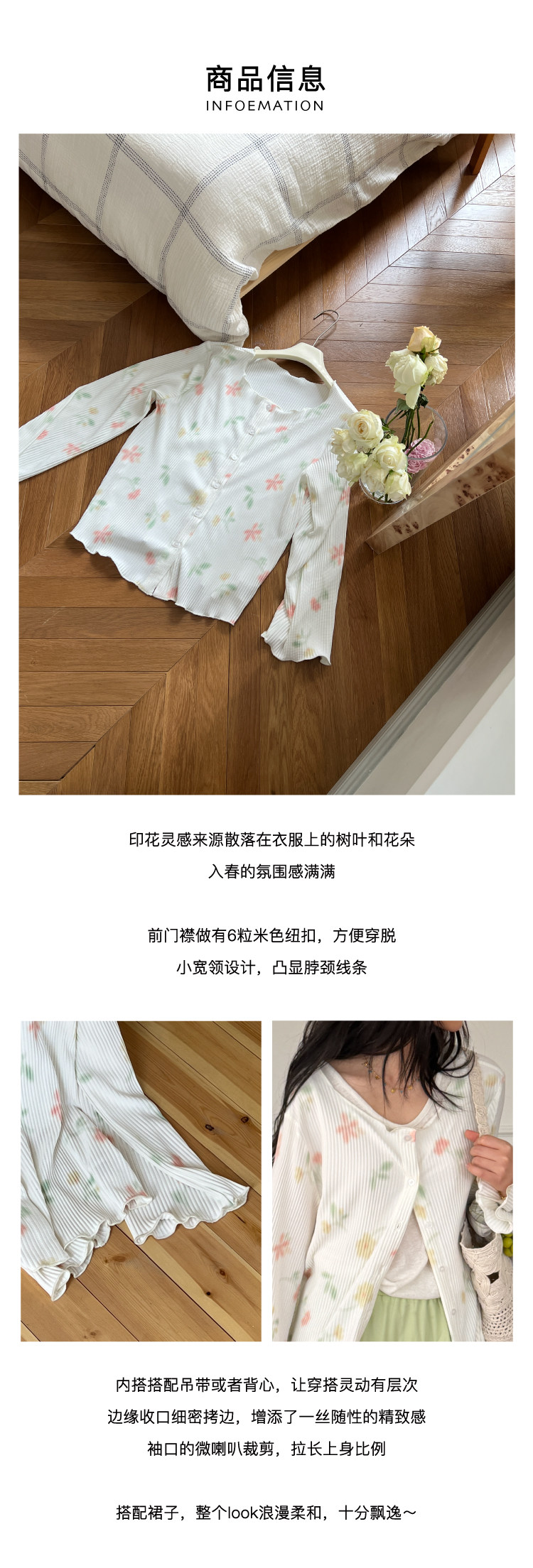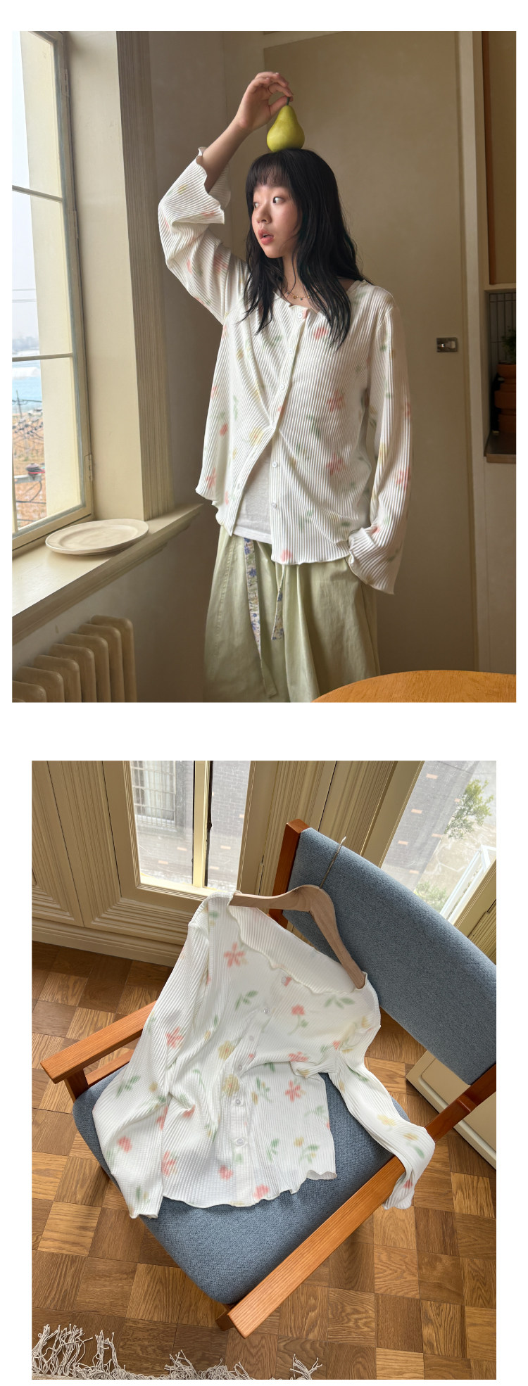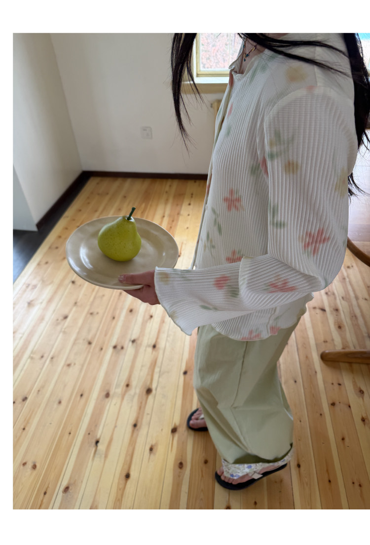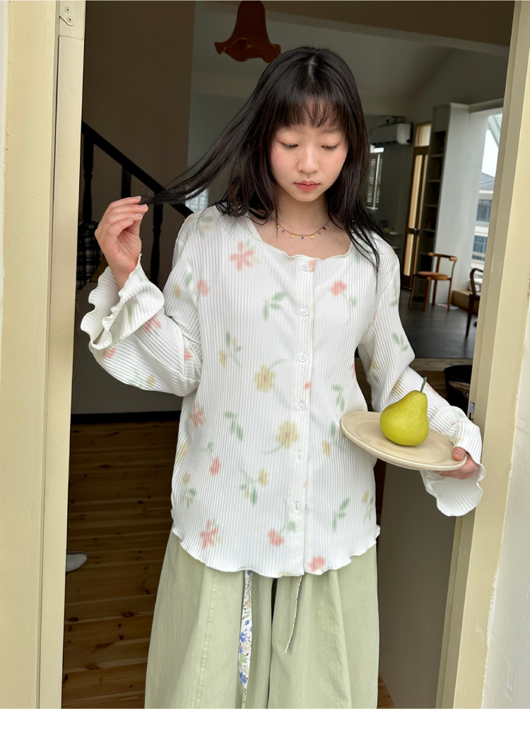 nothe Case布然/NC261624/「柔焦花影」满底手绘印花压褶开衫 百搭温柔上衣外套