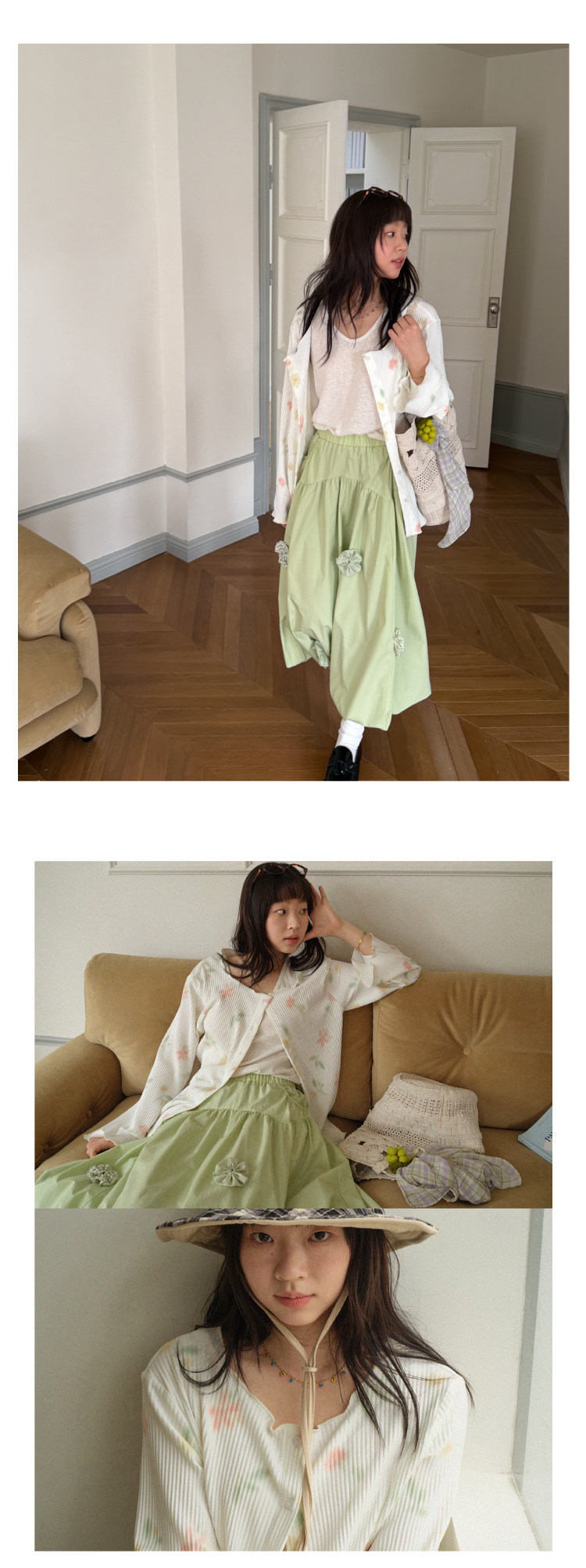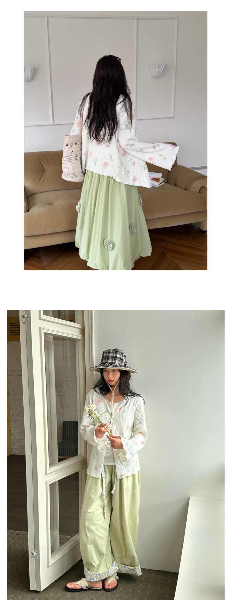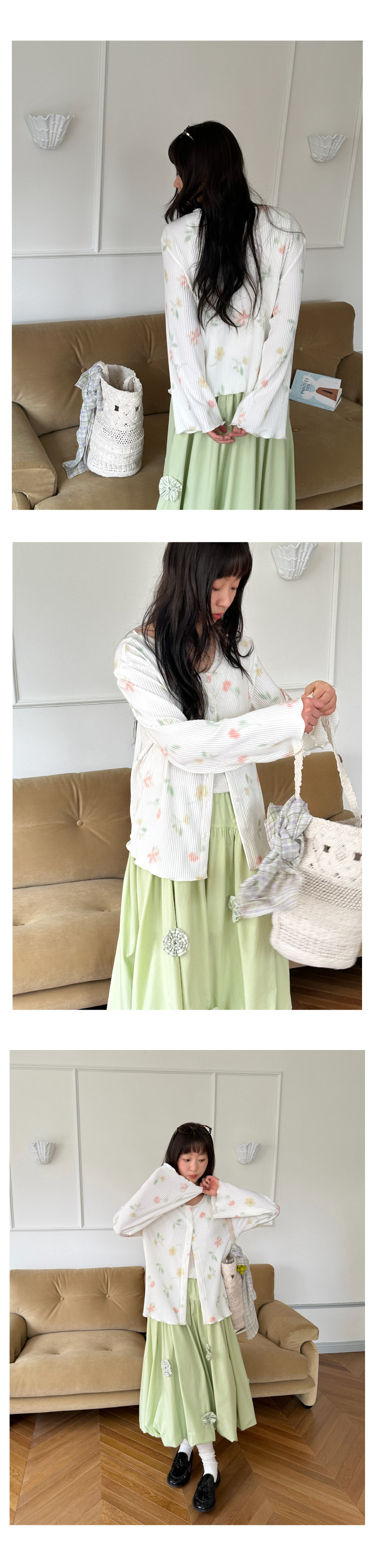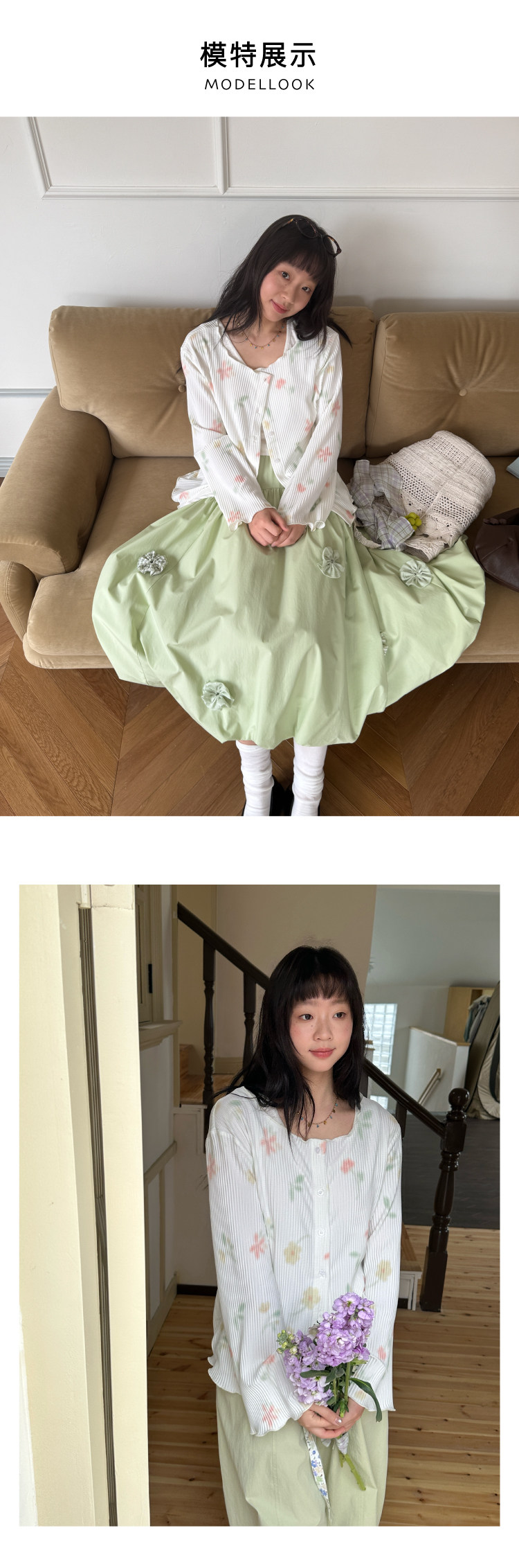 nothe Case布然/NC261624/「柔焦花影」满底手绘印花压褶开衫 百搭温柔上衣外套