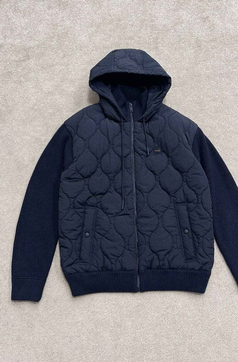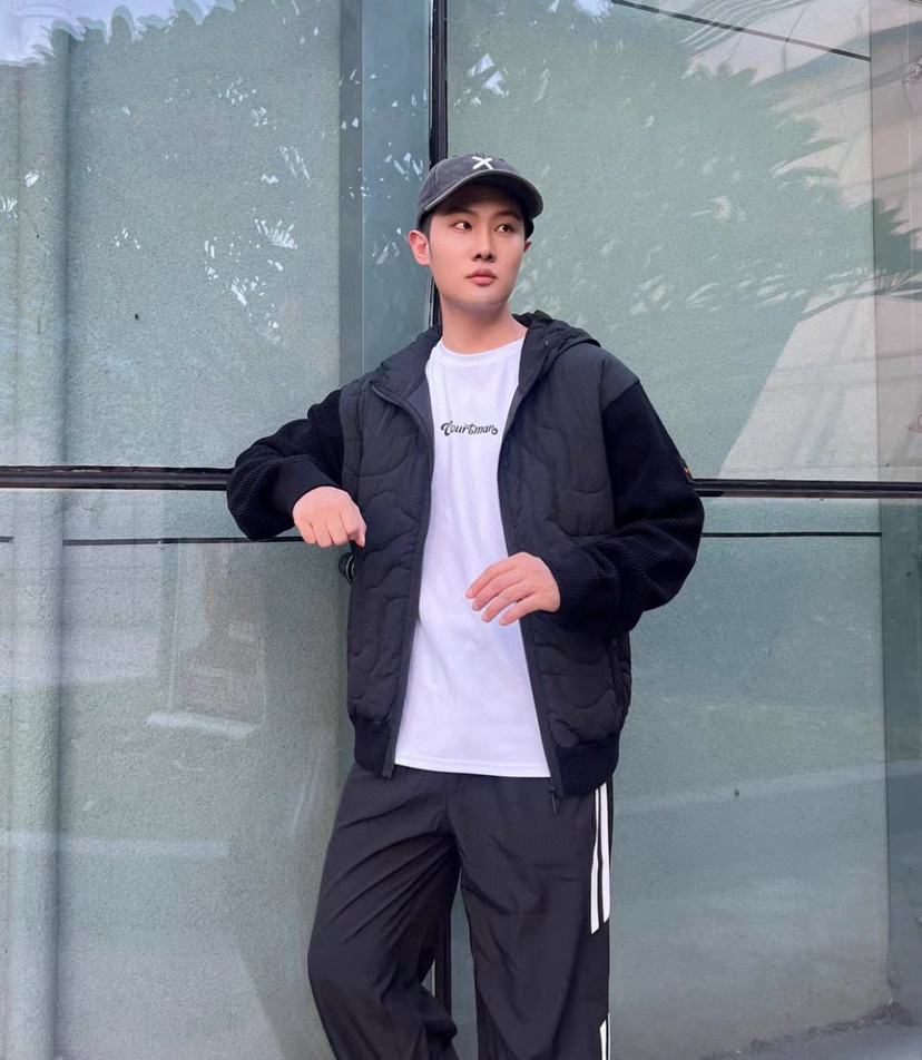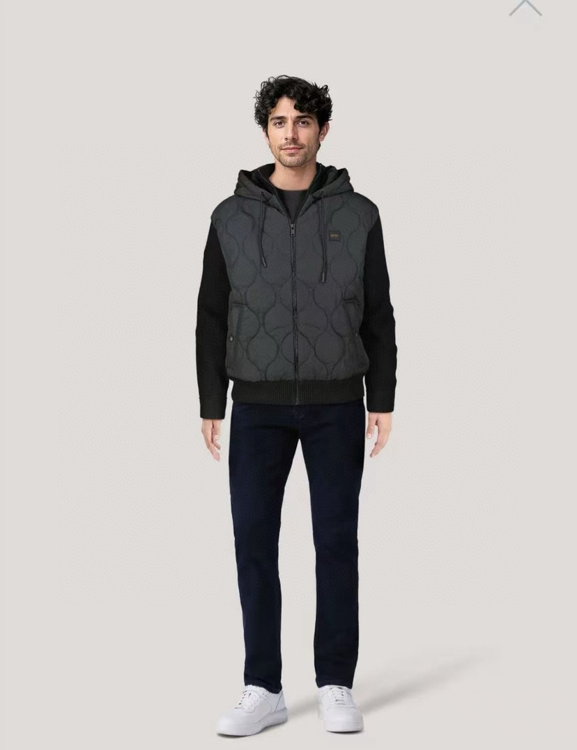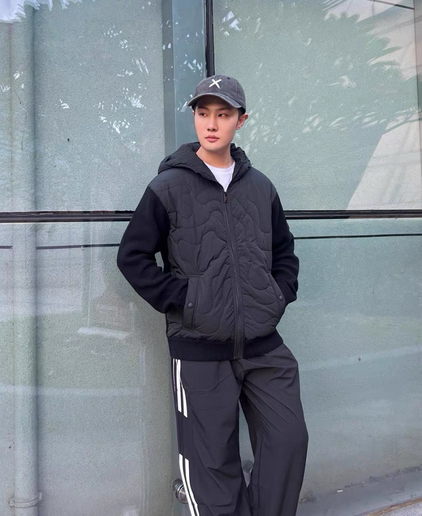 加厚接拼棉服克夹,连帽卫衣式款年轻时尚,针织毛衣拼绗接缝夹棉设计日,常休闲动运无比合适。