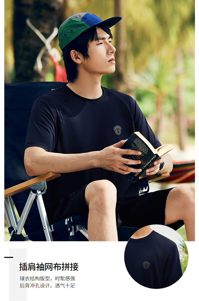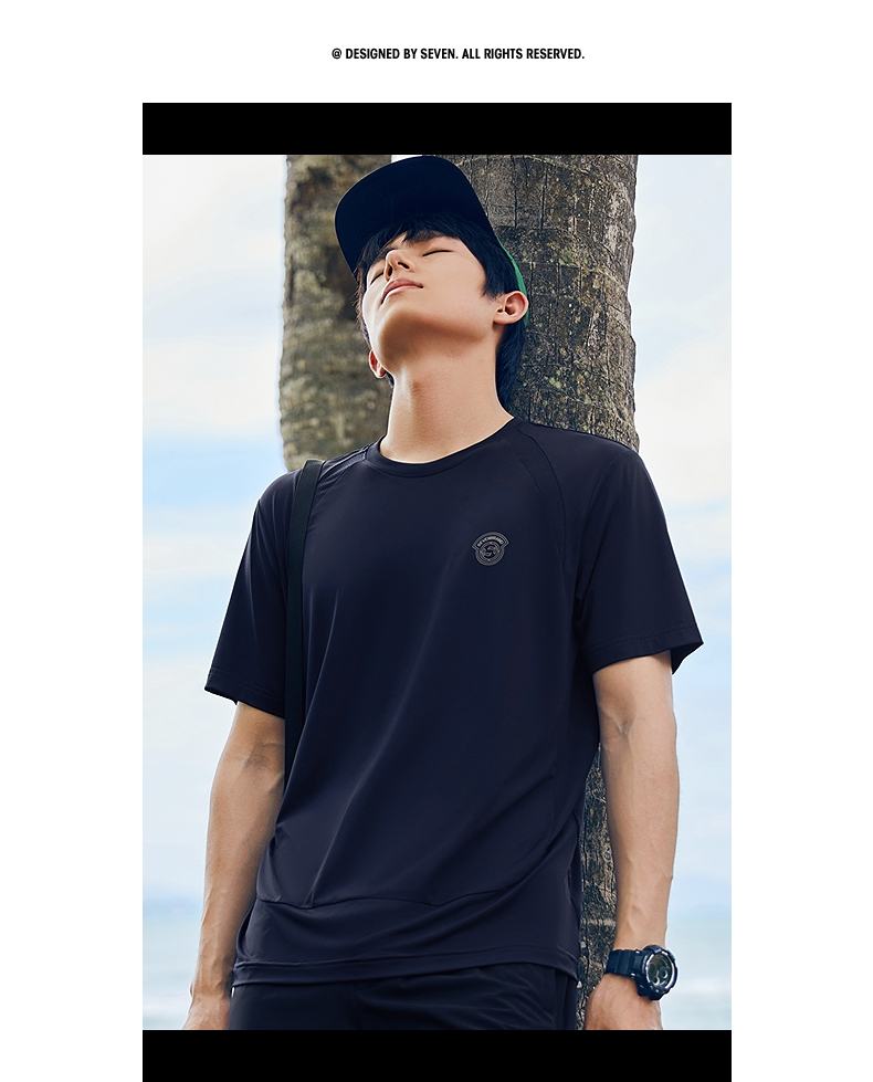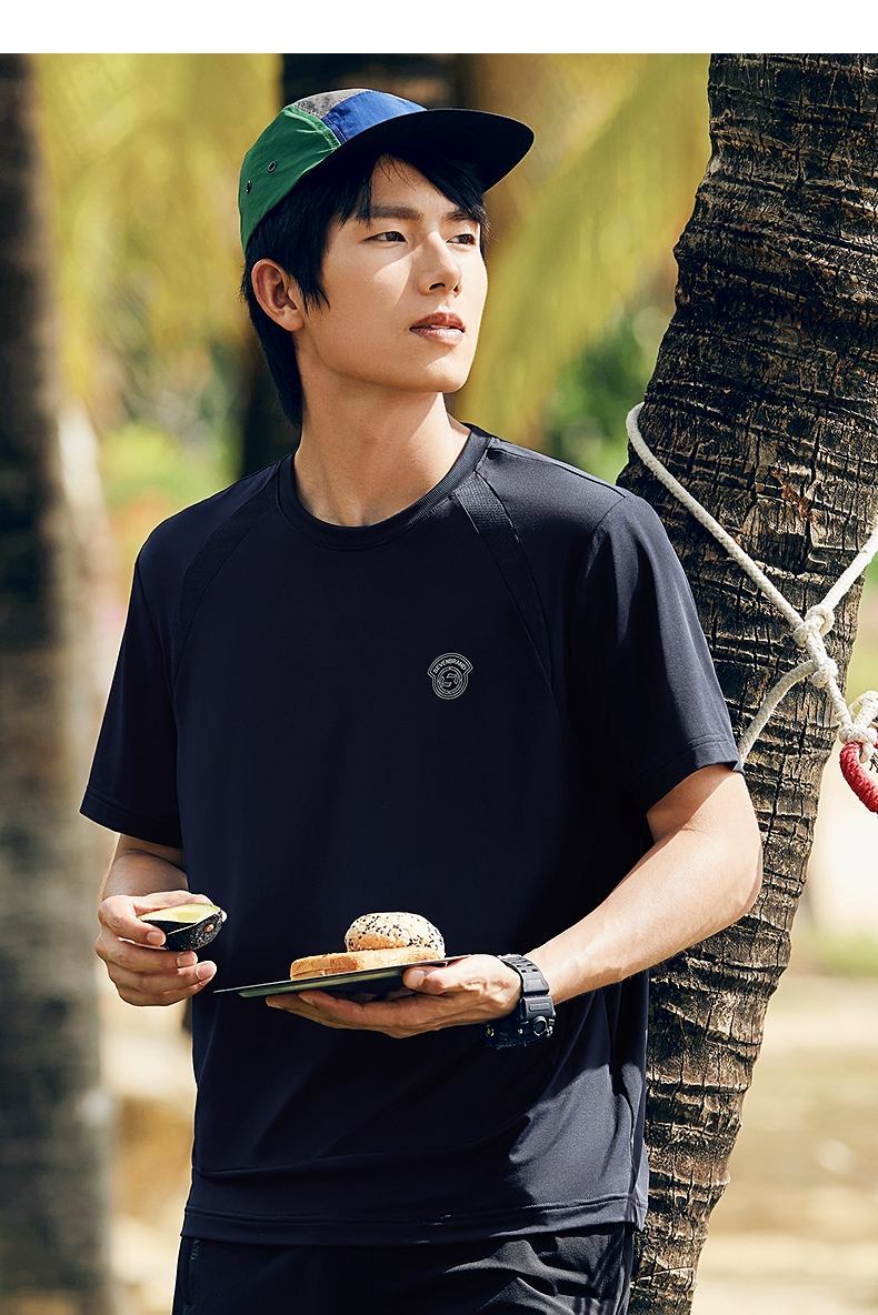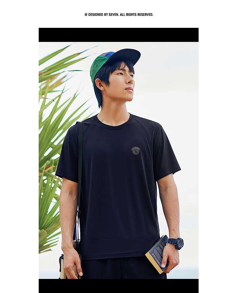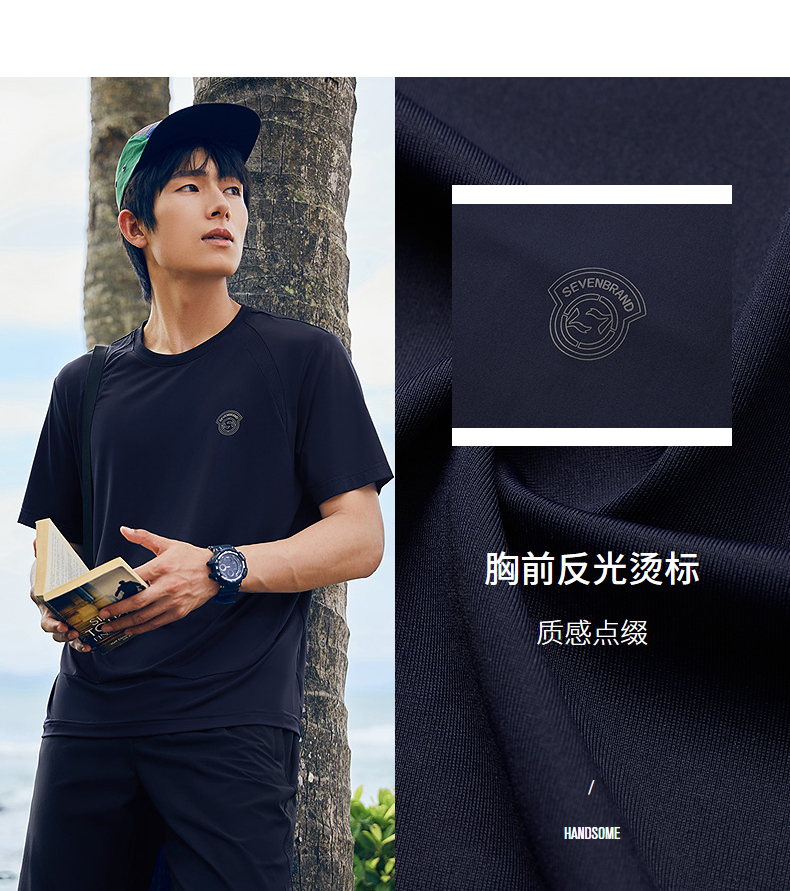 【高弹】柒牌速干短袖T恤男夏季新款时尚百搭运动休闲圆领体恤衫 126T72330