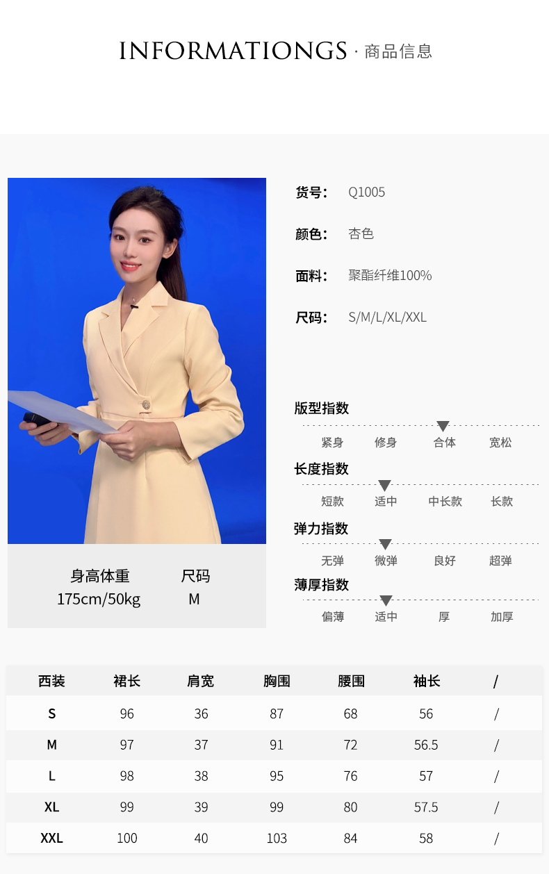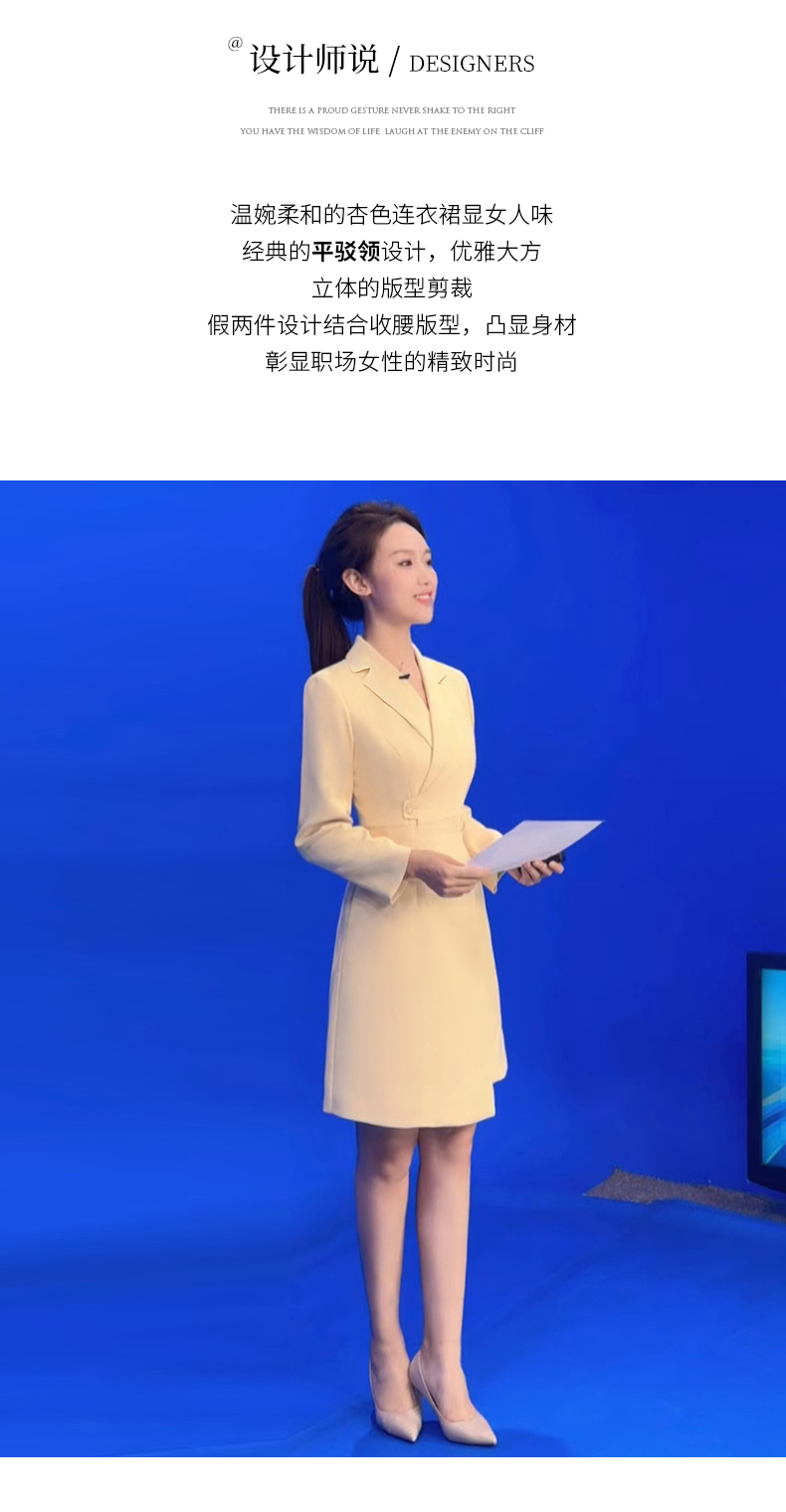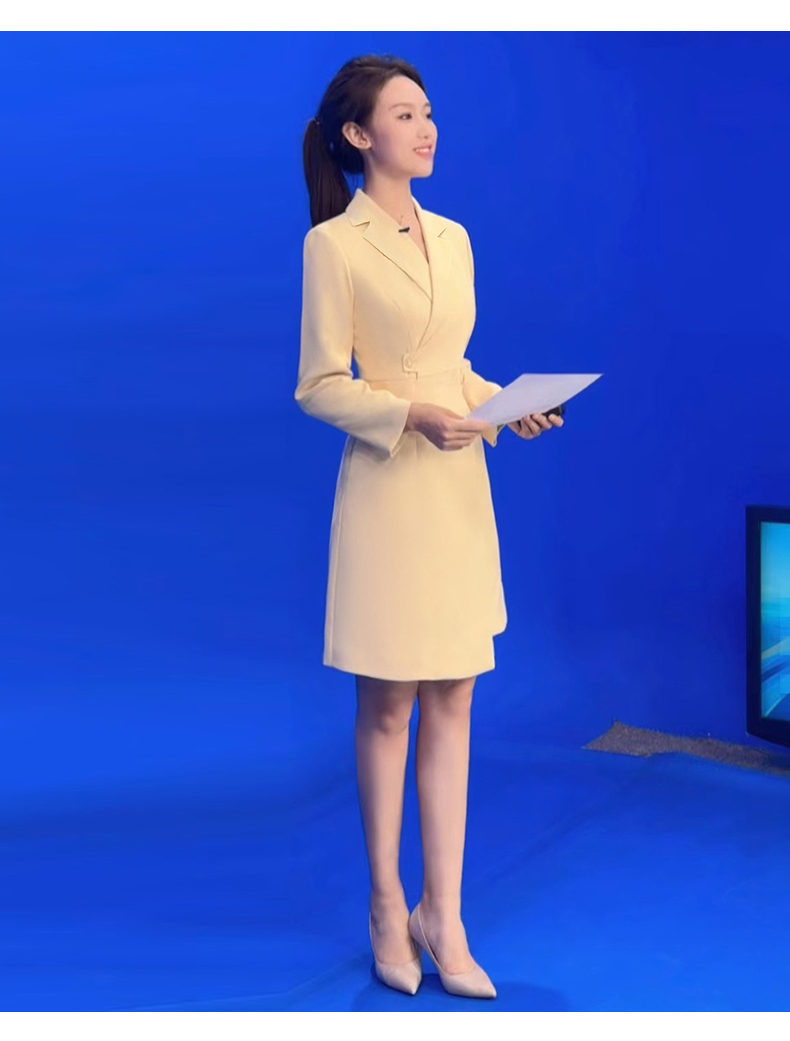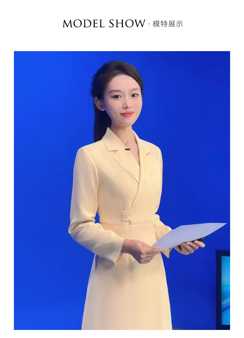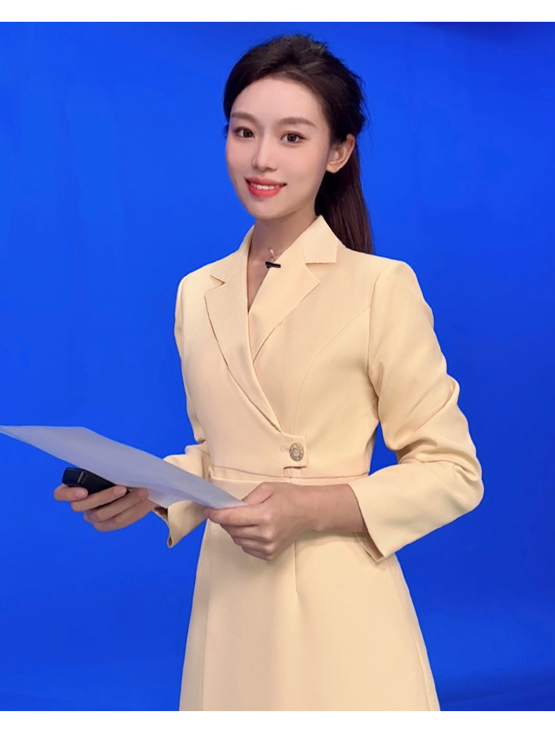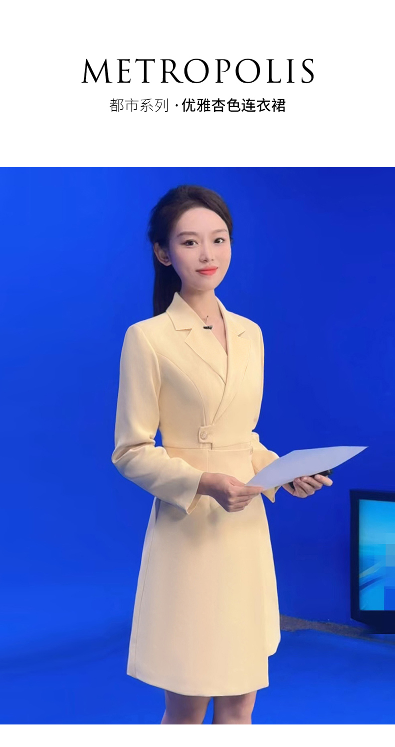 IWY/洋气鹅黄色西装连衣裙女收腰播音生主持人正装长袖艺Q1005