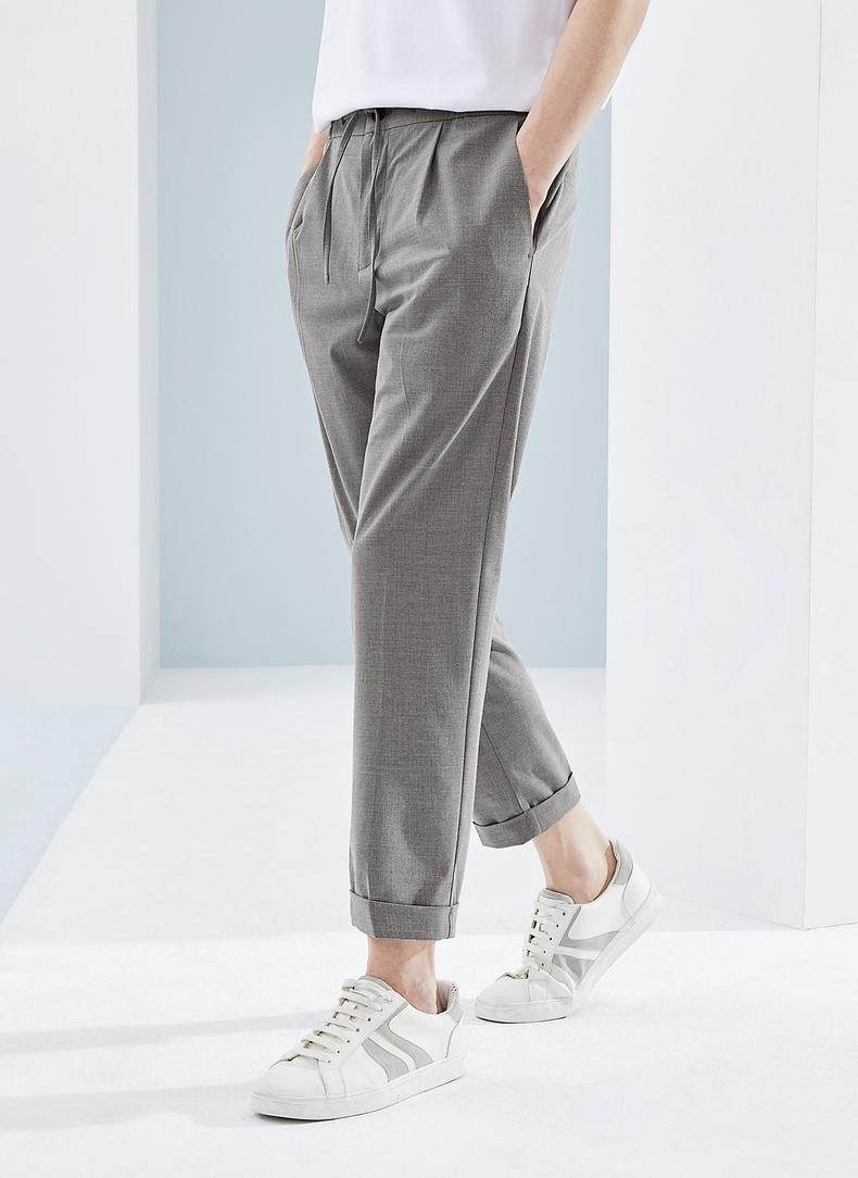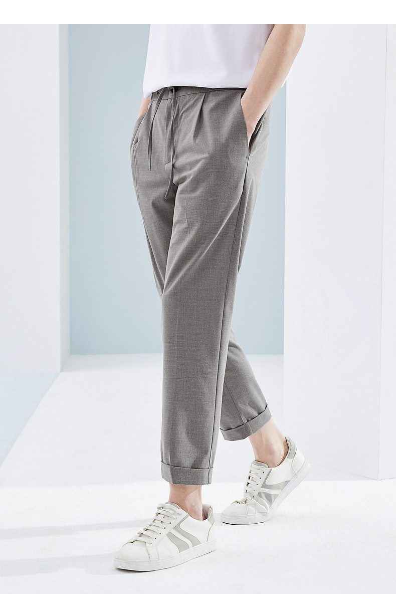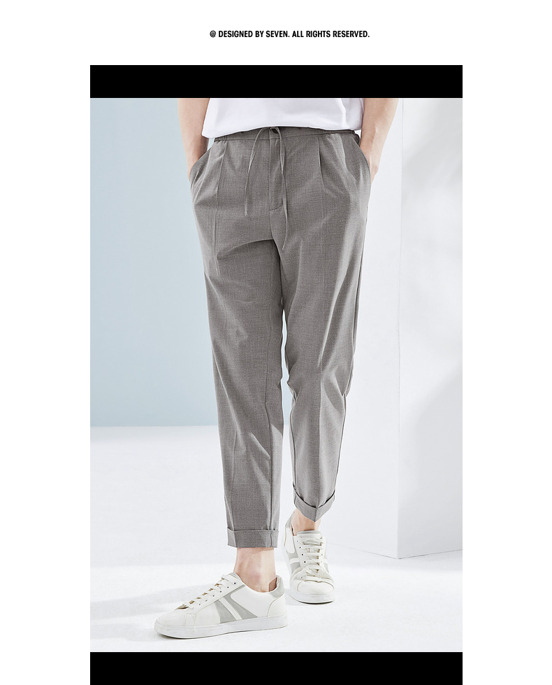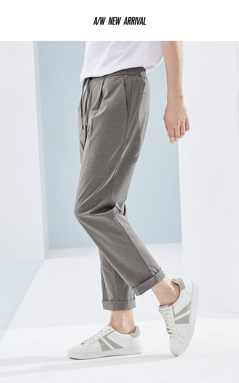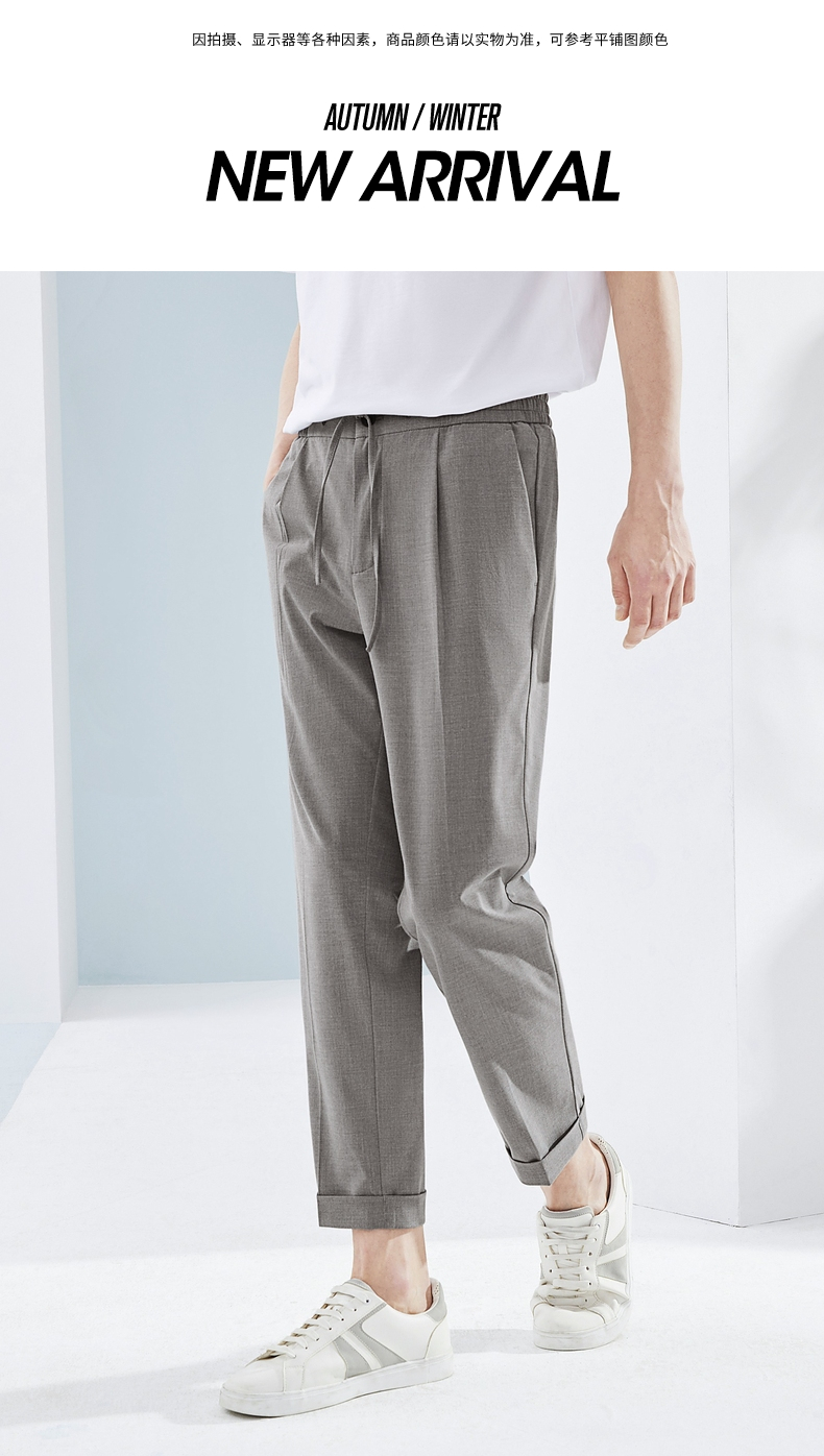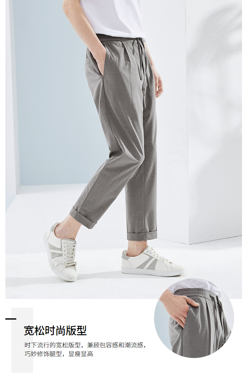 【特价】柒牌男装休闲裤男春夏新款宽松微弹直筒裤男士抽绳松紧九分裤 124H70130
