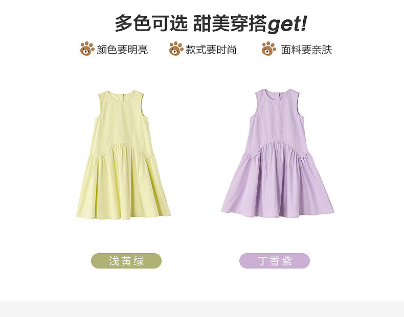笛莎/Deesha 【松饼熊】2026年夏季新款女童连衣裙无袖A版棉布连衣裙