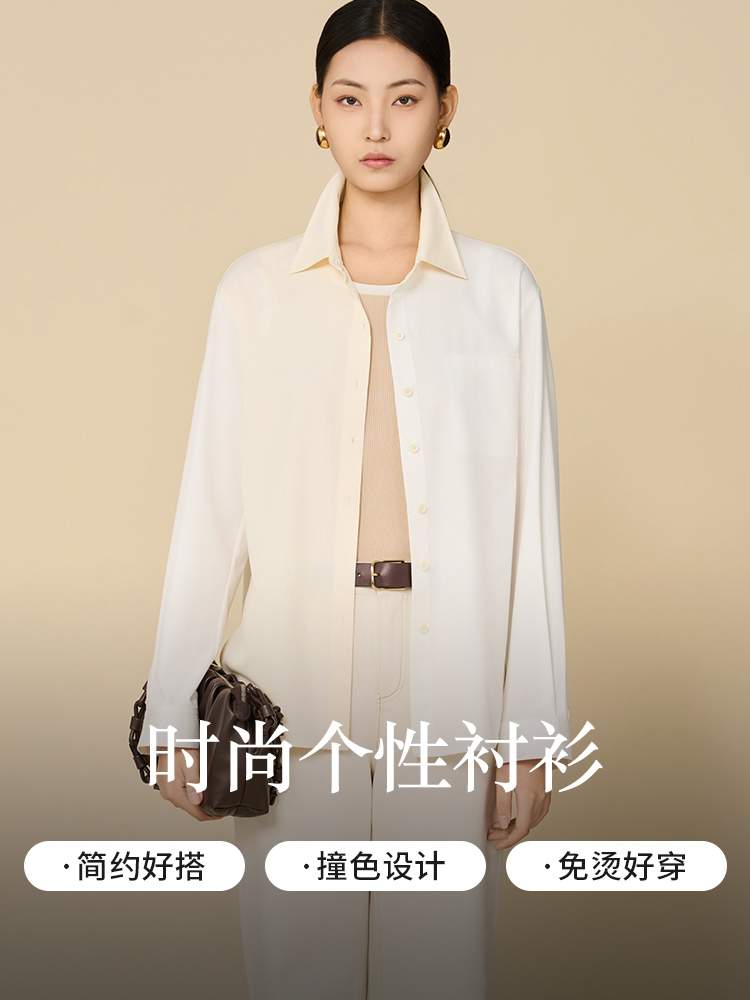 【商场同款】CNB5858 “ 亲肤拼色衬衫 ” 文艺淡雅色系拼色衬衫