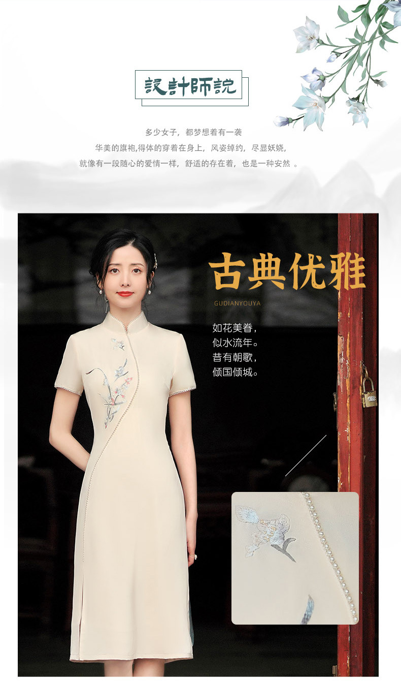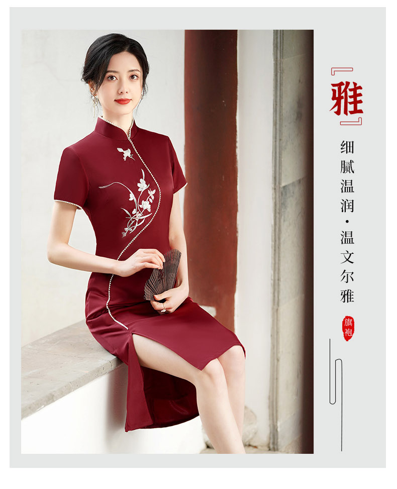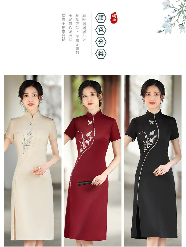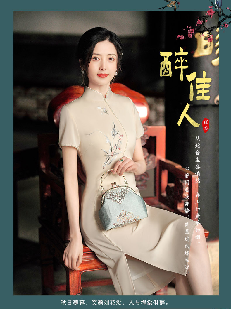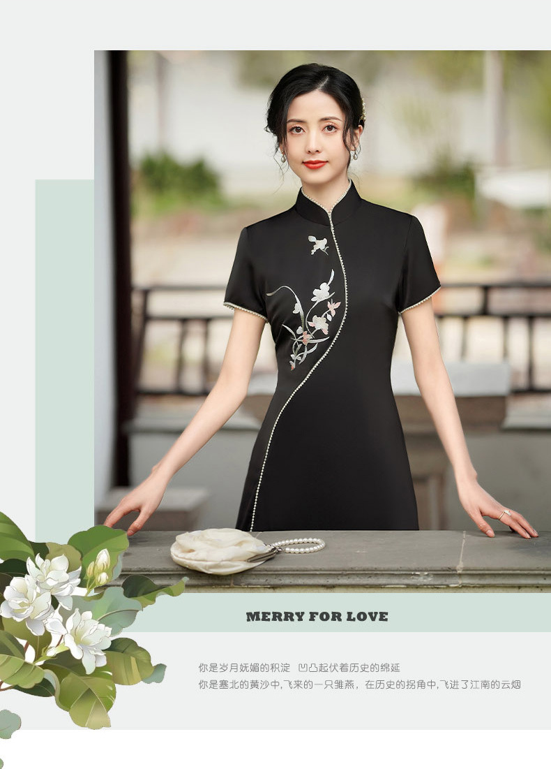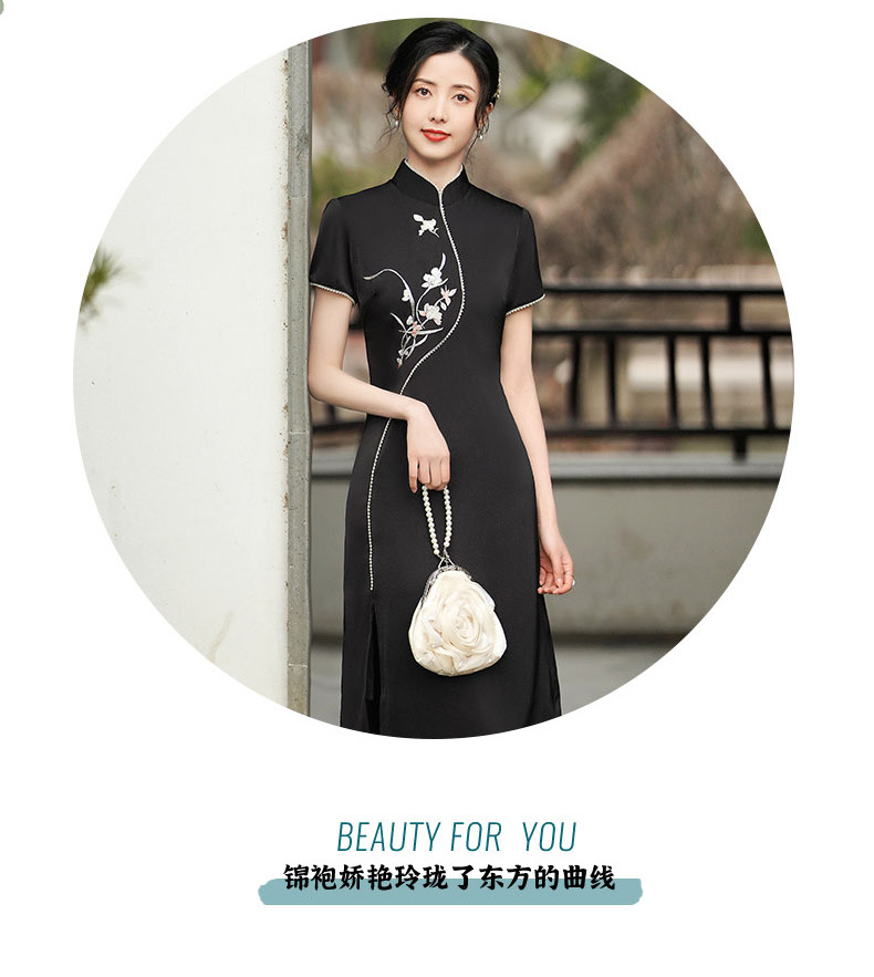 【盈盈一握】古典优雅,立领绣花修身醋酸旗袍TX-860