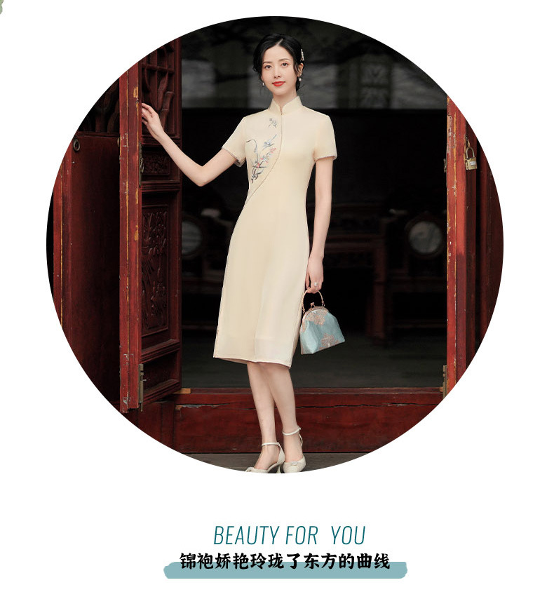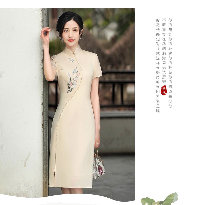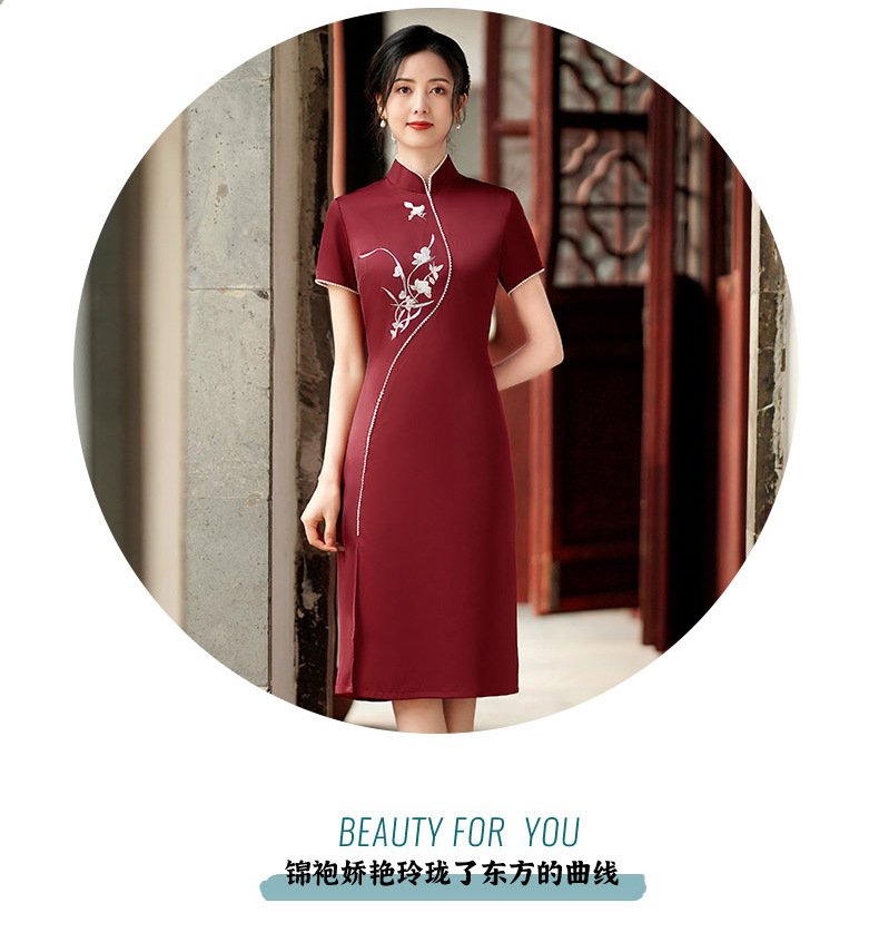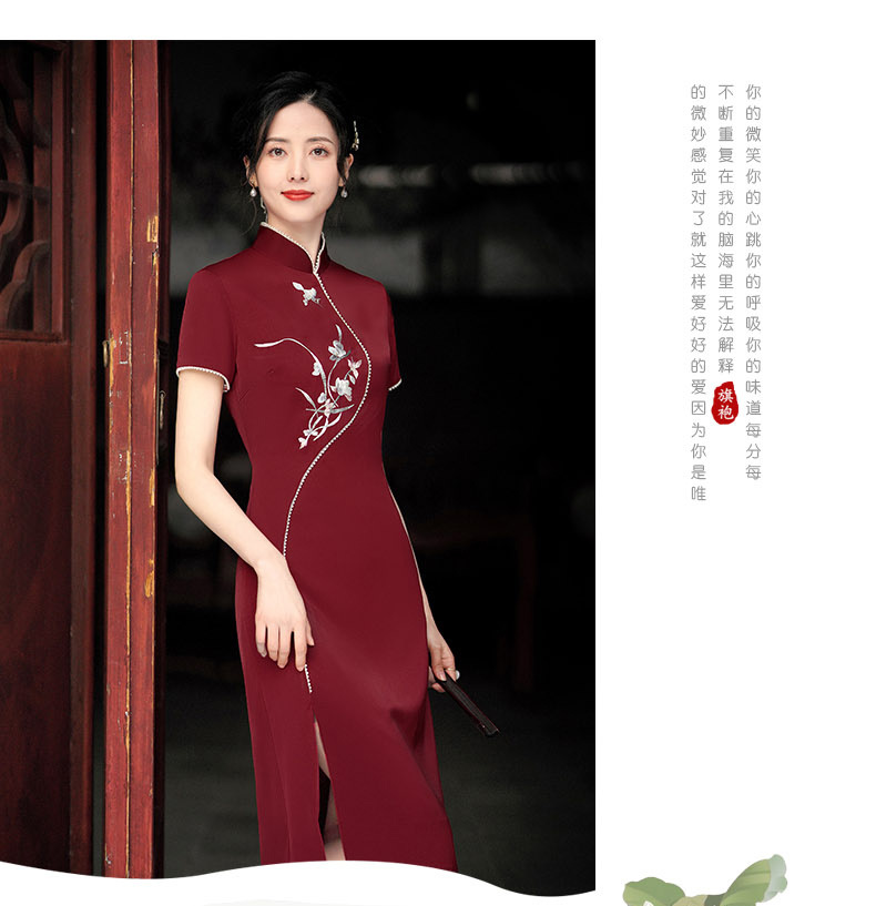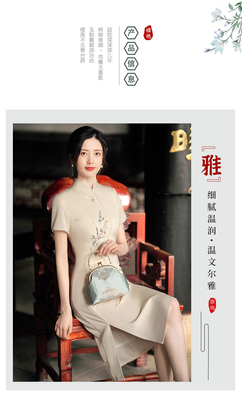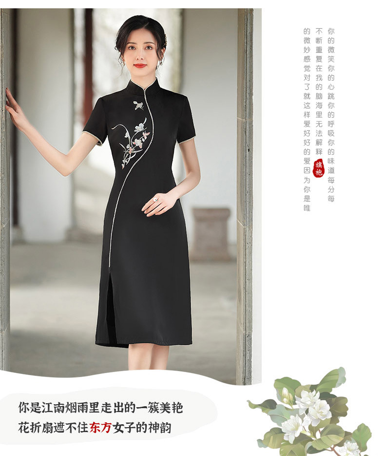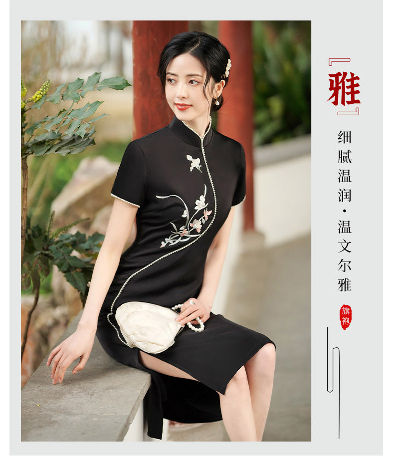【盈盈一握】古典优雅,立领绣花修身醋酸旗袍TX-860