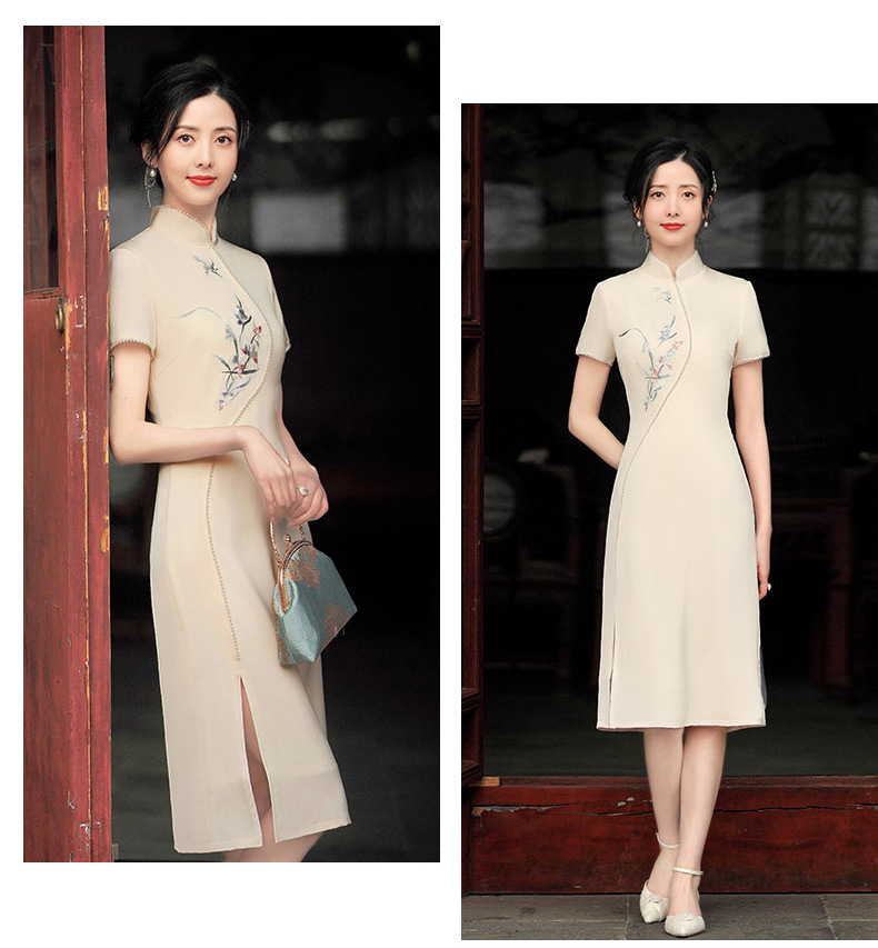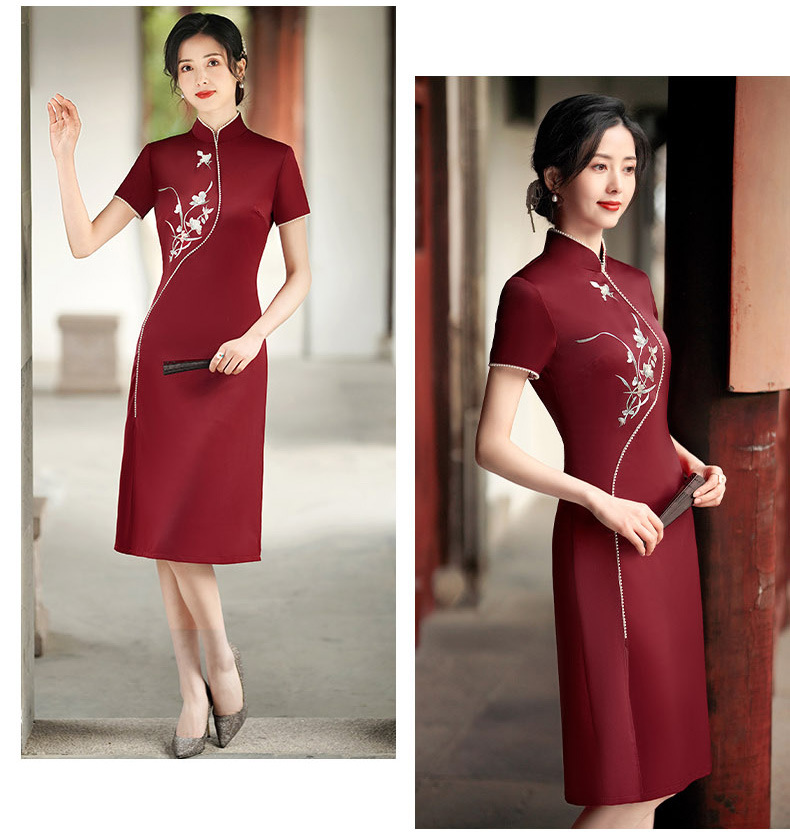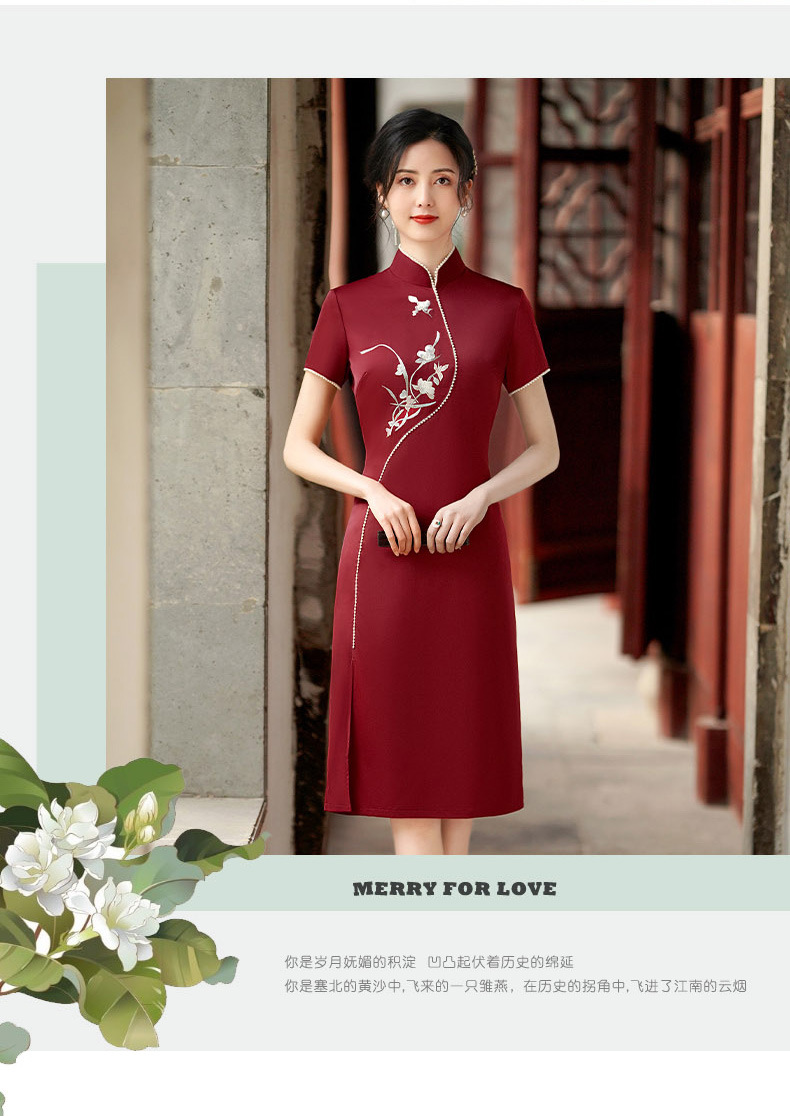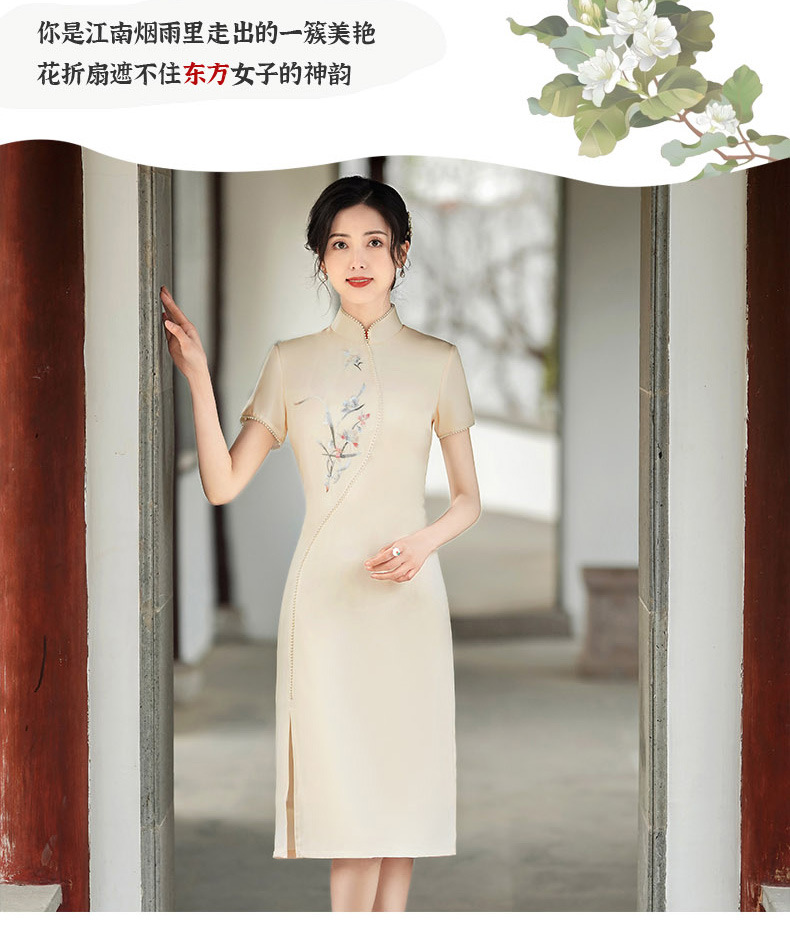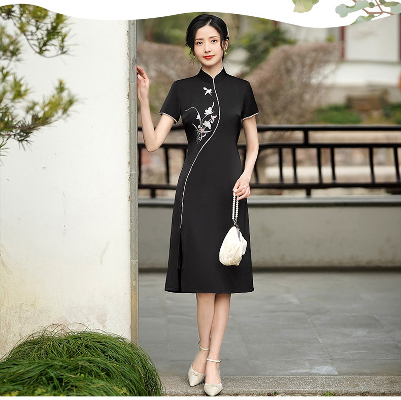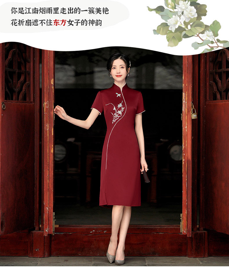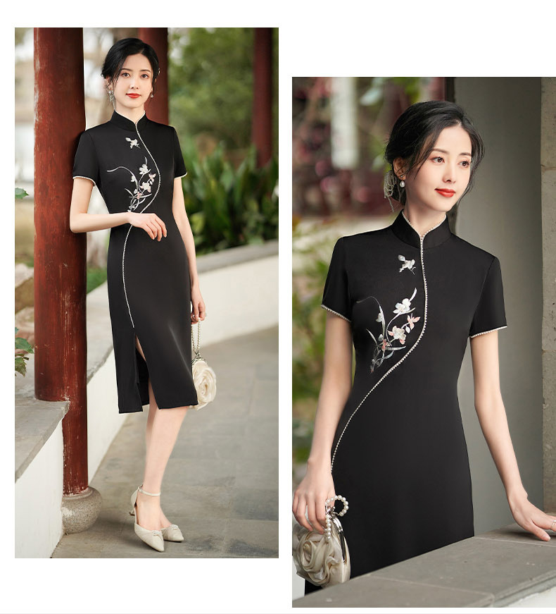 【盈盈一握】古典优雅,立领绣花修身醋酸旗袍TX-860