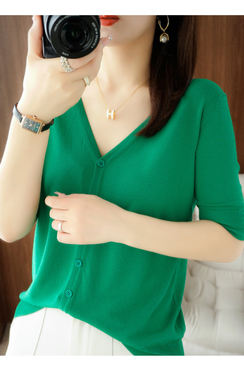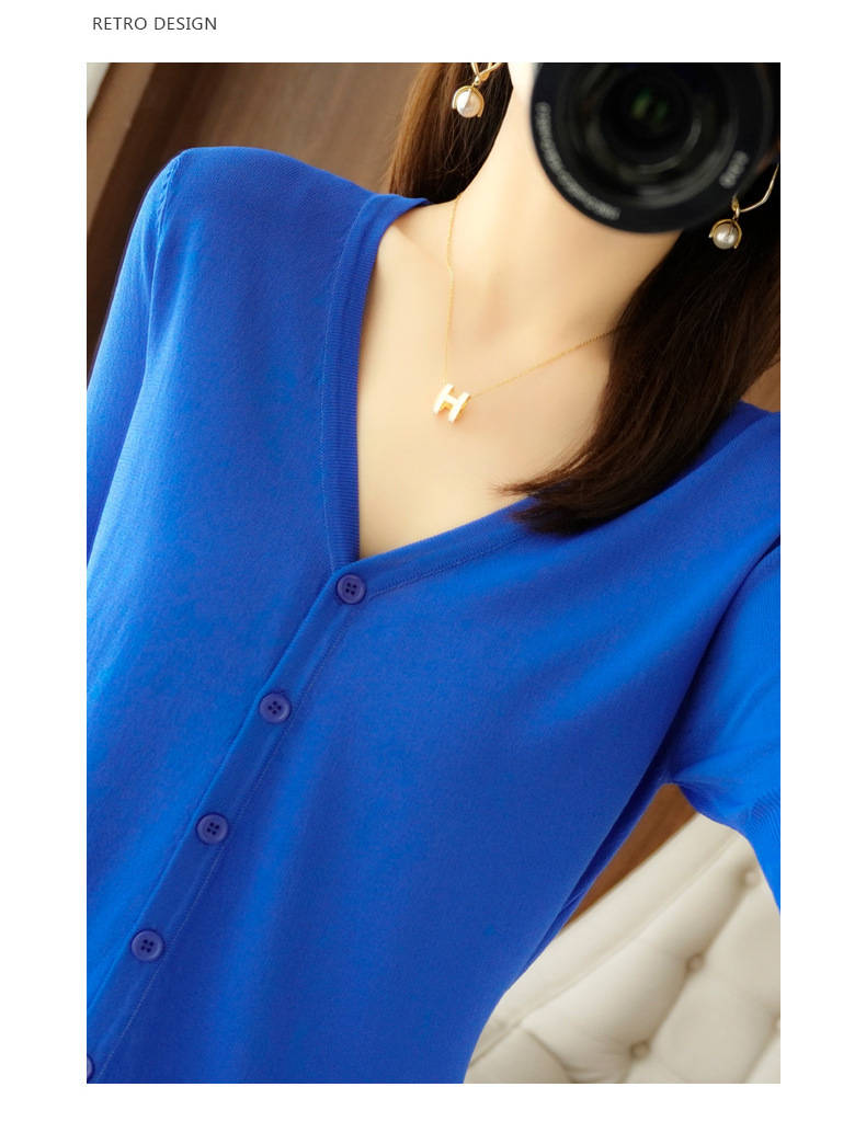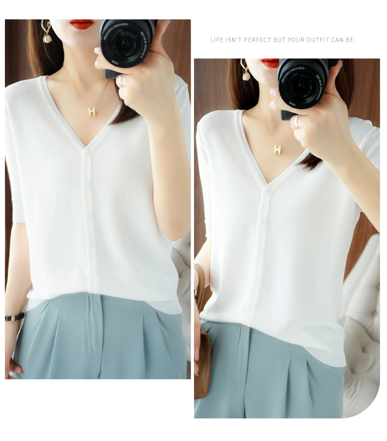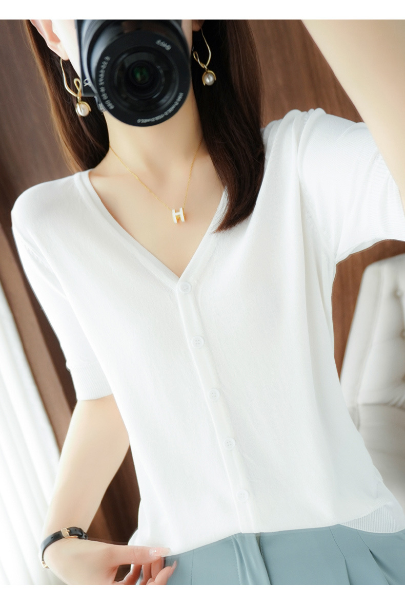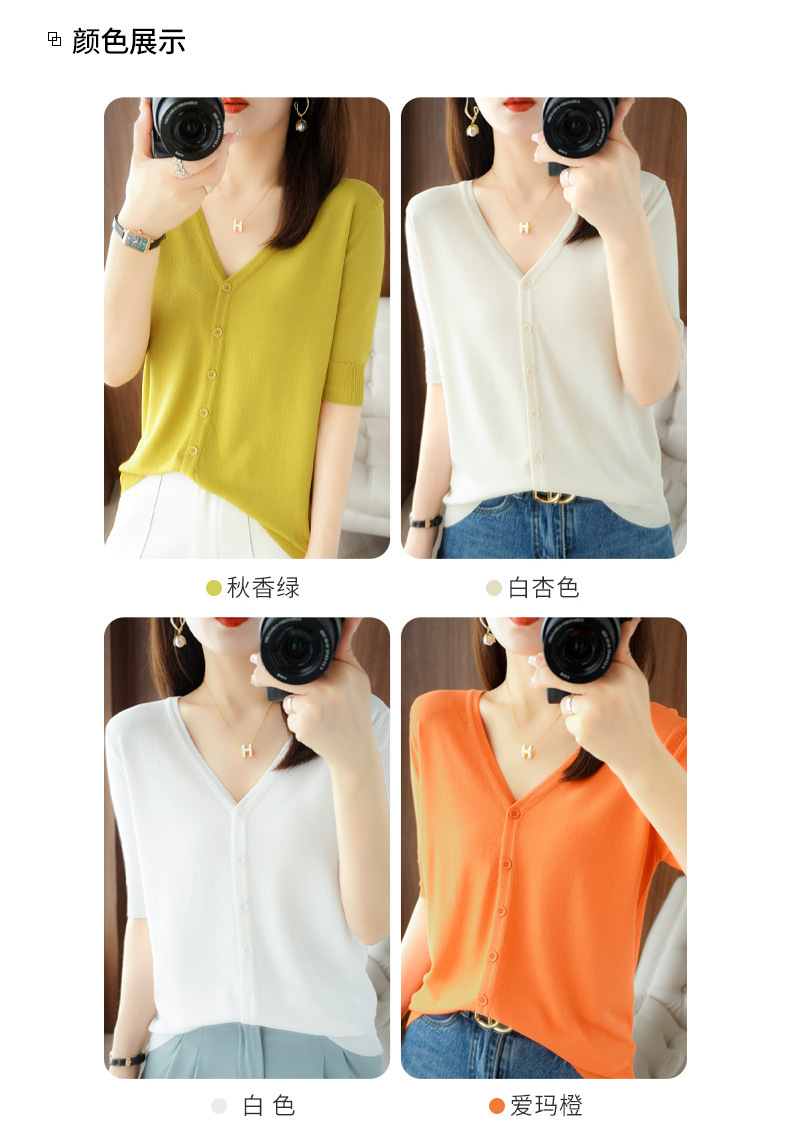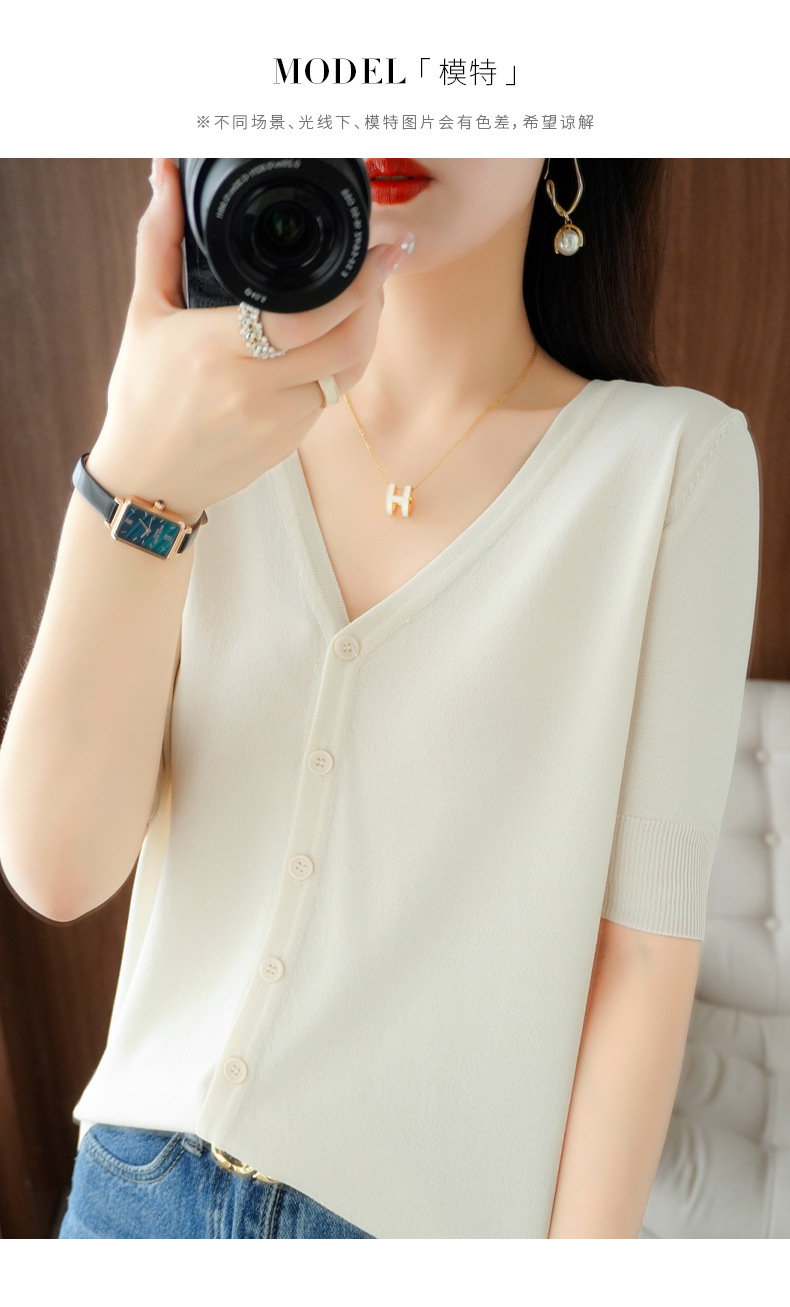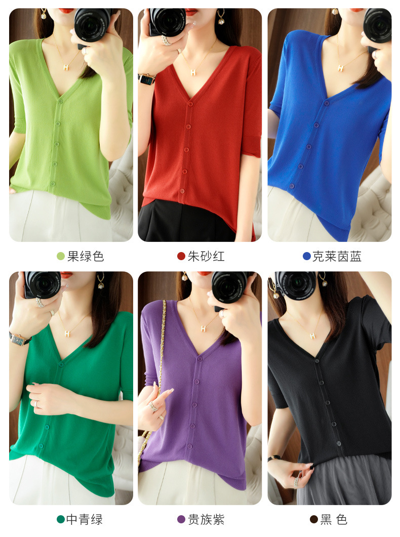 新款时尚气质休闲V领短袖薄款冰丝针织开衫外套上衣JYYR-JY2270