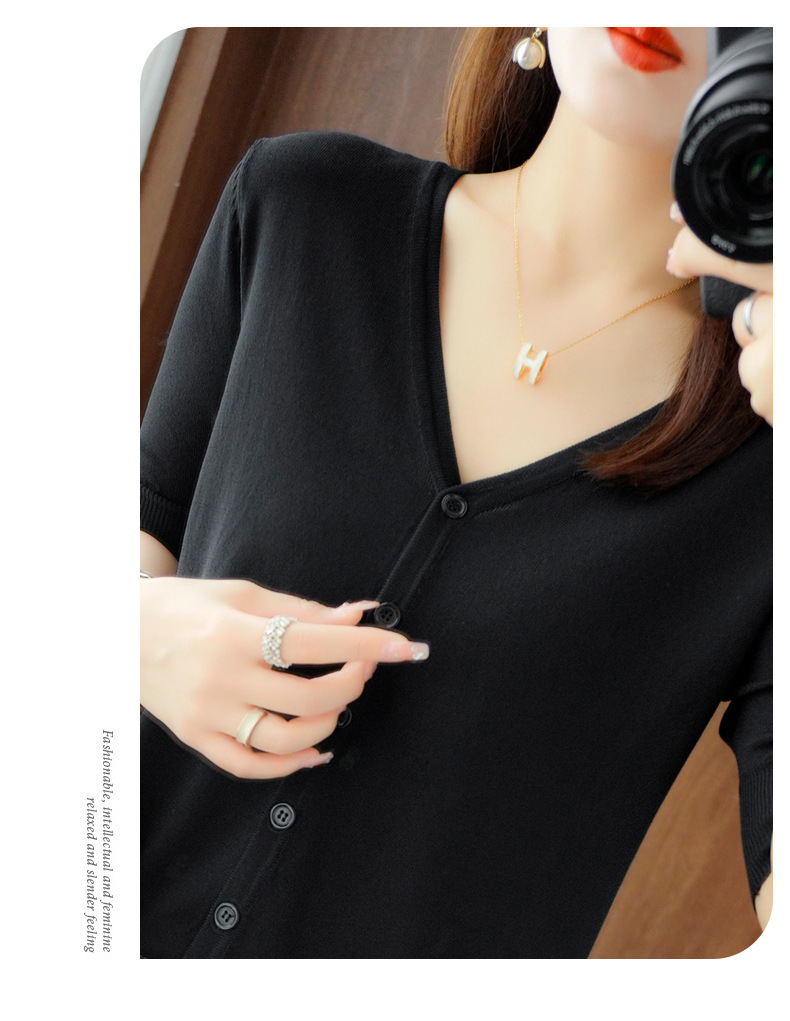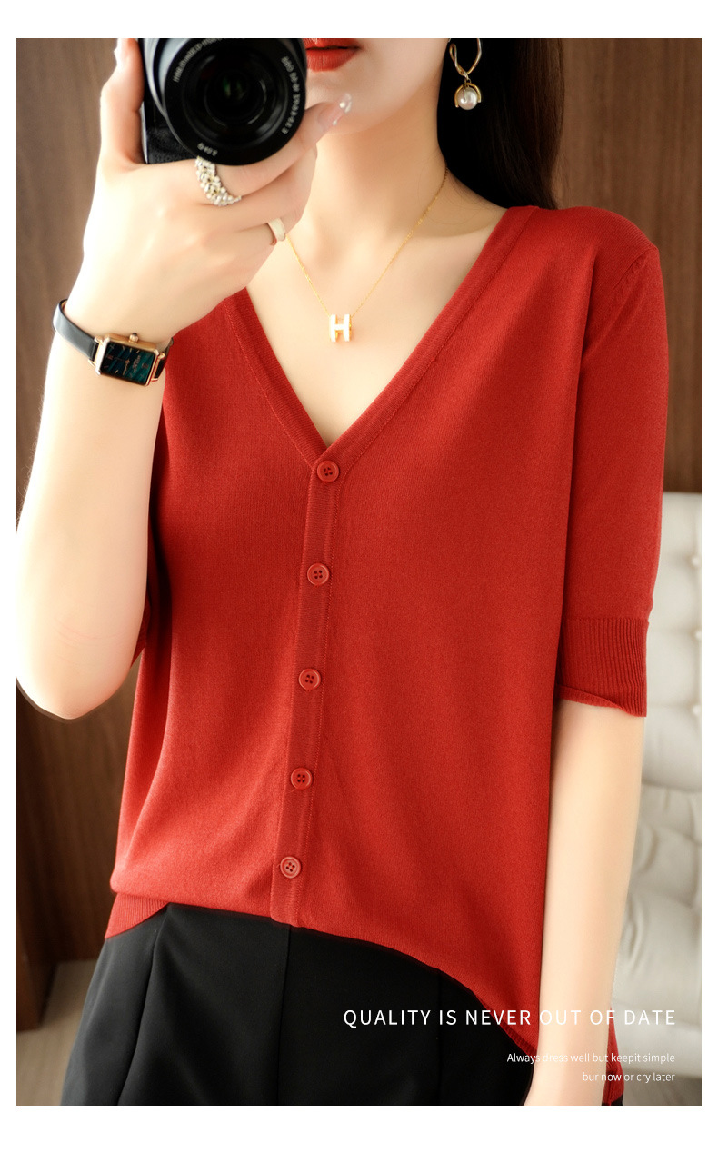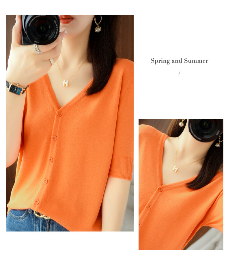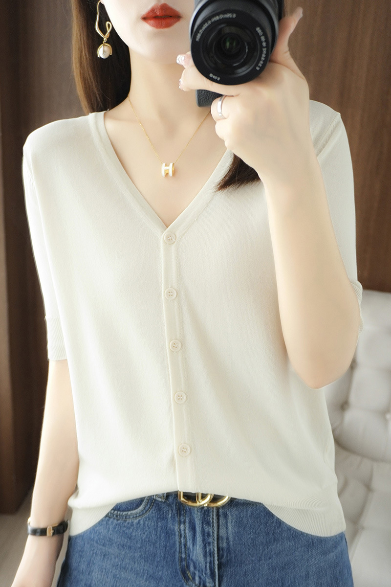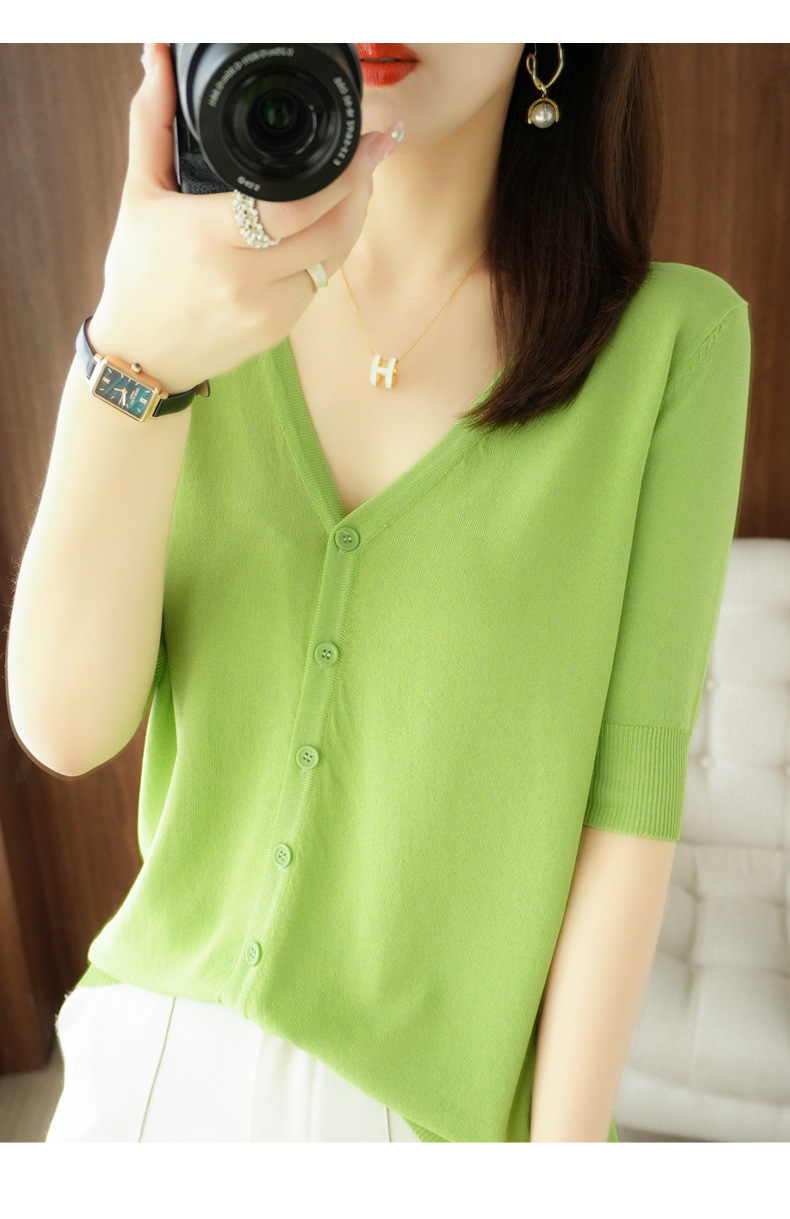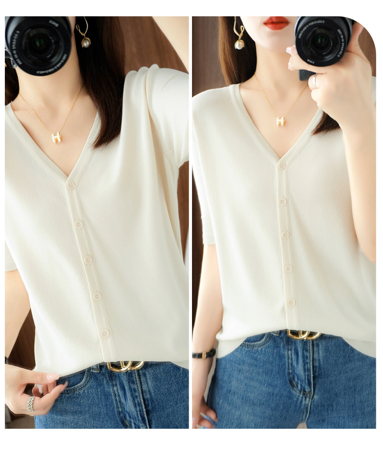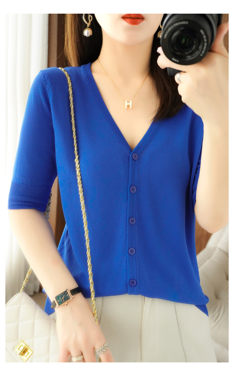 新款时尚气质休闲V领短袖薄款冰丝针织开衫外套上衣JYYR-JY2270