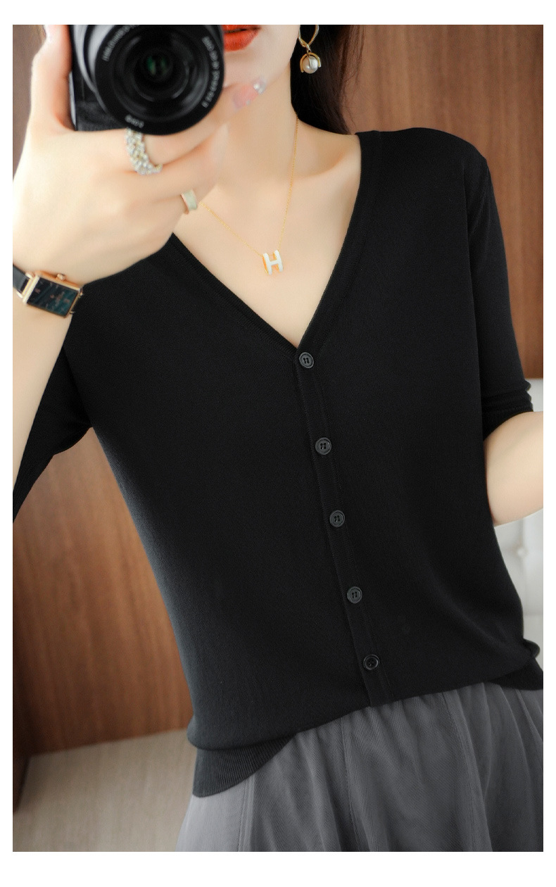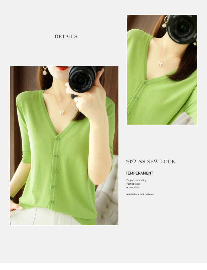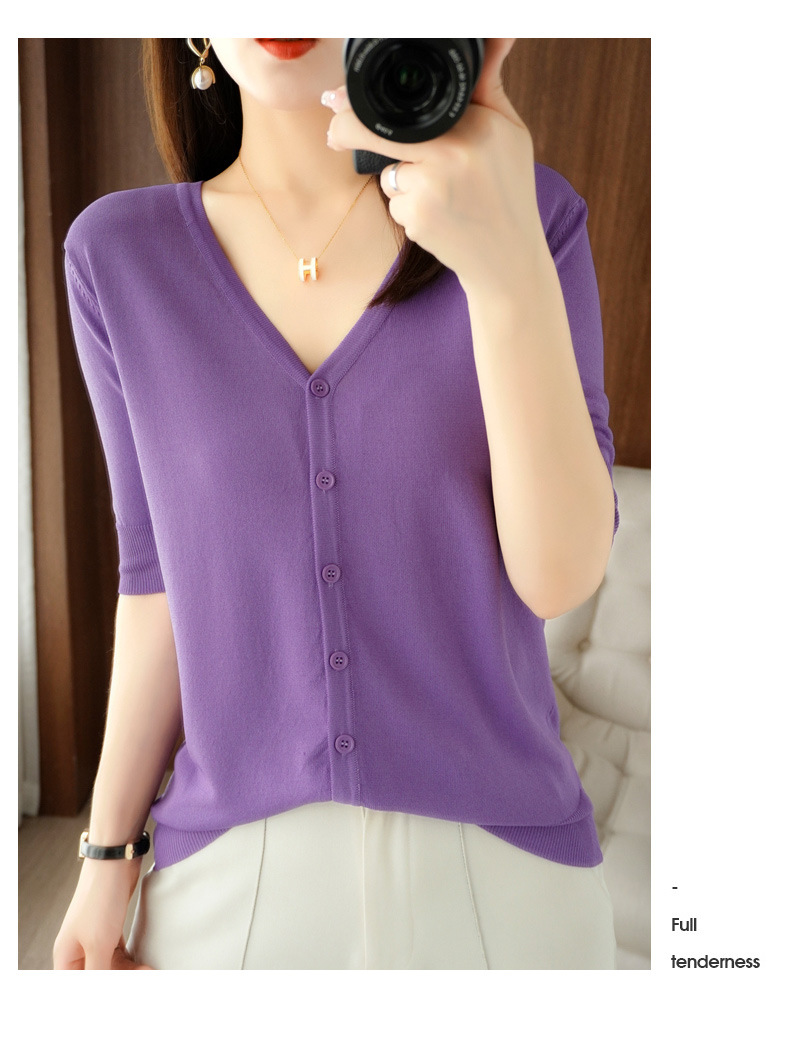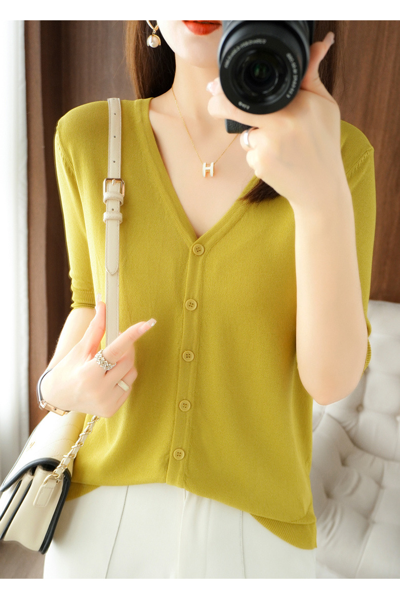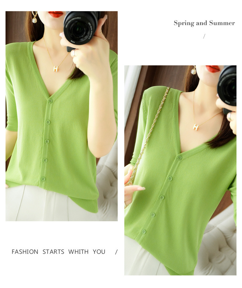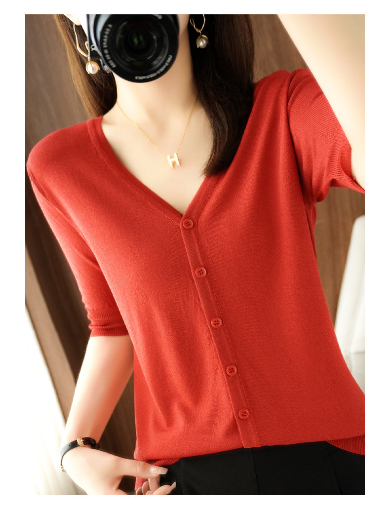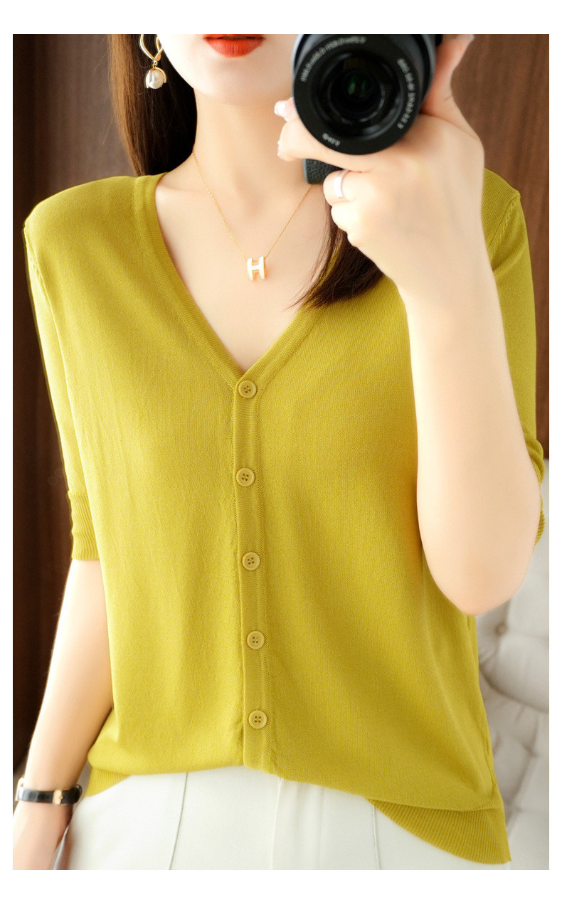 新款时尚气质休闲V领短袖薄款冰丝针织开衫外套上衣JYYR-JY2270