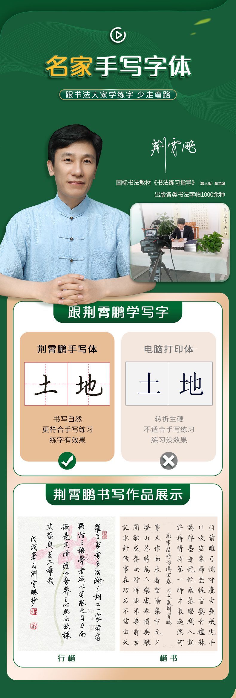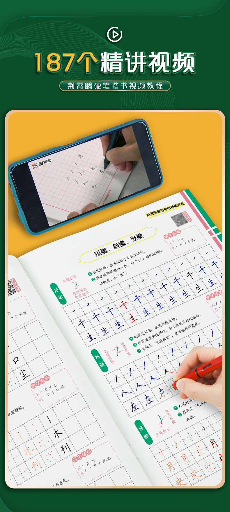 墨点字帖 荆霄鹏硬笔楷书视频教程 大学生高中生正楷字帖练字视频楷书入门基础教程