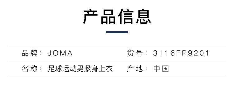 JOMA/霍马足球运动训练紧身衣长袖男舒适健身衣3116FP9201