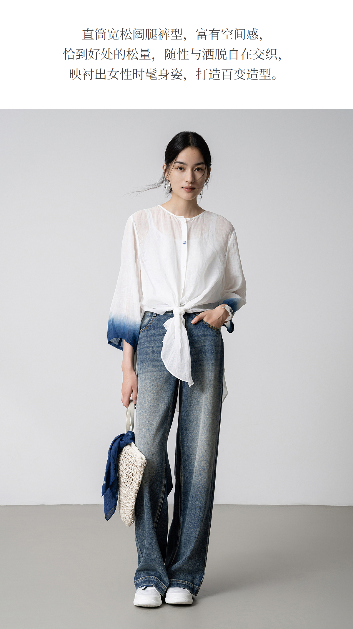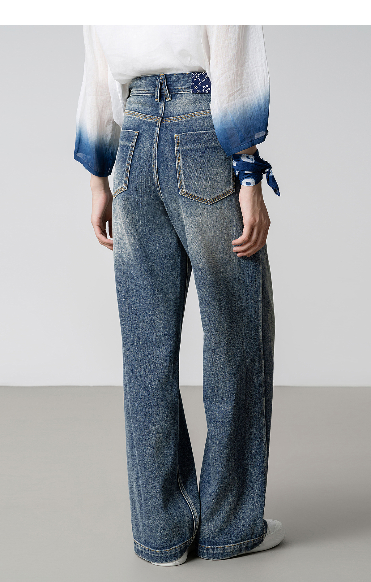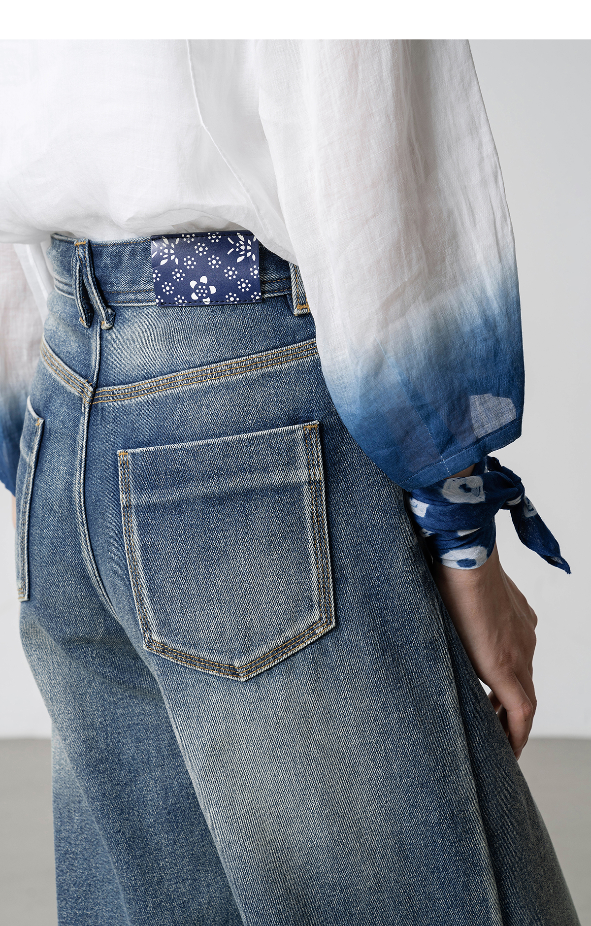 【林栖设计小店】【草木丹宁】醋酸牛仔裤配植物染方巾2025秋季新款阔腿裤G1653007