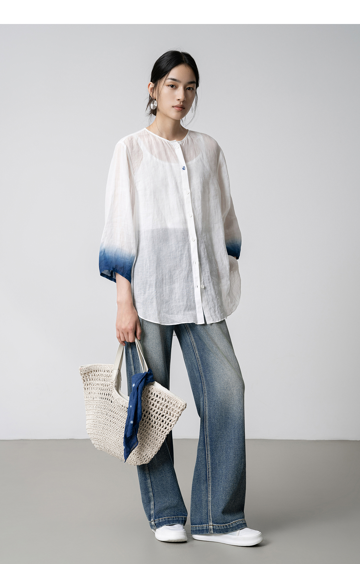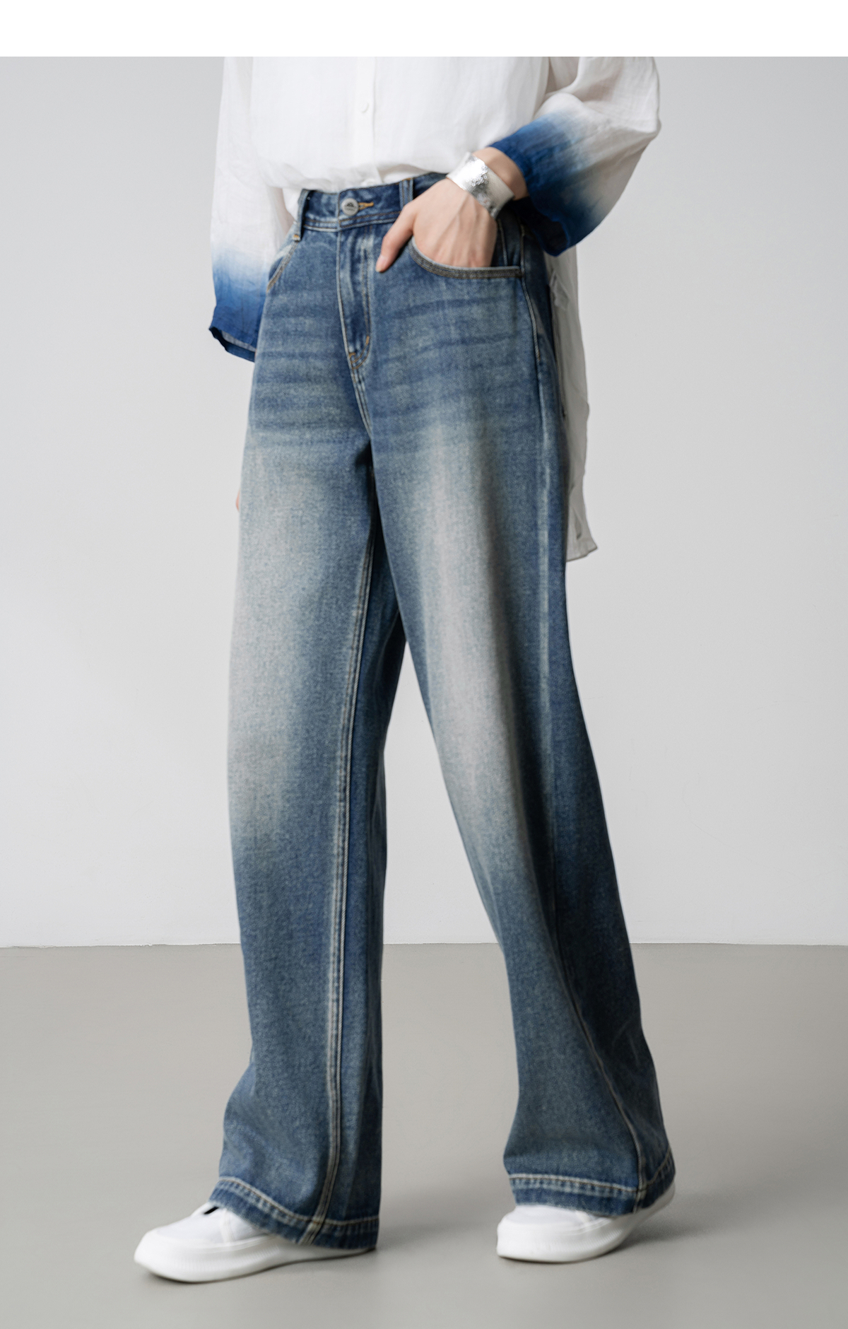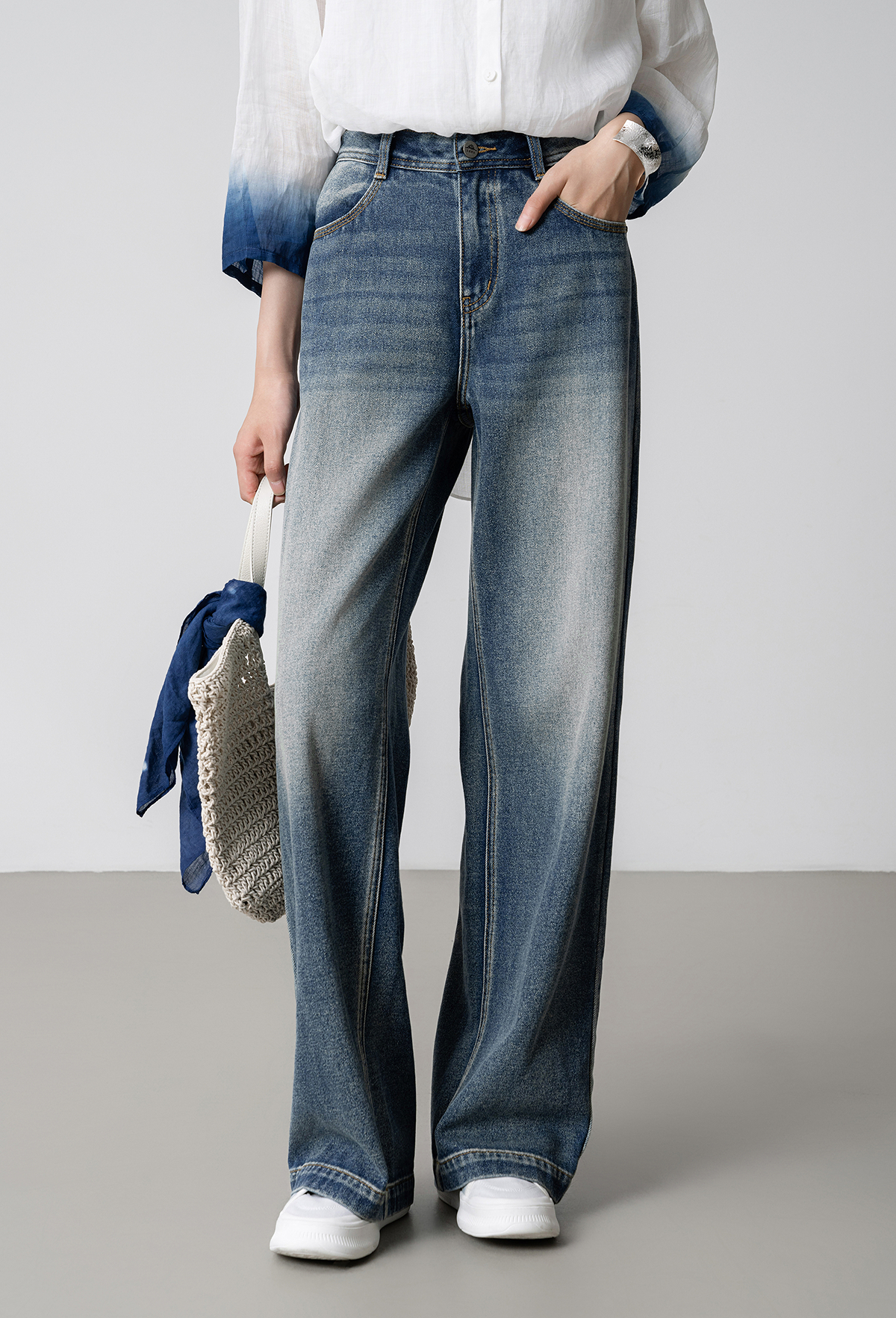 【林栖设计小店】【草木丹宁】醋酸牛仔裤配植物染方巾2025秋季新款阔腿裤G1653007
