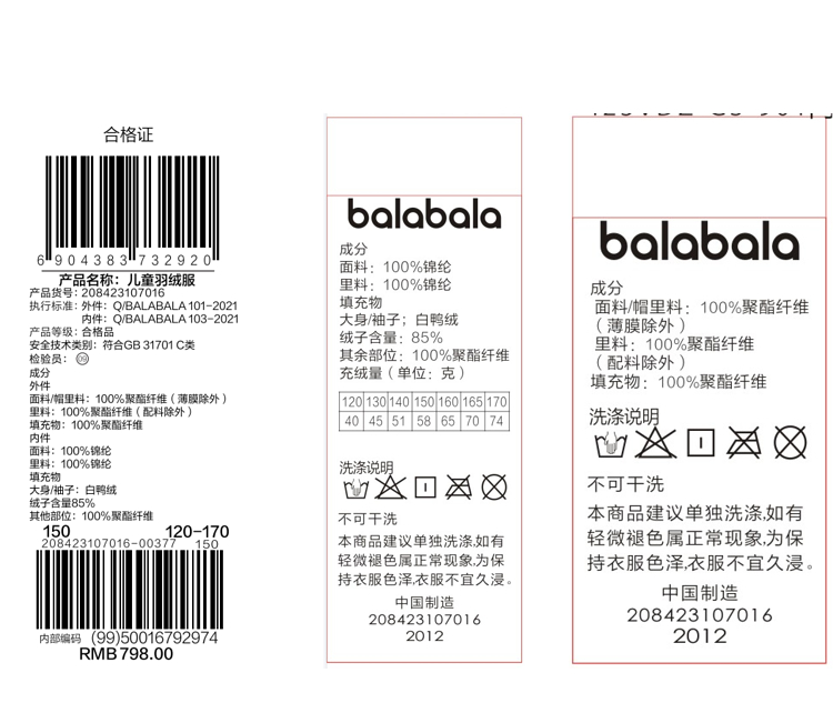 巴拉巴拉羽绒服女童秋冬季新款童装中大童加厚保暖外套两件套