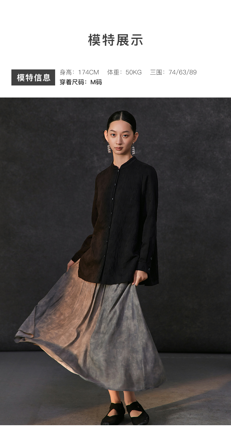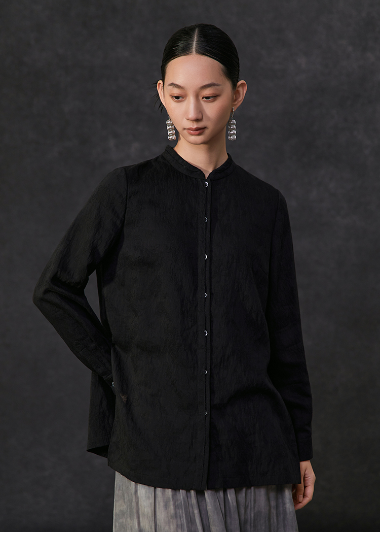 famecoco新中式立领基础款衬衫女士长袖正肩气质衬衣FAC1BA004