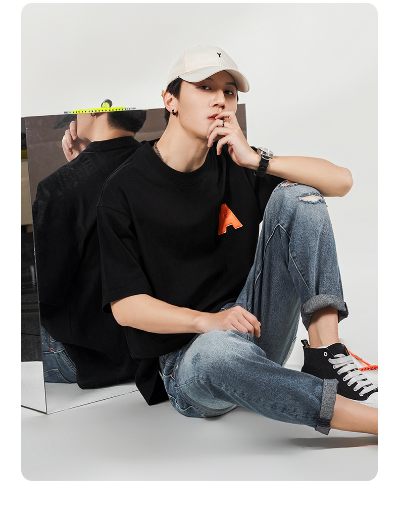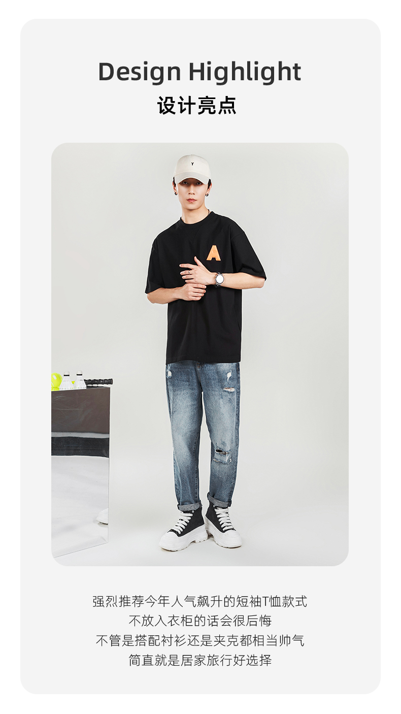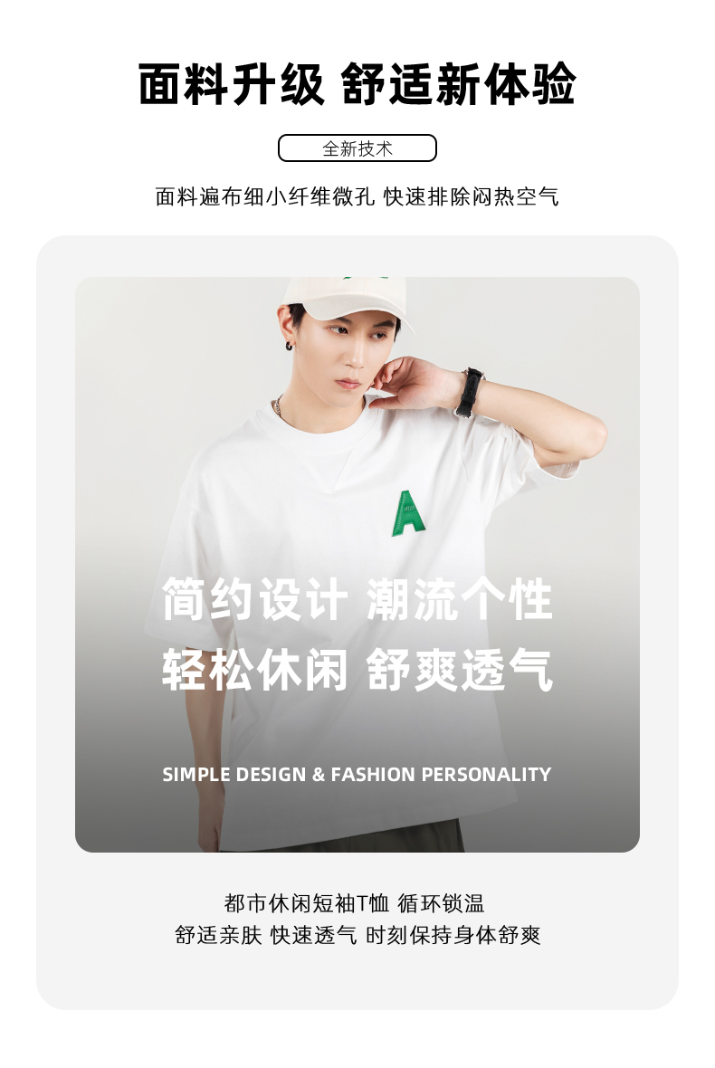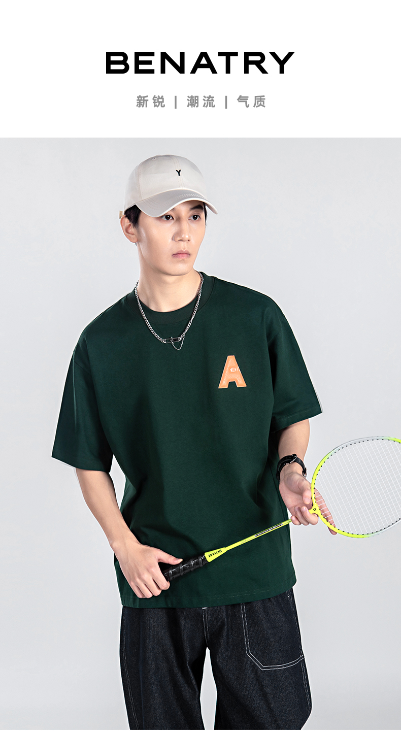 贝纳川圆领宽松字母短袖T恤ECP214011