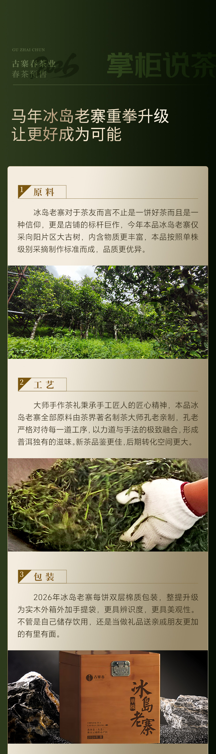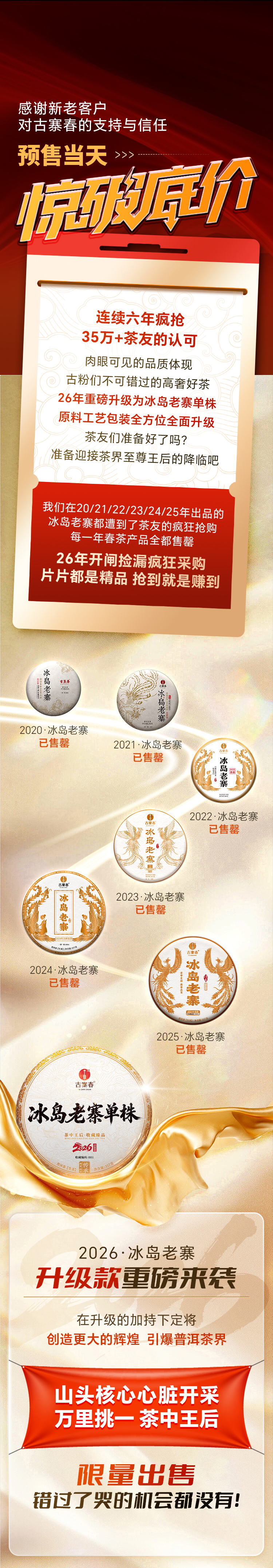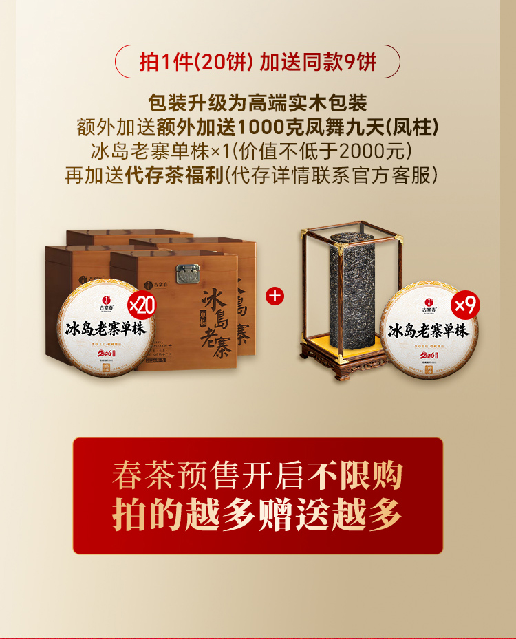 【冰岛老寨单株】春茶预售2026年重磅升级为单株树龄更大工艺更优异,持续加码傲视来袭,茶界皇后冰岛老寨单株,357克/饼 7饼/提