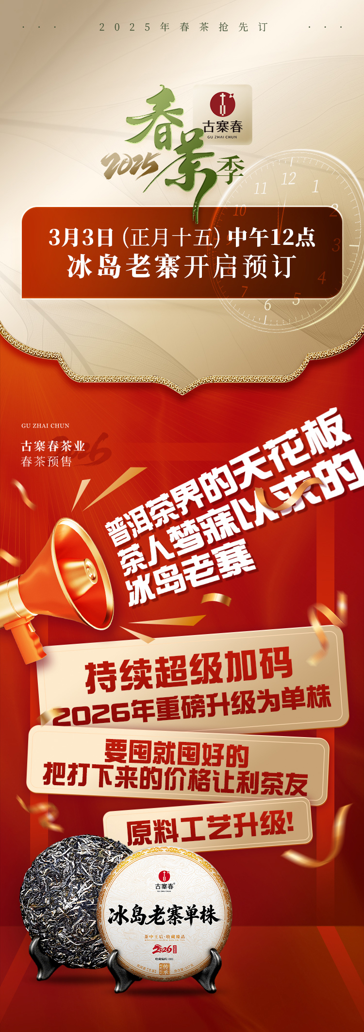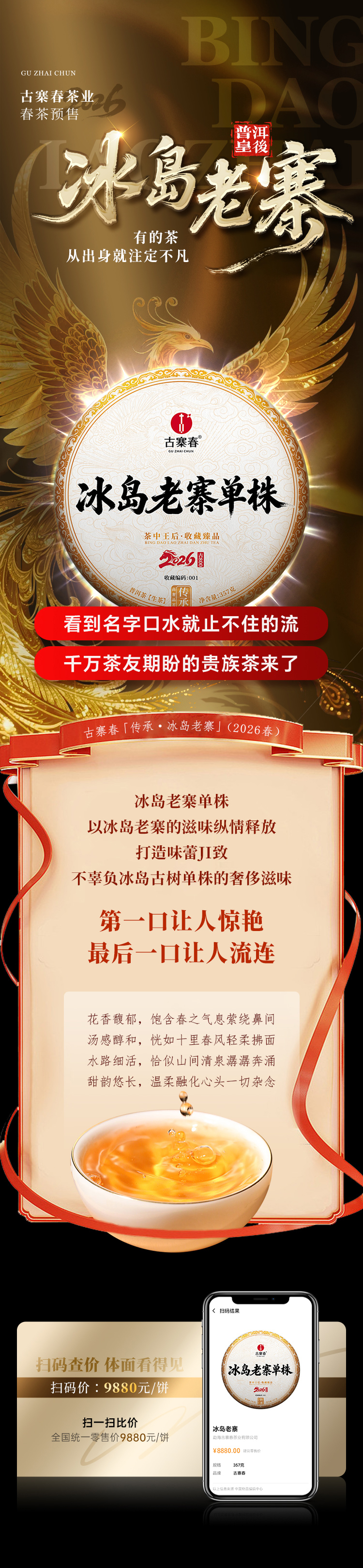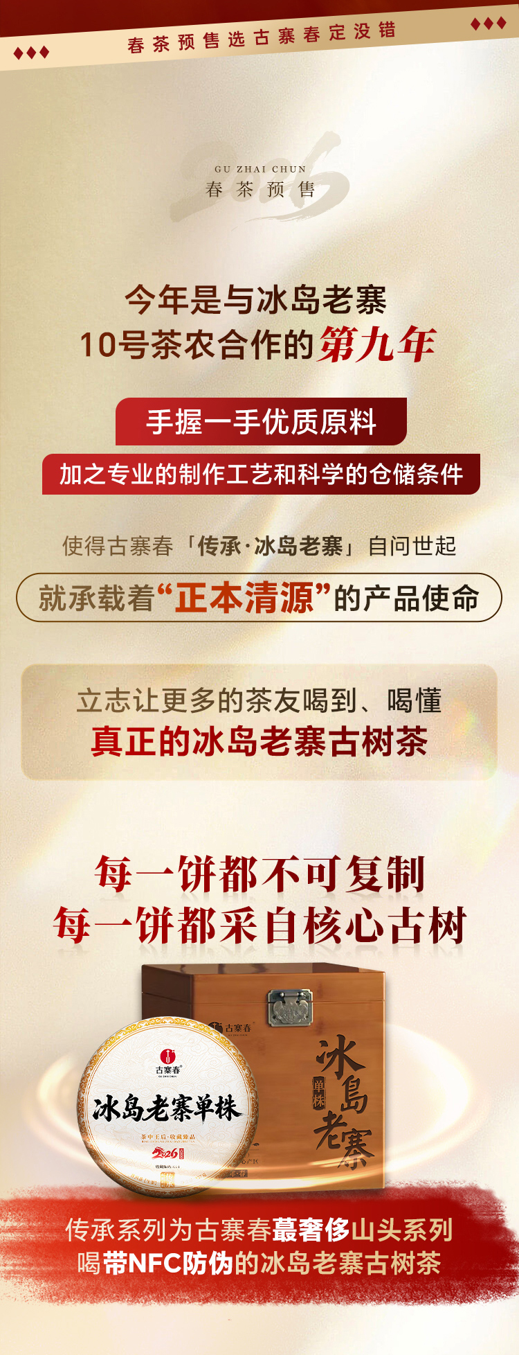 【冰岛老寨单株】春茶预售2026年重磅升级为单株树龄更大工艺更优异,持续加码傲视来袭,茶界皇后冰岛老寨单株,357克/饼 7饼/提