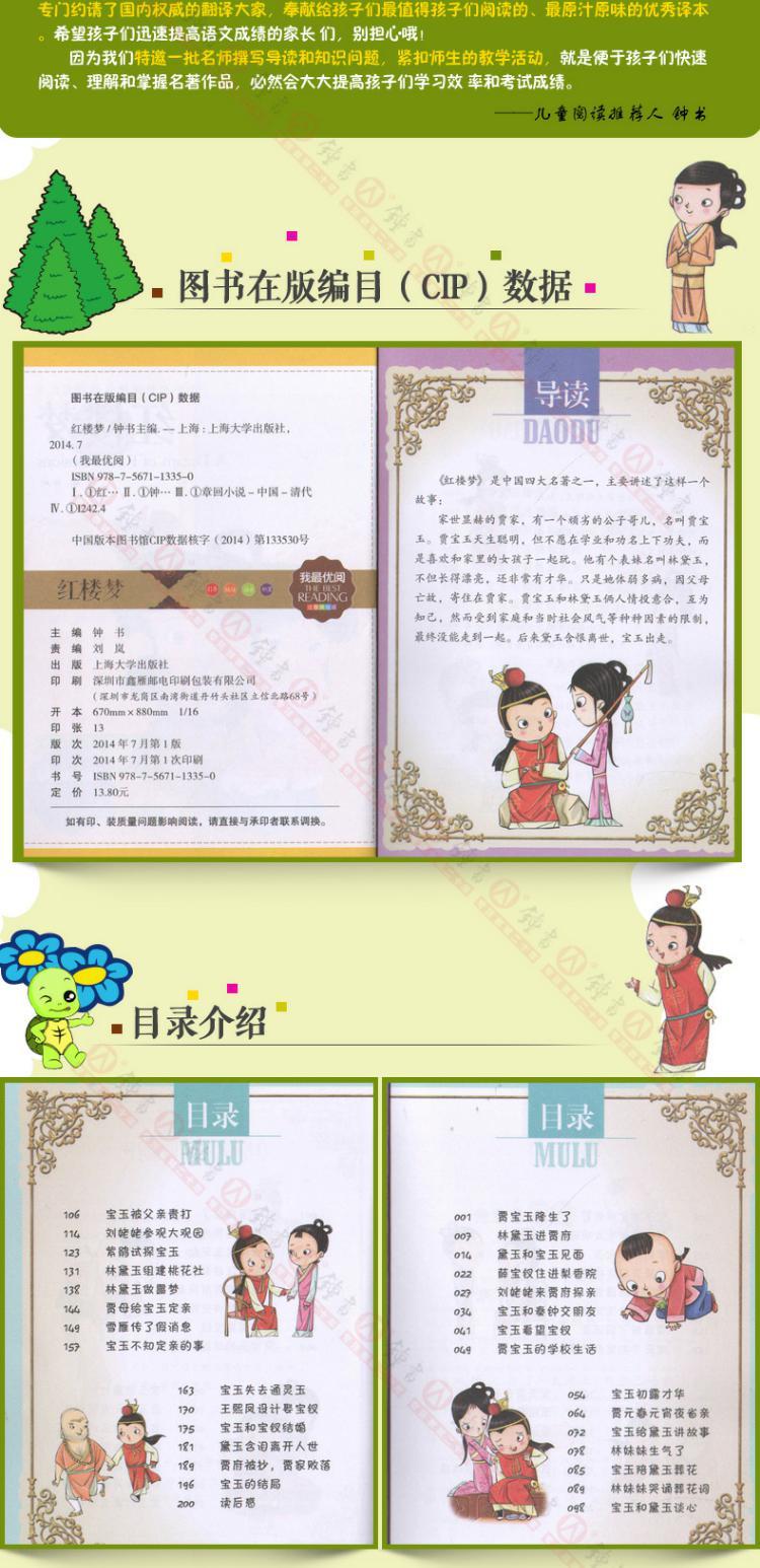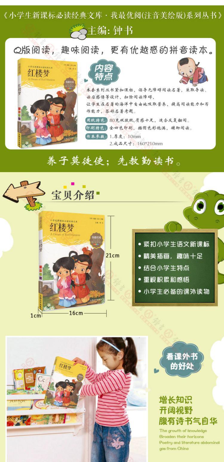 1-3年级适用 注音美绘版-红楼梦 钟书正版少儿读物我优阅系列拼音彩图版四大名著红楼梦 儿童文学课外读物小学生作文阅读写作能力