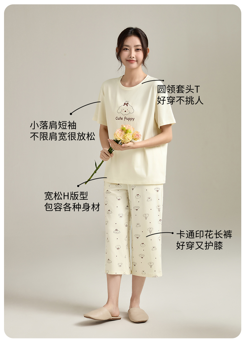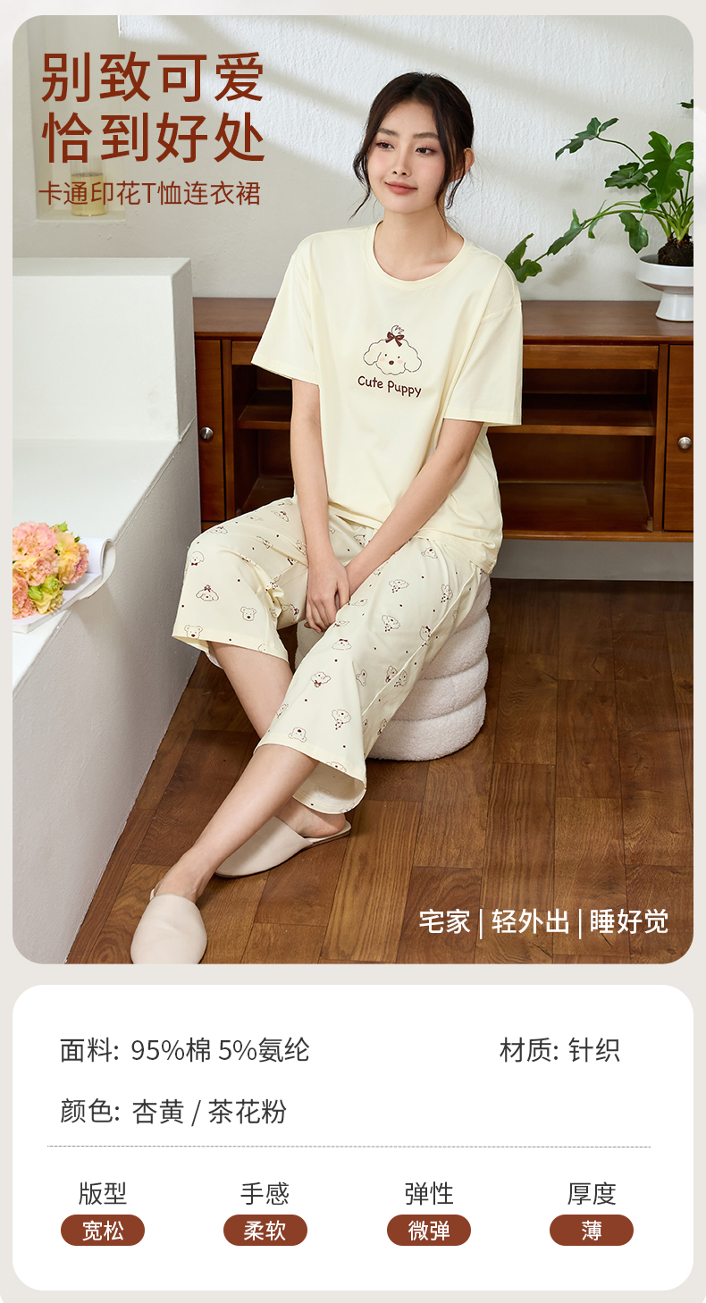 康妮雅女式短袖中裤套头套装