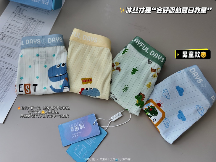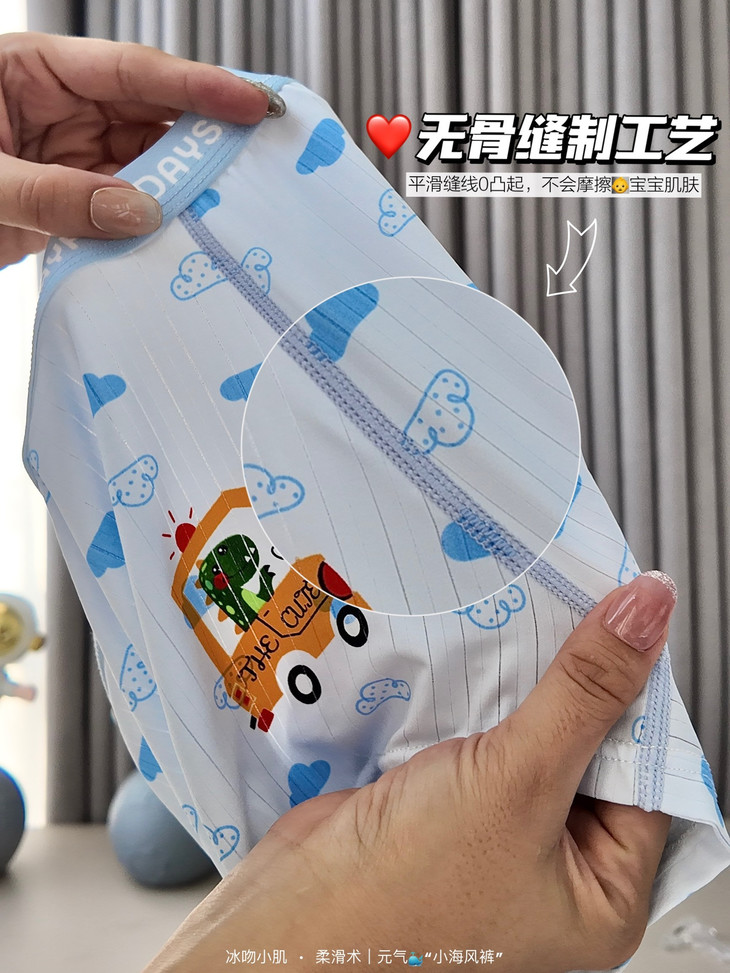 🔥🎬 “一触即凉,远超国标”小屁屁的夏日救星,给宝宝的夏日小内裤,选“真”凉感的! 儿童小海风裤➕尺码⬇「M-3XL码」39.9💰🉐 一盒4条装福利,超凉!超透!超轻!!为夏天而生!
