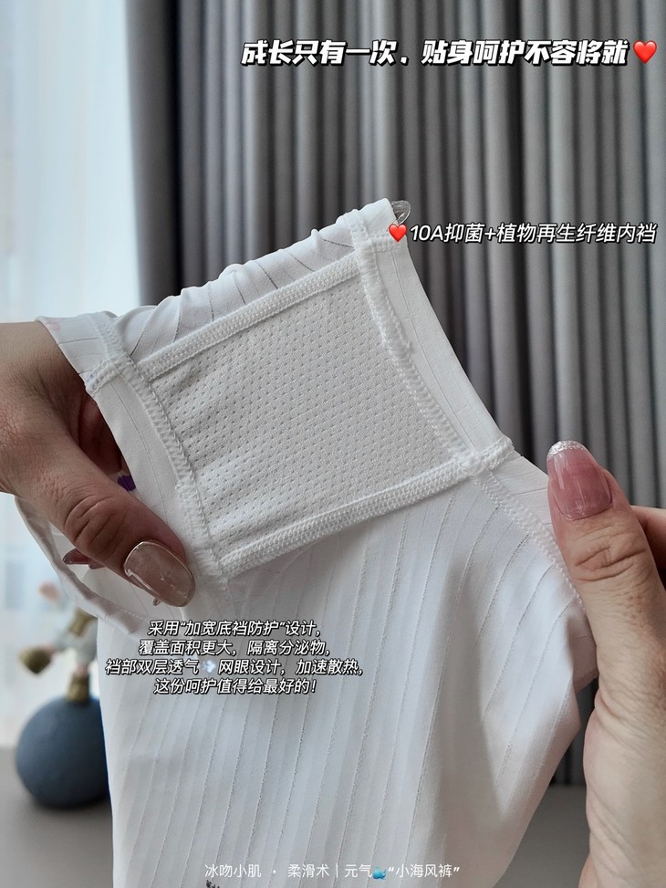 🎬4⃣️10A抗菌+植物再生纤维内裆 ▷ 裆部双层透气💨网眼设计,加速散热 ▷ 实验室300次洗涤仍安心,✅抑菌率97% ▷ 潮湿闷热?细菌红屁屁?❌通通退散! ▷ 白色底裆设计,分泌物变化一目了然!