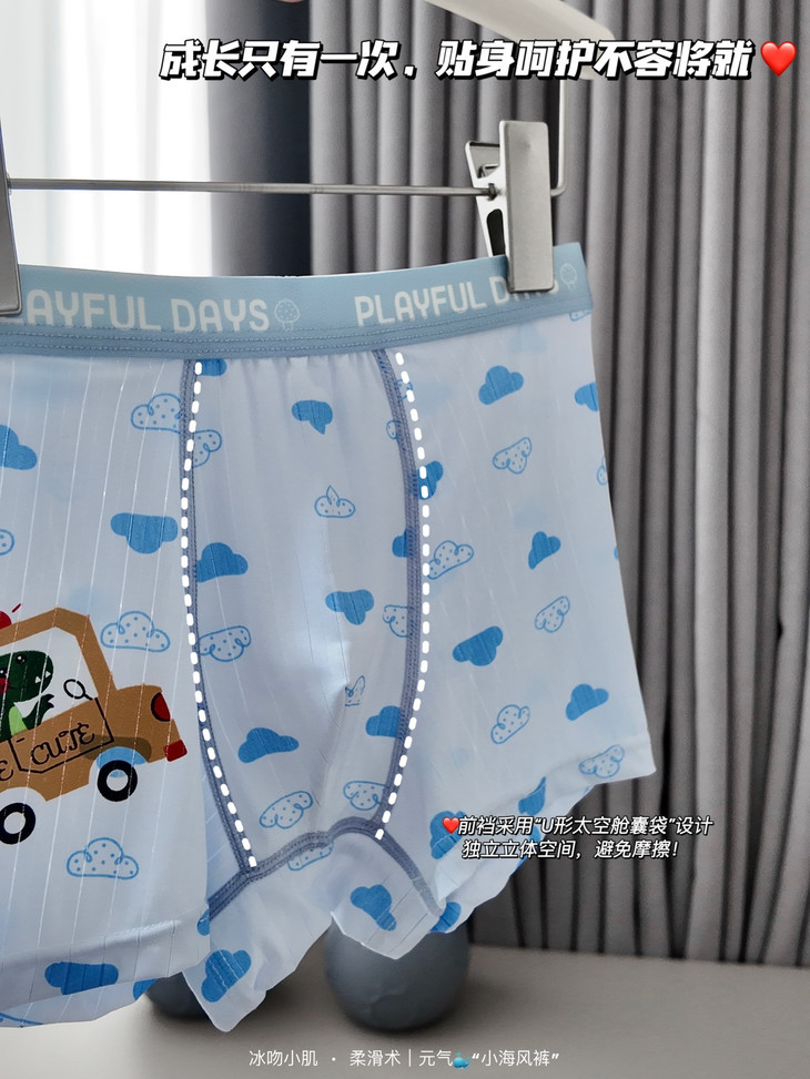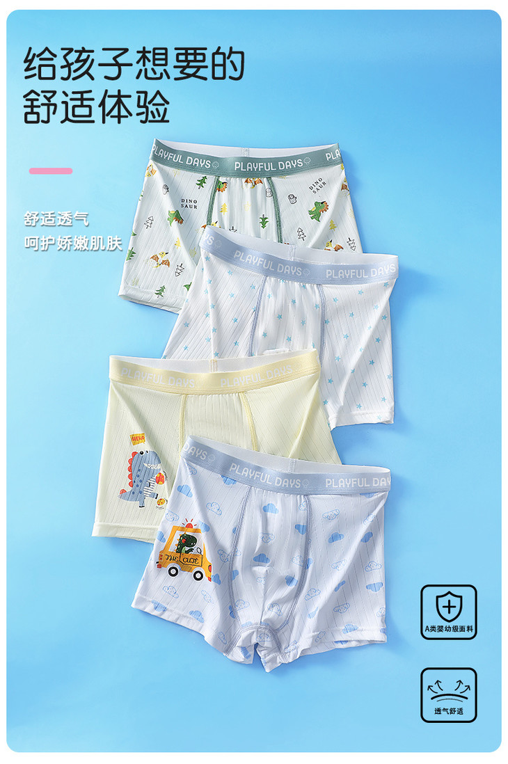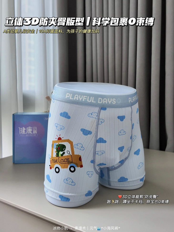 男童👦内裤核心设计:U形囊袋 ✅前档采用 “U形太空舱囊袋”设计,独立立体空间,避免摩擦 加强透气散热,在跑跳🏃♂️时减少束缚,尤其适合运动量大的男孩!