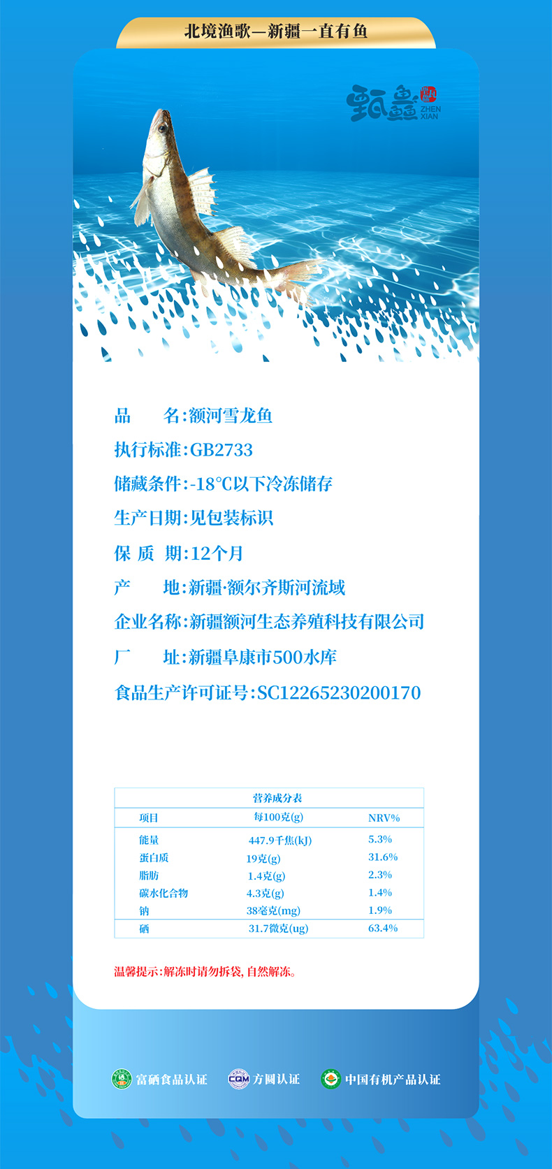 【产品名称】新疆额河有机雪龙鱼