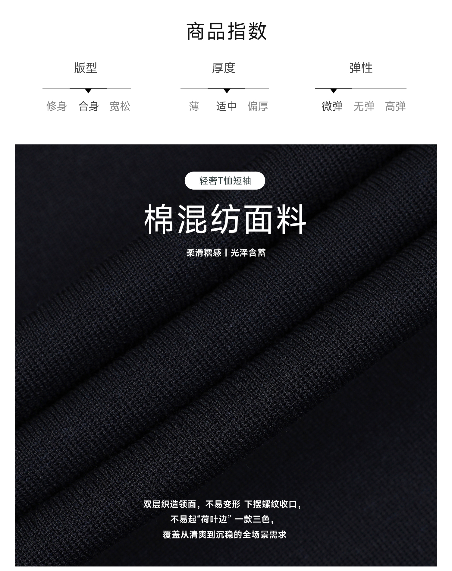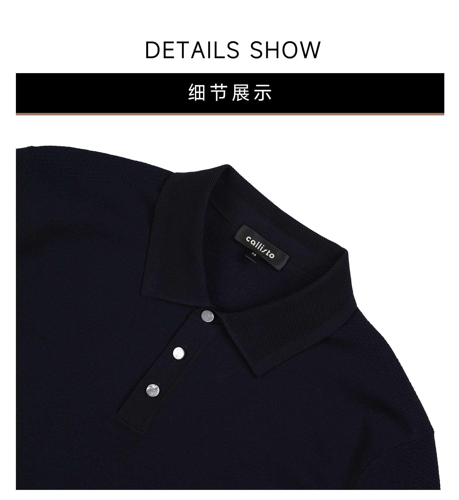 callisto藏青双层领口丝棉混纺弹力T恤
