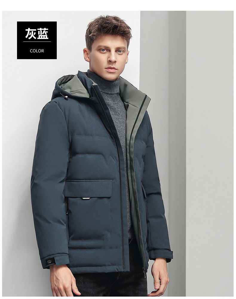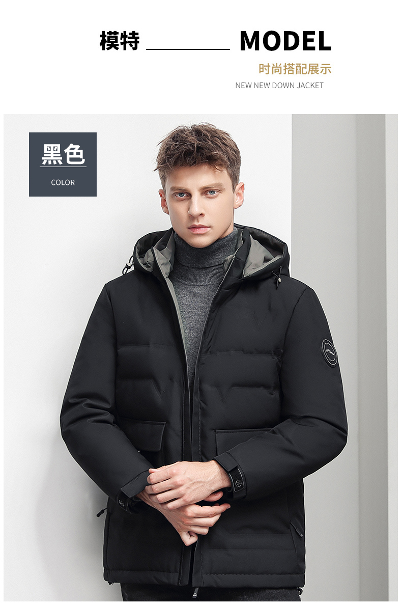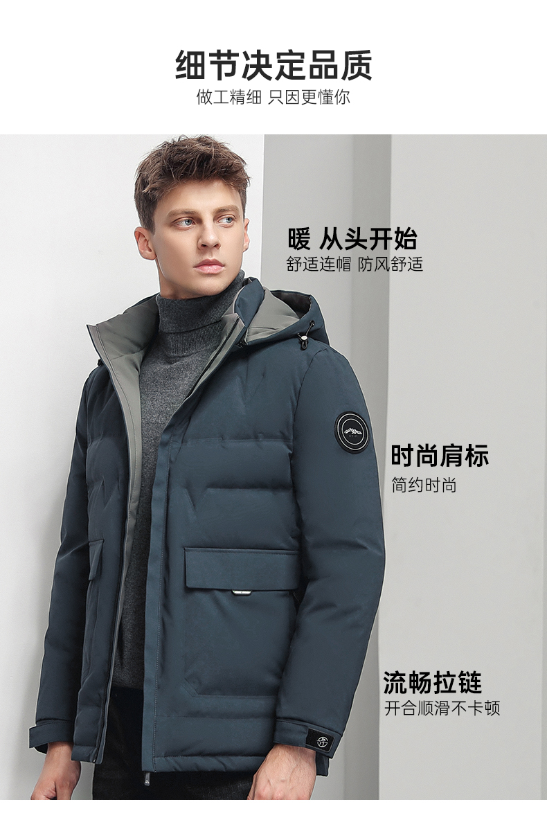 圣得西男士白鹅绒可拆卸帽羽绒服冬季厚款工装口袋外套2262942063
