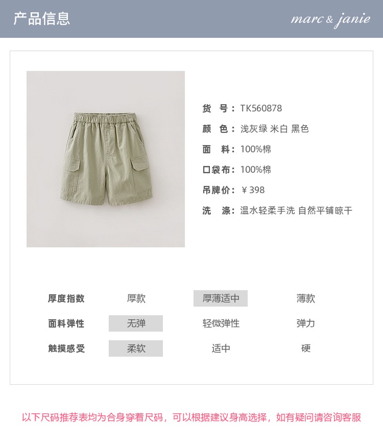 马克珍妮城市轻户外男童纯棉工装短裤2026年夏装新款560878