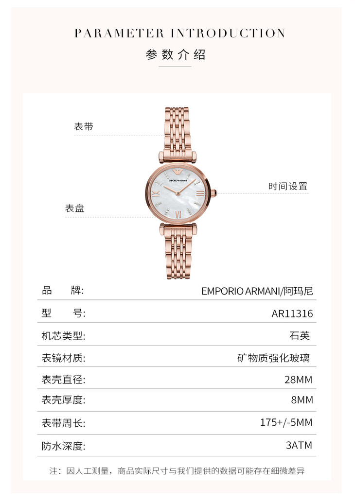 【一般贸易】Armani阿玛尼满天星系列石英贝母表盘时尚女表手表女简约气质石英表AR11316